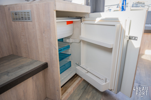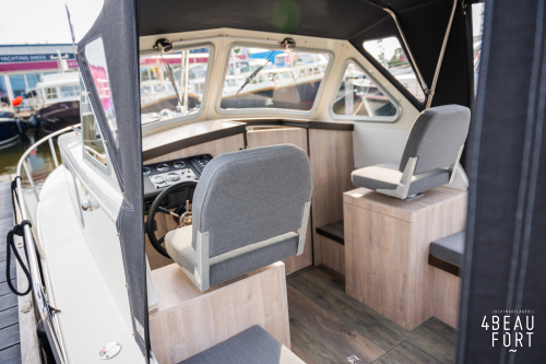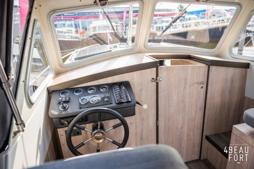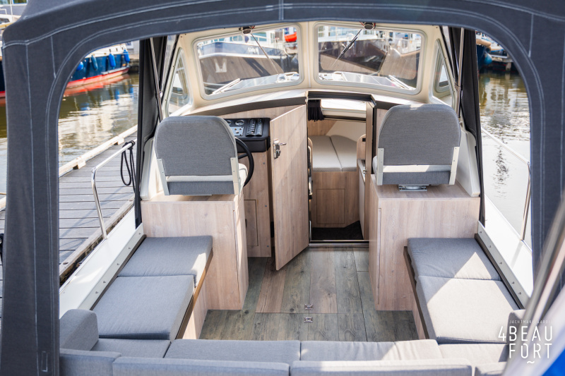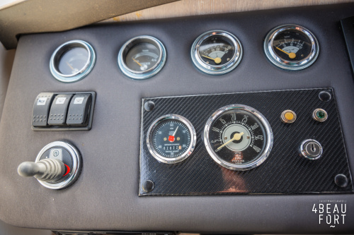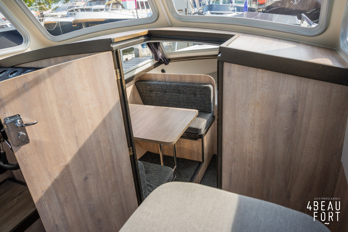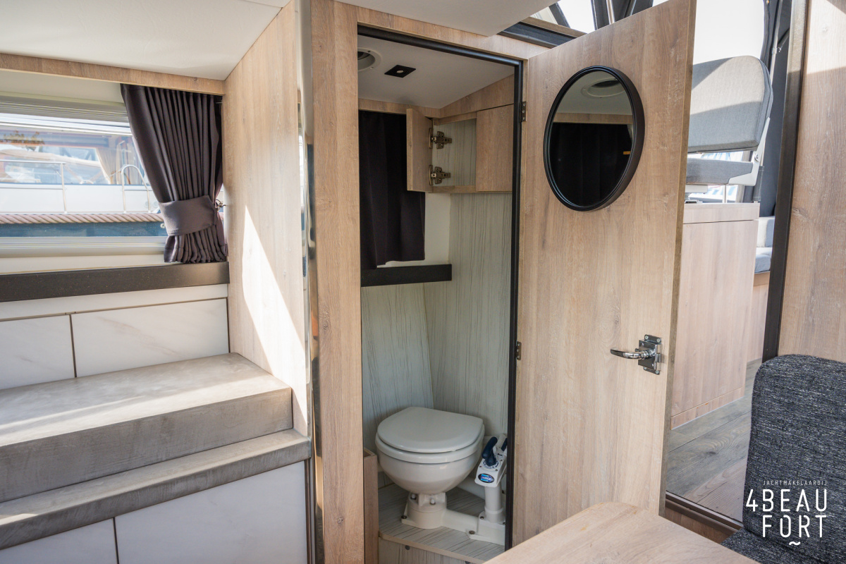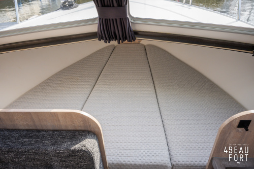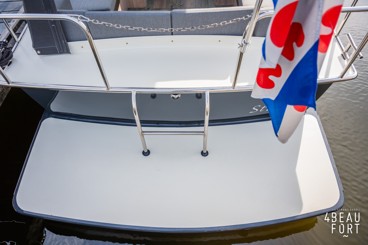 Was wurde erneuert? Inklusive der Verkabelung, Verkleidung in HPL (verfärbt sich nicht und ist kratzfrei), Polsterung, Konservierungssystem in 2 Komponenten, Fenster und Zelt über dem offenen Cockpit. Die derzeitigen Eigner haben das Schiff außerdem mit einem Bugstrahlruder, einem Ladegerät/Wechselrichter, einer LED-Beleuchtung auf der Fernbedienung und Sonnenkollektoren ausgestattet. Außerdem wurde der Gummipuffer durch eine Edelstahlausführung ersetzt und die Laufstege verbreitert. Das Schiff zeichnet sich zudem durch seine handliche Größe von knapp 8 m (inkl. Badeplattform), einen geringen Tiefgang von 65 cm und eine Durchfahrtshöhe von unter 2,40 m aus.