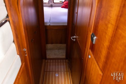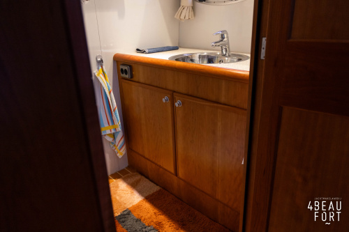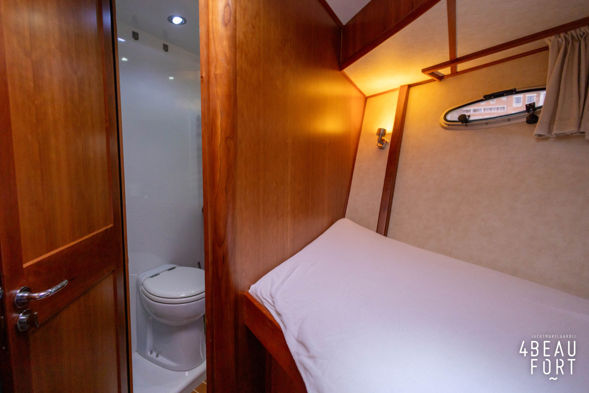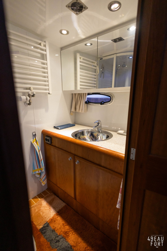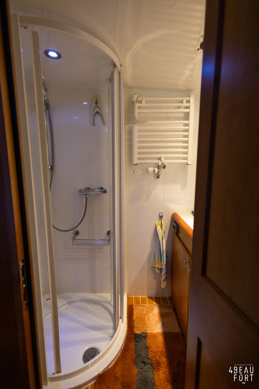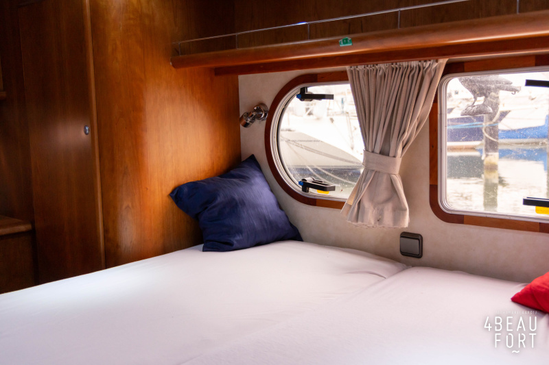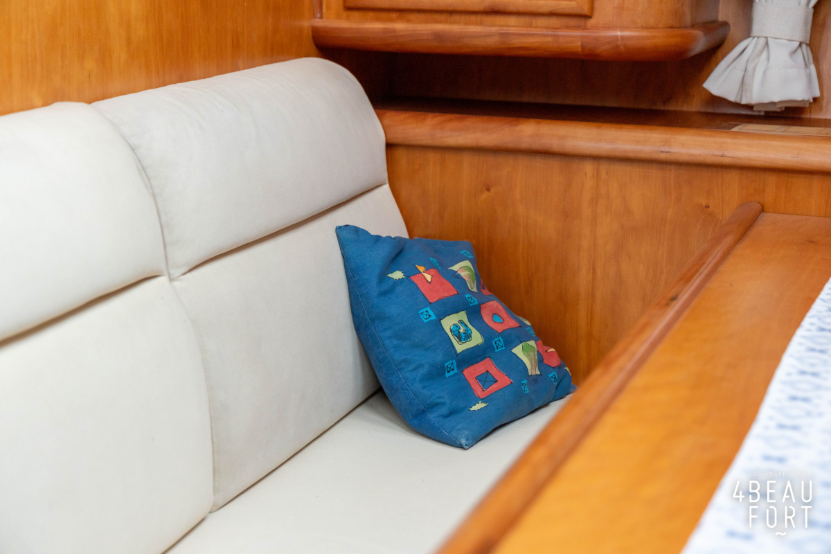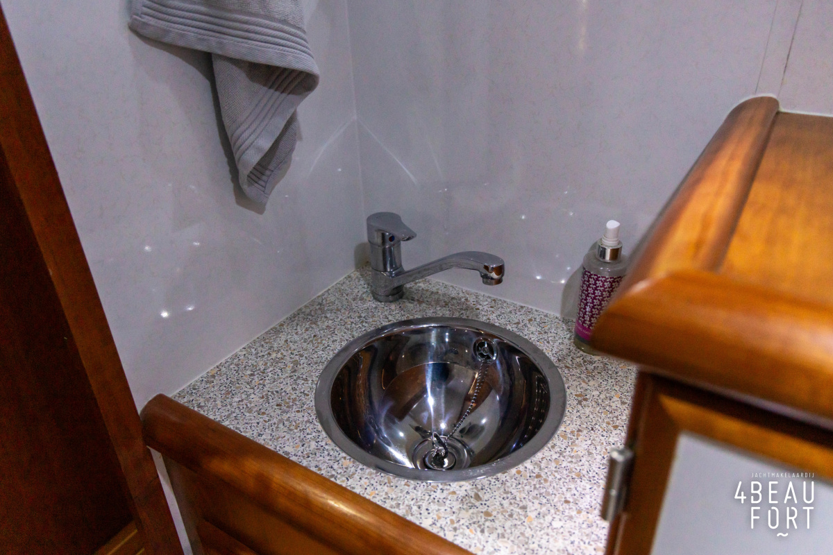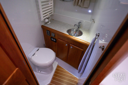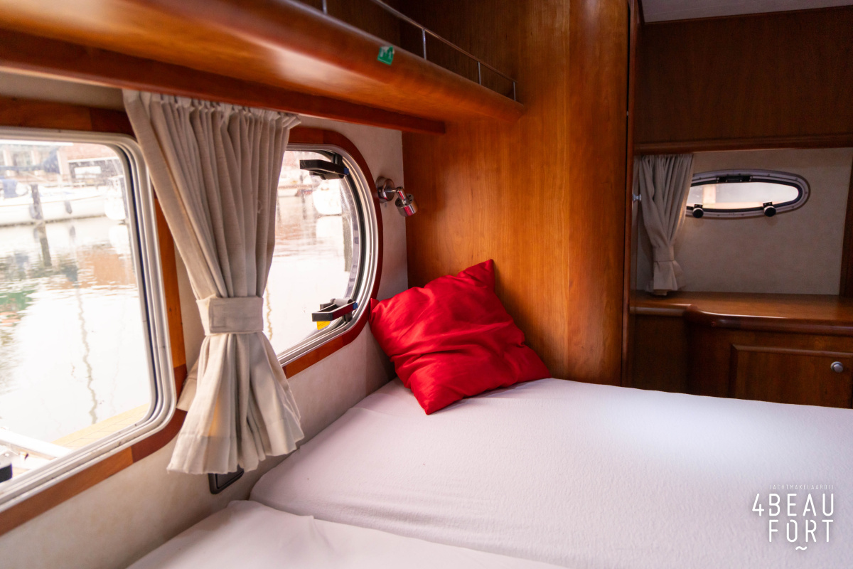 'Festina Lente' verfügt über zwei geräumige Hütten, zwei Toiletten und ein separates Badezimmer mit Dusche und Waschbecken. Darüber hinaus ist die Yacht mit modernen Annehmlichkeiten wie einer Waschmaschine und Trockner-Kombination ausgestattet. Der Salon hat ein warmes, attraktives Erscheinungsbild dank des luxuriösen Kirschholzes und der wunderschön gepolsterten Sofas. Dank der vielen Fenster kommt reichlich natürliches Licht herein.