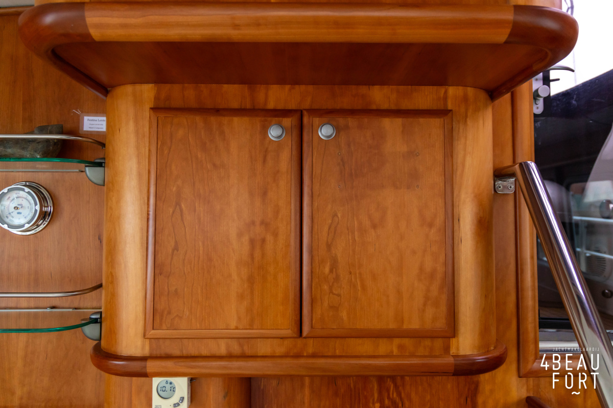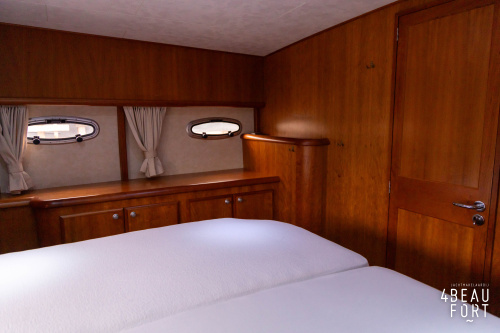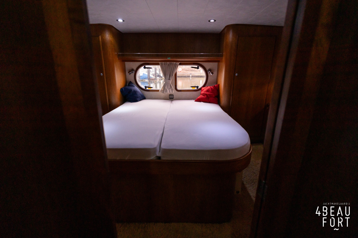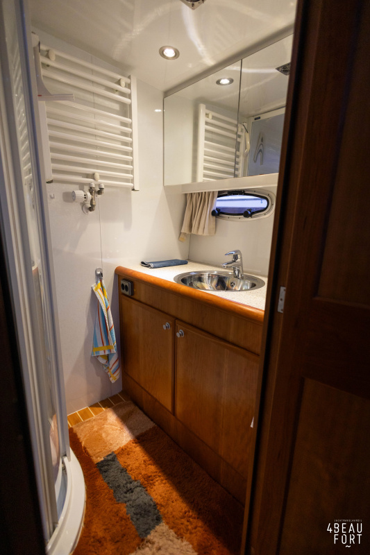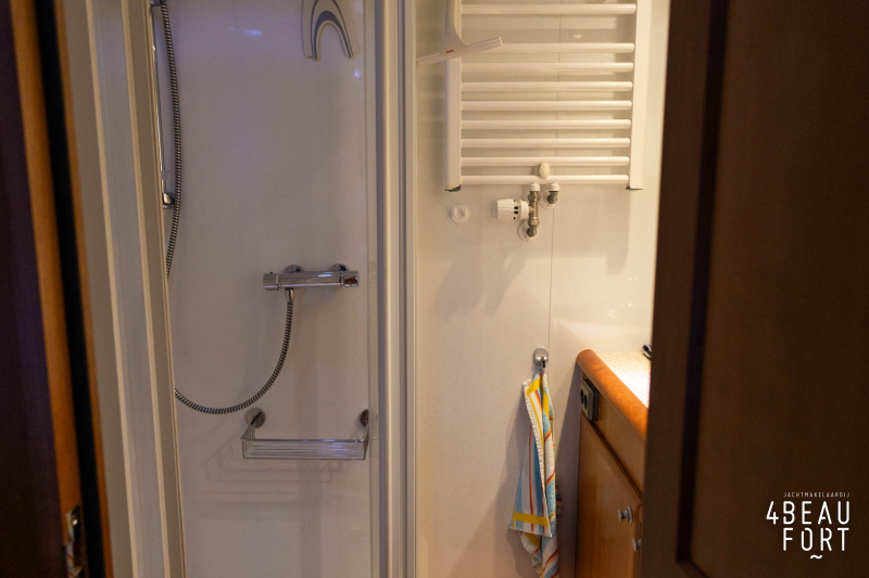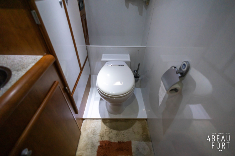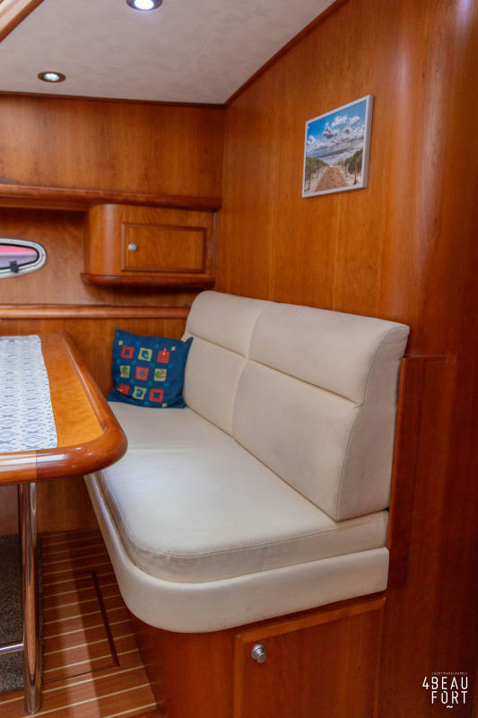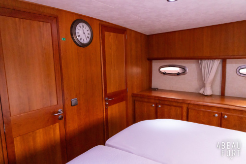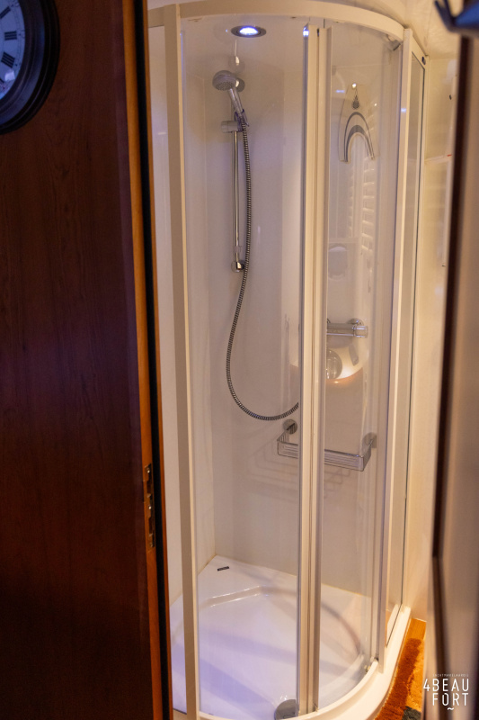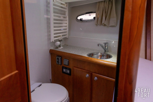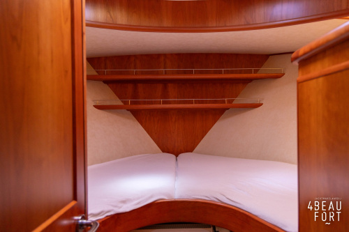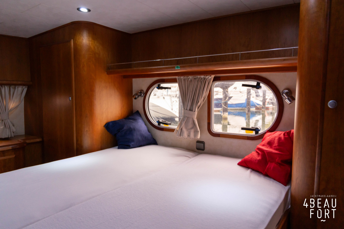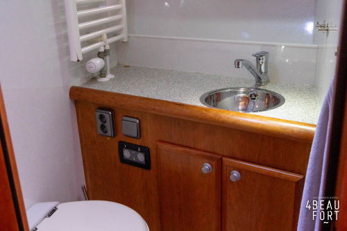 'Festina Lente' verfügt über zwei geräumige Hütten, zwei Toiletten und ein separates Badezimmer mit Dusche und Waschbecken. Darüber hinaus ist die Yacht mit modernen Annehmlichkeiten wie einer Waschmaschine und Trockner-Kombination ausgestattet. Der Salon hat ein warmes, attraktives Erscheinungsbild dank des luxuriösen Kirschholzes und der wunderschön gepolsterten Sofas. Dank der vielen Fenster kommt reichlich natürliches Licht herein.