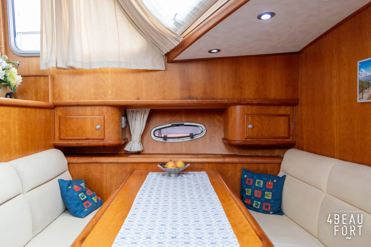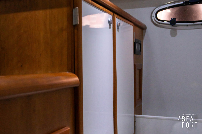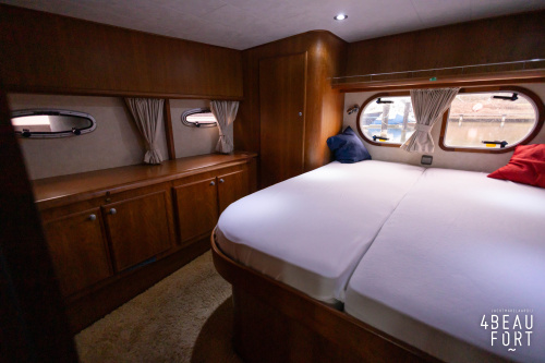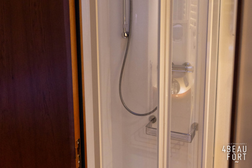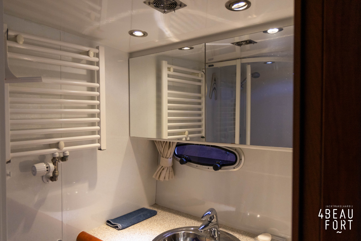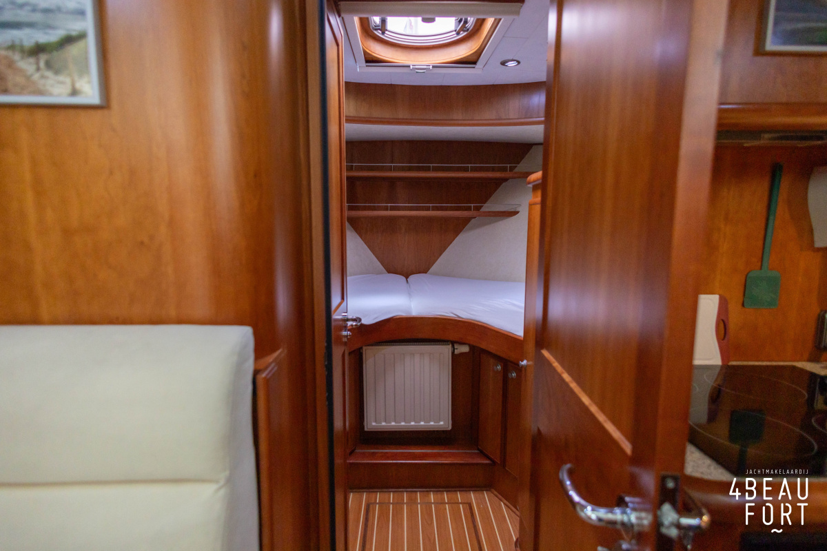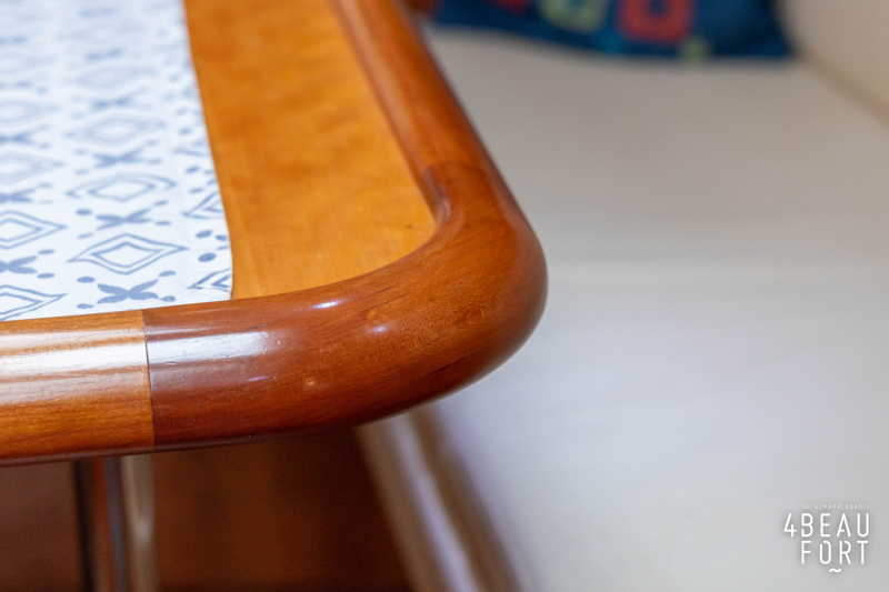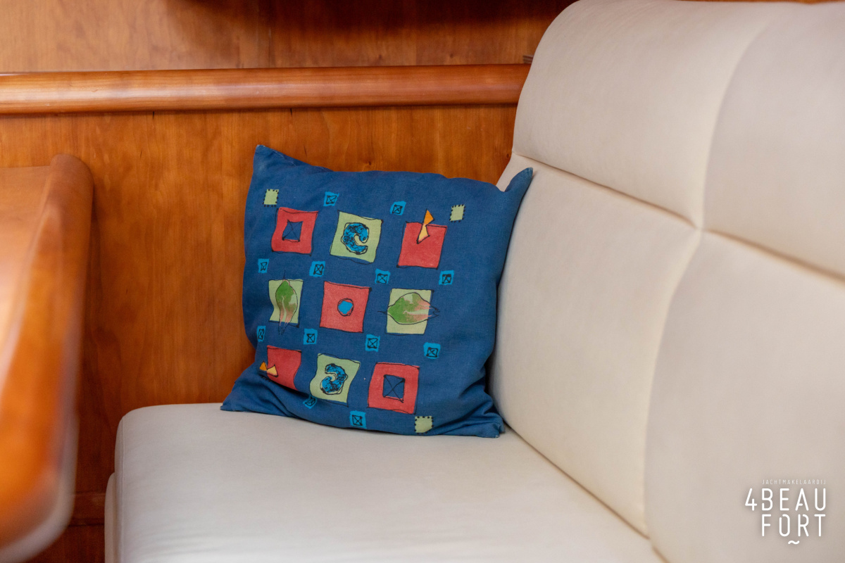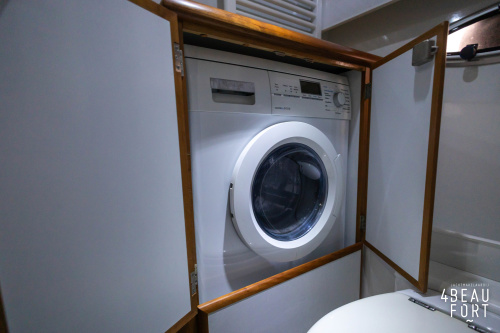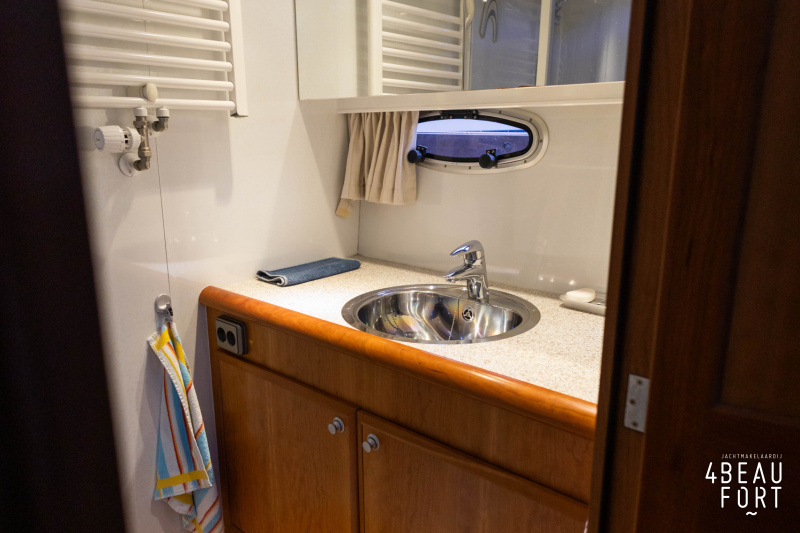 'Festina Lente' verfügt über zwei geräumige Hütten, zwei Toiletten und ein separates Badezimmer mit Dusche und Waschbecken. Darüber hinaus ist die Yacht mit modernen Annehmlichkeiten wie einer Waschmaschine und Trockner-Kombination ausgestattet. Der Salon hat ein warmes, attraktives Erscheinungsbild dank des luxuriösen Kirschholzes und der wunderschön gepolsterten Sofas. Dank der vielen Fenster kommt reichlich natürliches Licht herein.