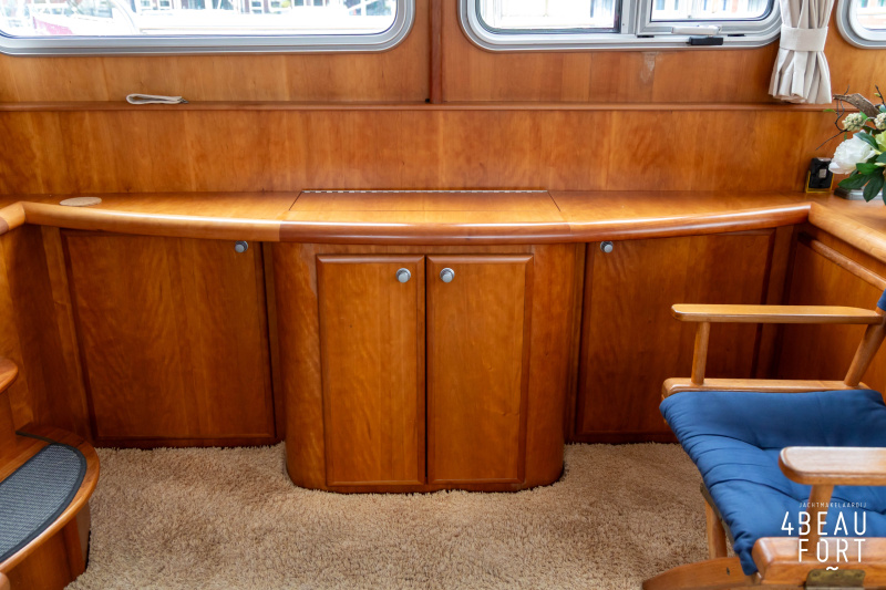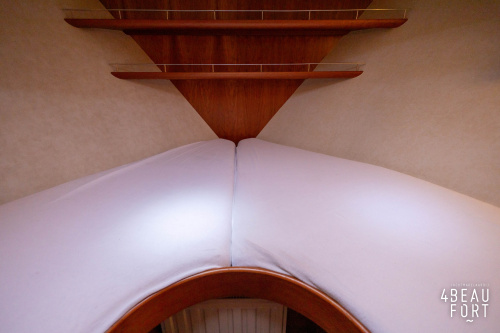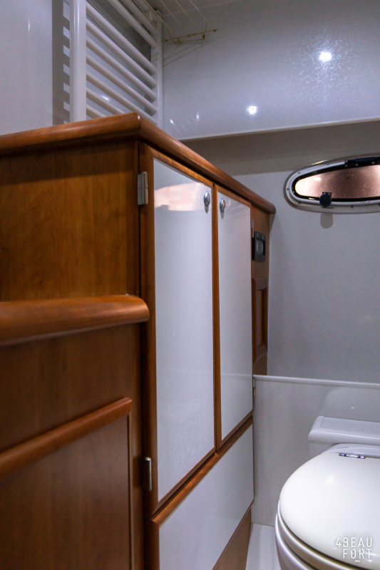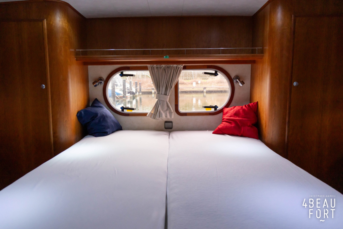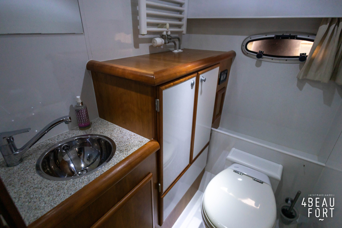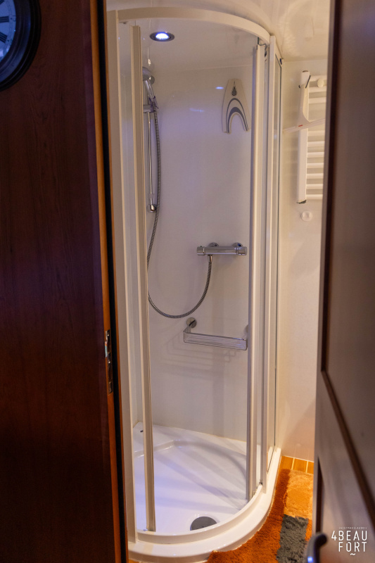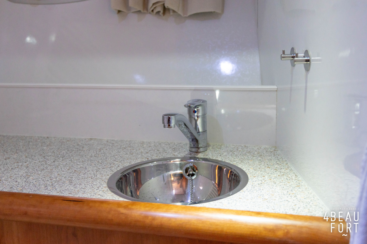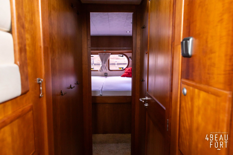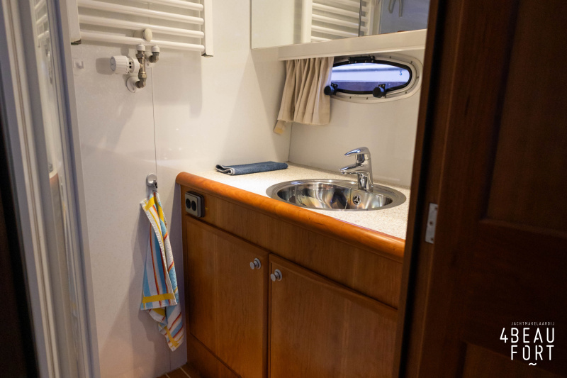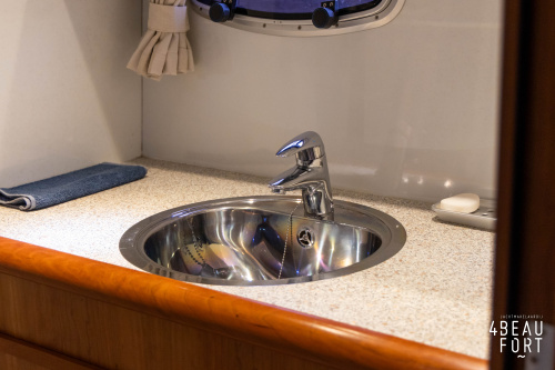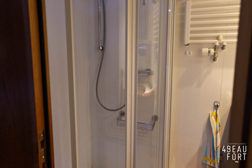 'Festina Lente' verfügt über zwei geräumige Hütten, zwei Toiletten und ein separates Badezimmer mit Dusche und Waschbecken. Darüber hinaus ist die Yacht mit modernen Annehmlichkeiten wie einer Waschmaschine und Trockner-Kombination ausgestattet. Der Salon hat ein warmes, attraktives Erscheinungsbild dank des luxuriösen Kirschholzes und der wunderschön gepolsterten Sofas. Dank der vielen Fenster kommt reichlich natürliches Licht herein.