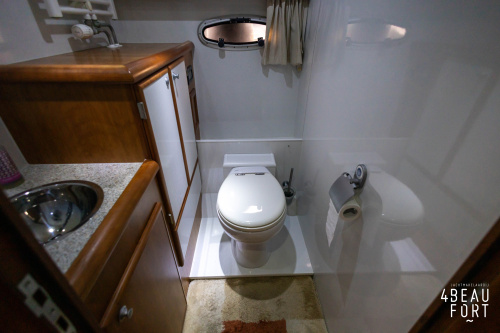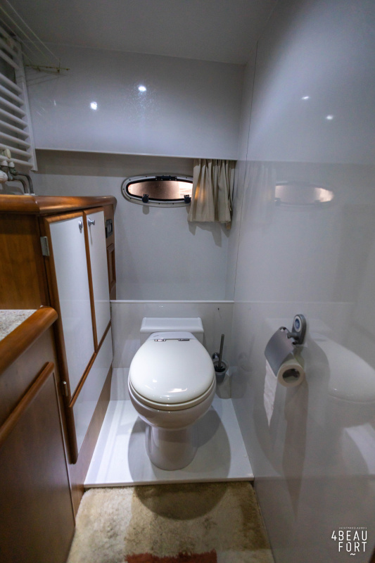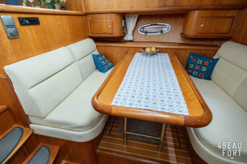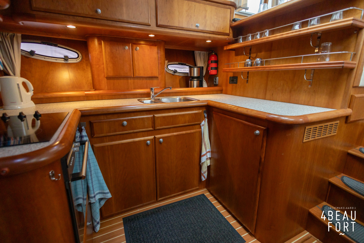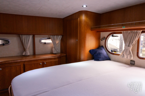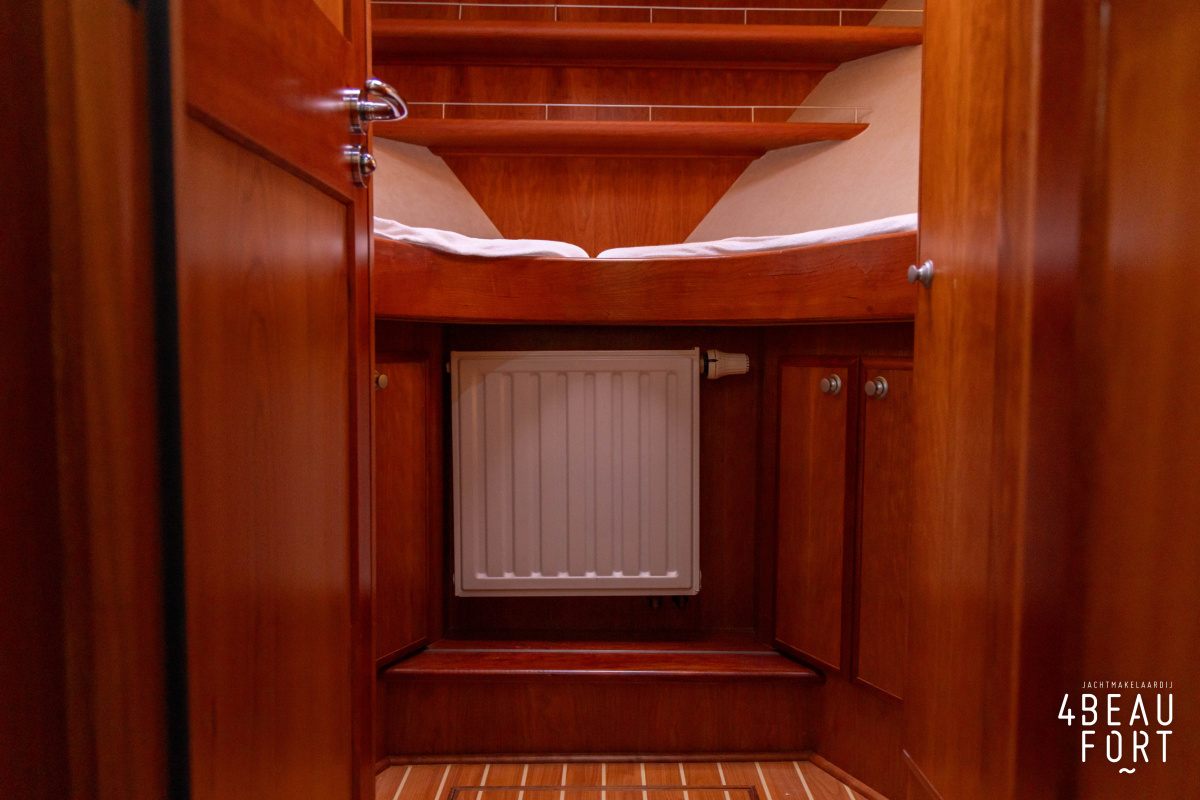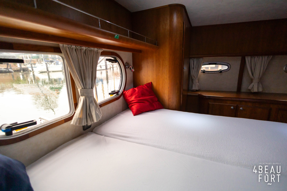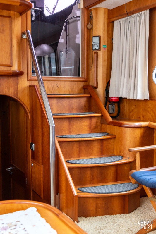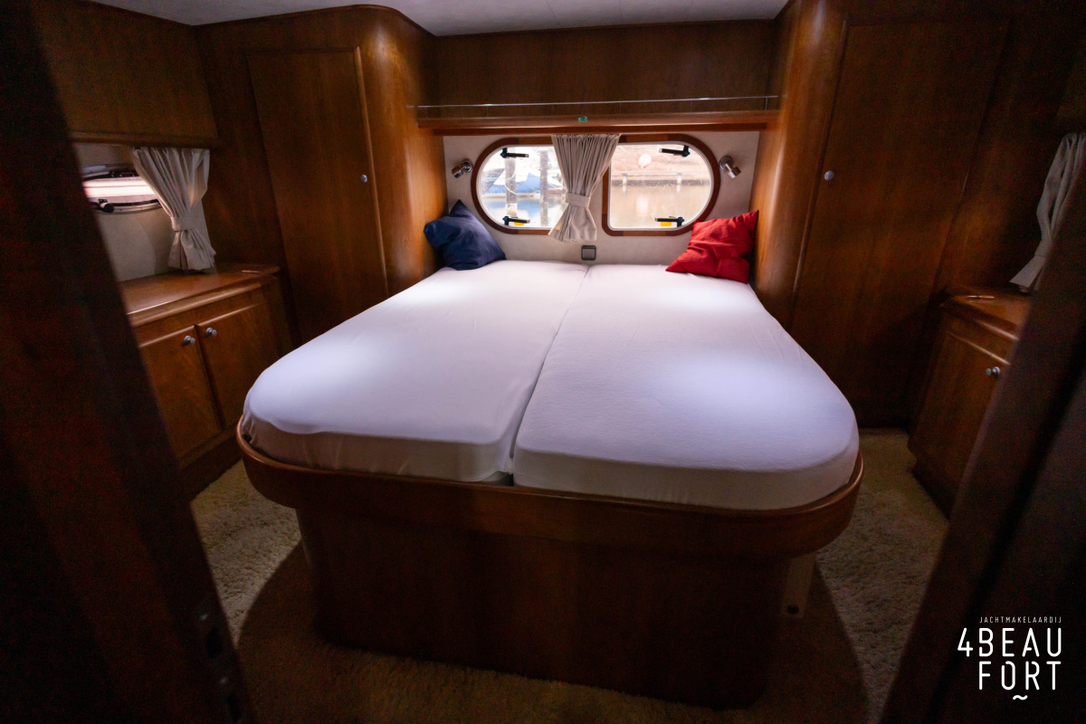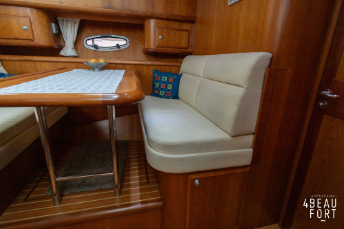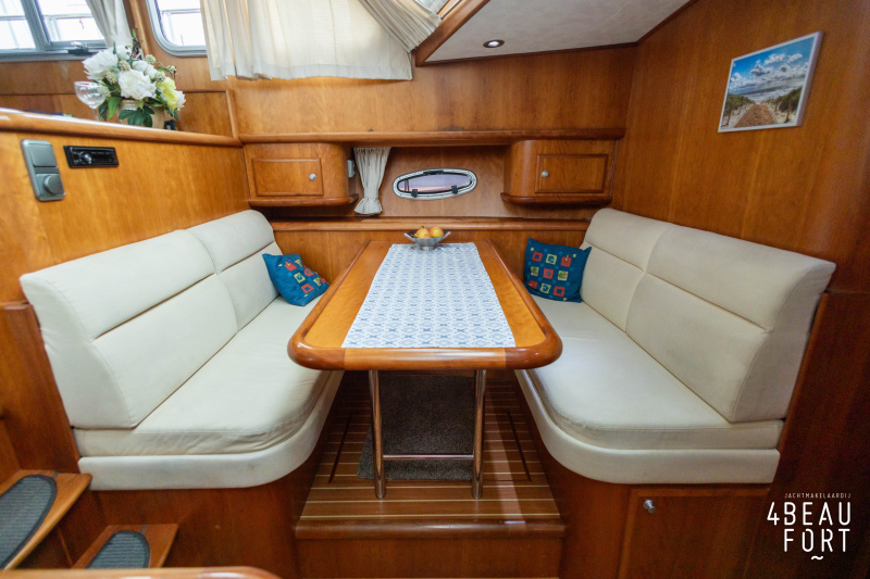 'Festina Lente' verfügt über zwei geräumige Hütten, zwei Toiletten und ein separates Badezimmer mit Dusche und Waschbecken. Darüber hinaus ist die Yacht mit modernen Annehmlichkeiten wie einer Waschmaschine und Trockner-Kombination ausgestattet. Der Salon hat ein warmes, attraktives Erscheinungsbild dank des luxuriösen Kirschholzes und der wunderschön gepolsterten Sofas. Dank der vielen Fenster kommt reichlich natürliches Licht herein.