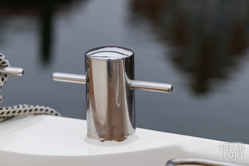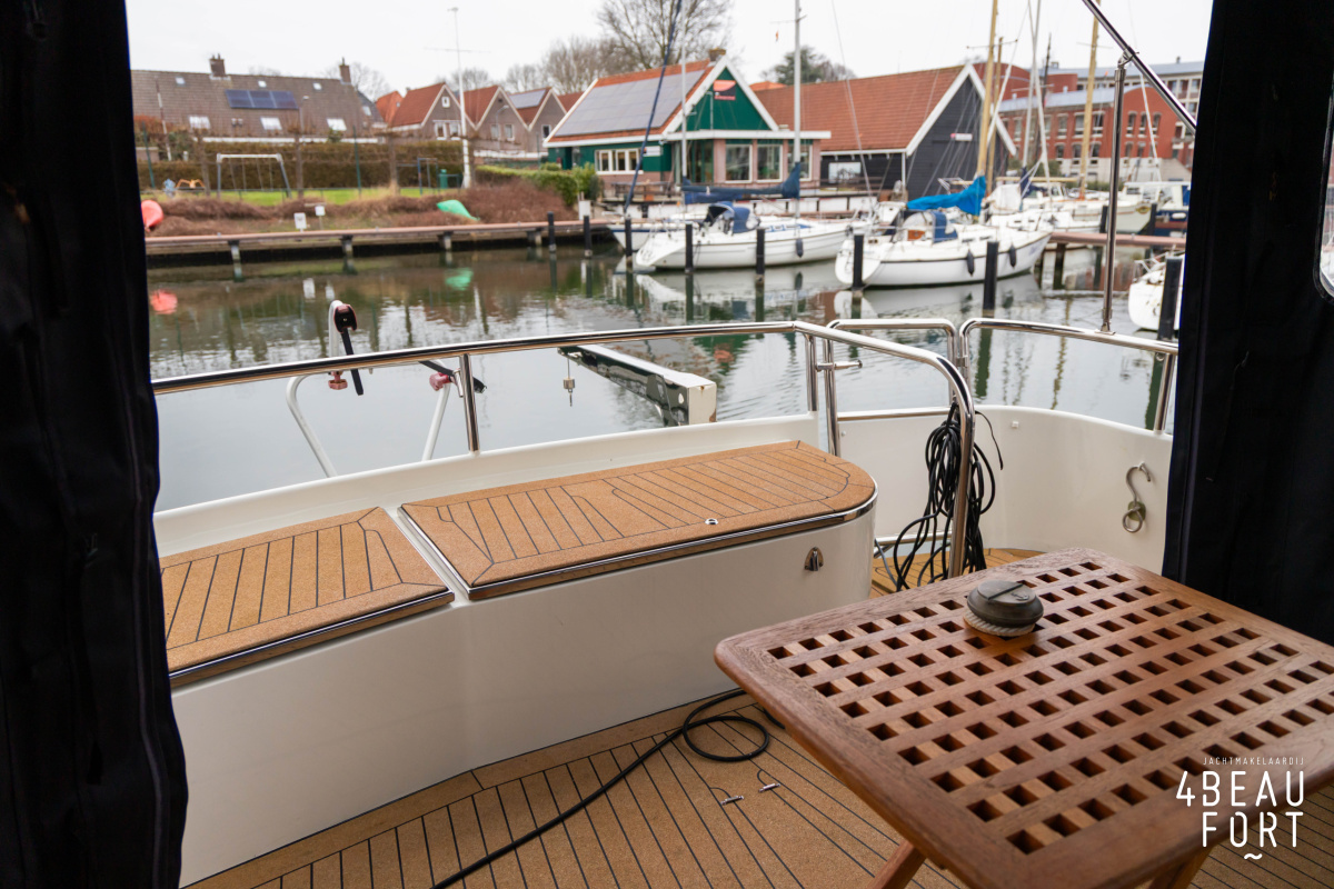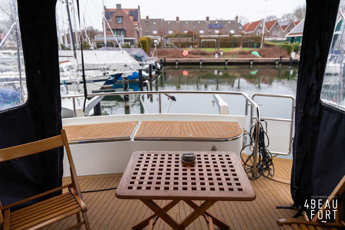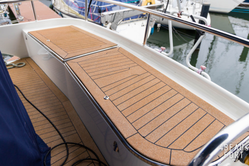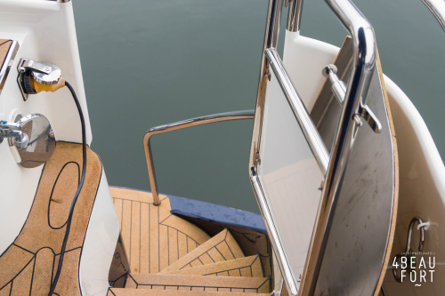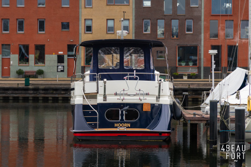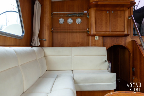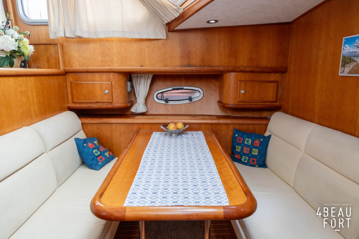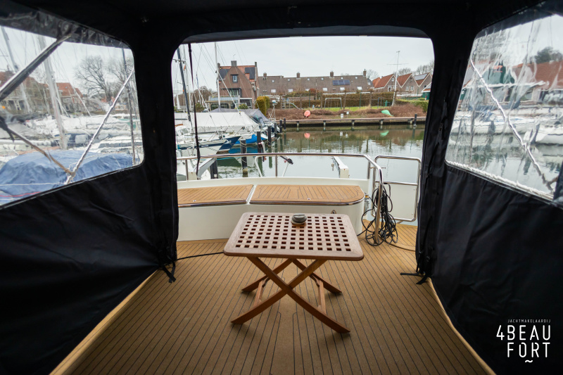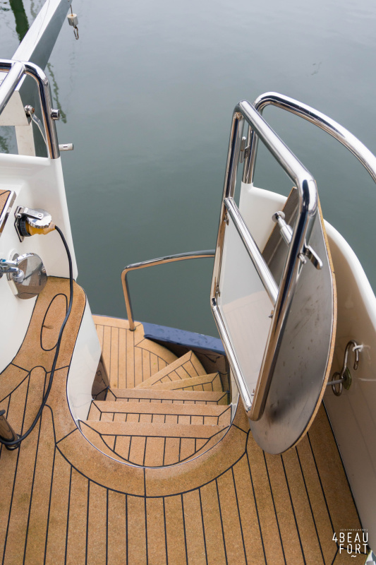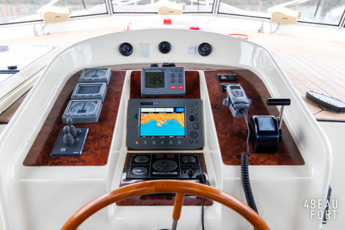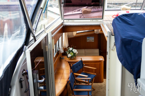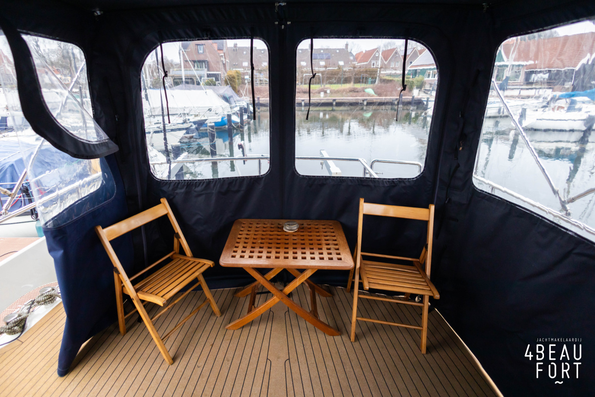 Kurz gesagt, eine wunderschöne Yacht mit eleganten Kurven, ausgestattet mit einem Marinedeck und einer Sprühhaube mit Bimini, die teilweise komplett geschlossen werden kann, sodass man auch bei weniger schönem Wetter bequem auf dem Achterdeck sitzen kann. Das Wartungsniveau ist ausgezeichnet: Der Aufbau wurde 2024 gestrichen, der Rumpf und der Unterwasserrumpf 2025.