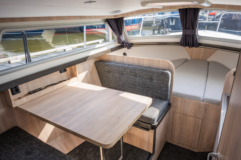 Diese Aquanaut 750 ist nicht die erste Überholung, um die sich Geart gekümmert hat. Er hat auch eine 11 Meter lange Aquanaut mit offenem Cockpit namens "Wâldpyk", die er komplett erneuert hat. "Ganz in der gleichen Farbgebung und mit dem gleichen Zubehör wie die neue 750", erklärt er. "Als wir im ersten Jahr mit beiden Booten in den Urlaub gefahren sind, haben wir nur positive Reaktionen bekommen. Ganz besonders."