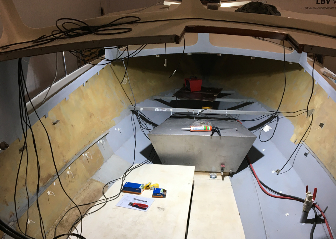 Die Yacht wurde komplett nackt zerlegt, bis nur noch der Rumpf, der Motor und das Scatra-Getriebe übrig blieben. Gemeinsam mit Schwiegersohn Bas bauten sie dann die Aquanaut von Grund auf neu. Geart: "Neue Verkabelung, neue Verkleidung aus HPL (das sich nicht verfärbt und kratzfrei ist), neue Polsterung, neues Konservierungssystem in 2 Komponenten, neue Fenster, ein neues Zelt. Ja, was ist eigentlich nicht neu?"