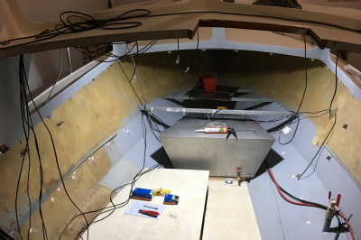 The yacht was stripped completely bare, until only the hull, engine and Scatra gearbox remained. Together with son-in-law Bas, they then built the Aquanaut from scratch. Geart: "New wiring, new paneling made of HPL (which does not discolour and is scratch-free), new upholstery, new preservation system in 2 components, new windows, a new tent. Yes, what is actually not new?"