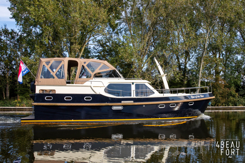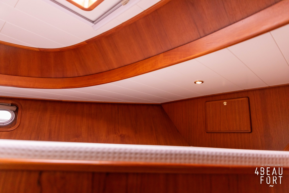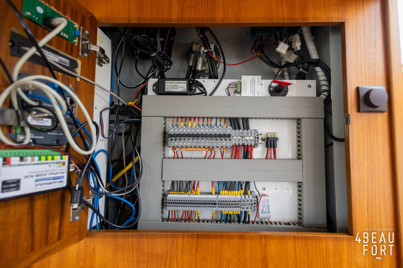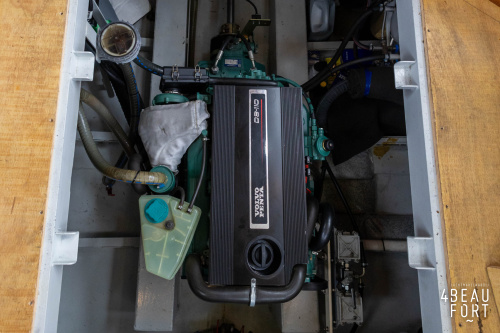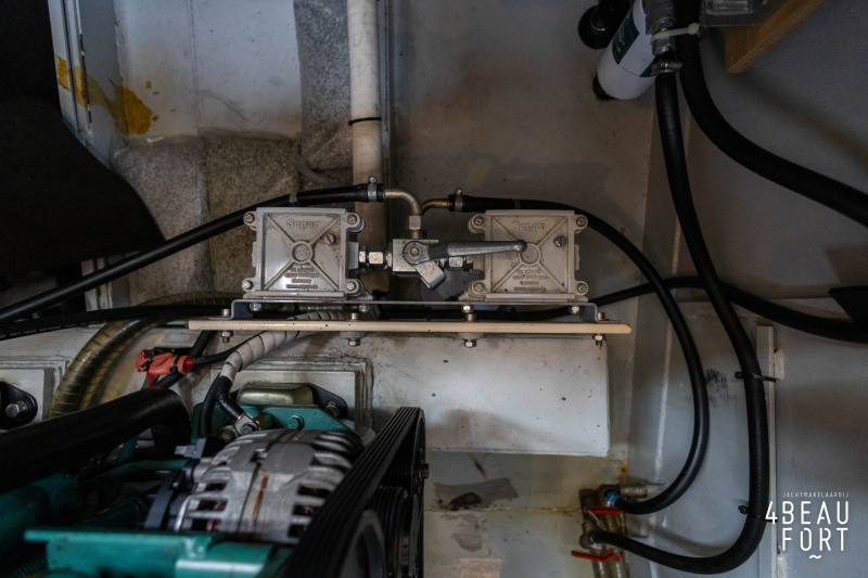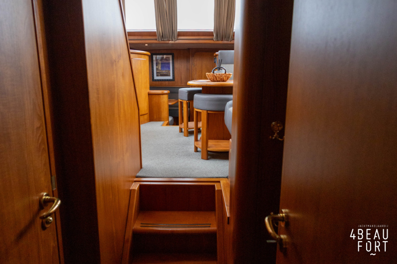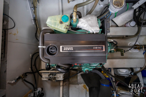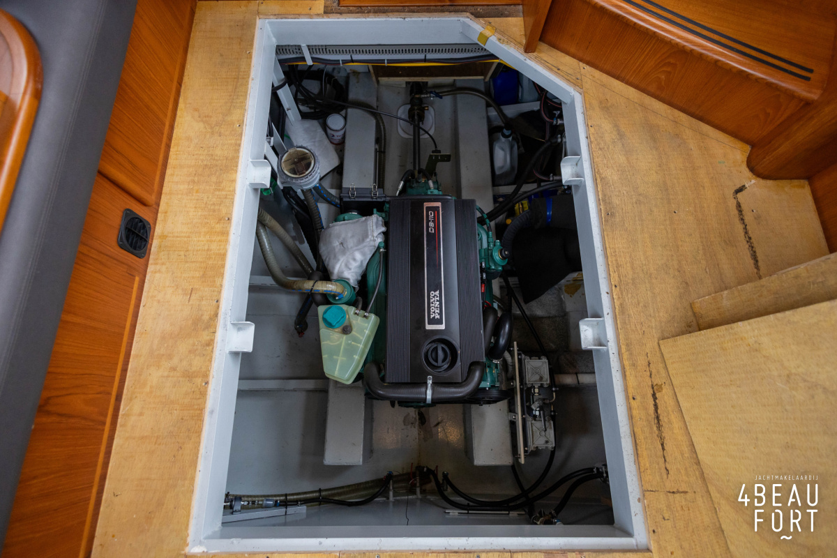 The spacious engine compartment includes a generator and a 110 hp Volvo Penta; together with the powerful bow and stern thruster, these bring the Out of the blue to any desired destination. All installations are neatly concealed and yet easily accessible. "Out of the blue"; a sturdy, timeless yacht with a luxurious look.