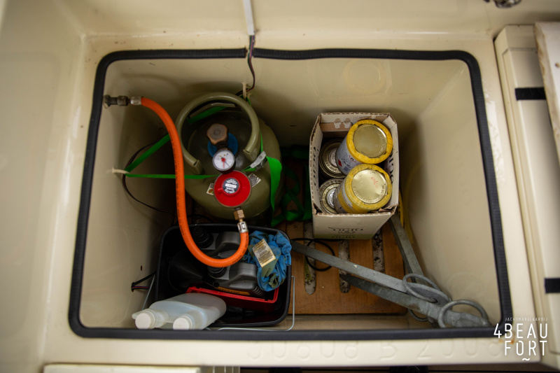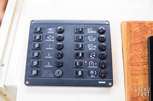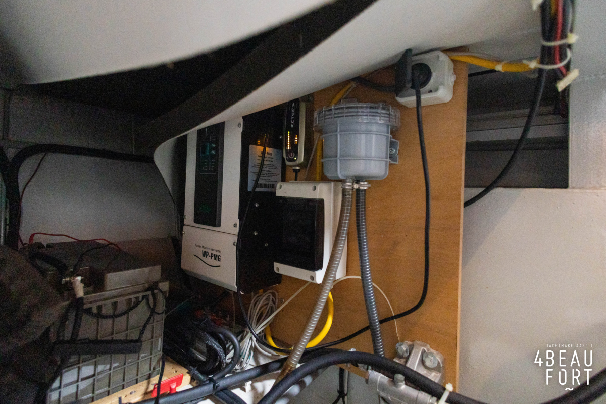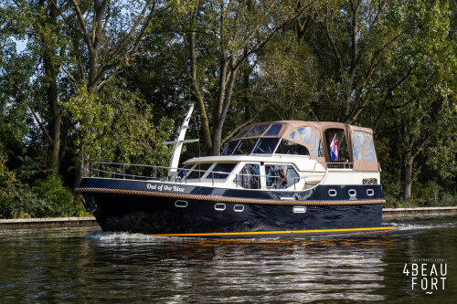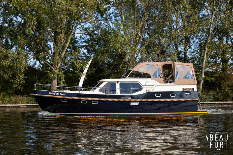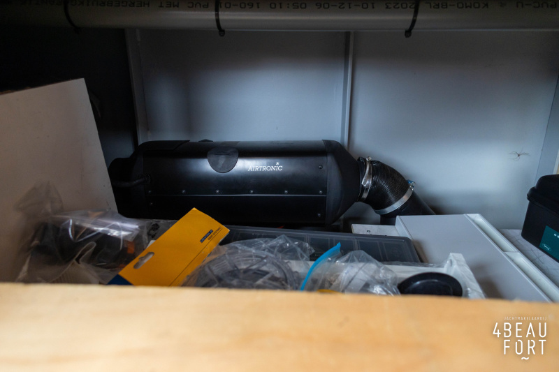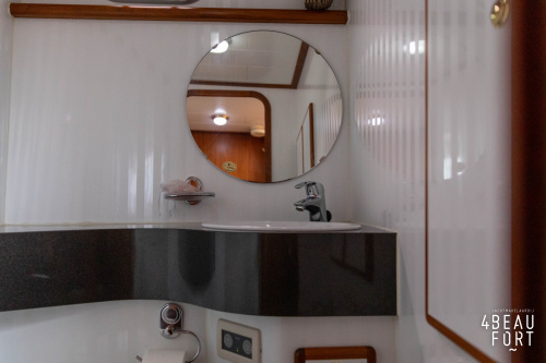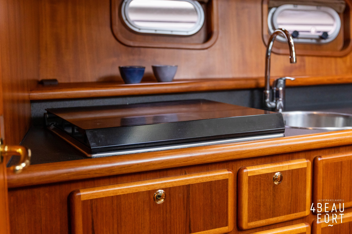 The spacious engine compartment includes a generator and a 110 hp Volvo Penta; together with the powerful bow and stern thruster, these bring the Out of the blue to any desired destination. All installations are neatly concealed and yet easily accessible. "Out of the blue"; a sturdy, timeless yacht with a luxurious look.
