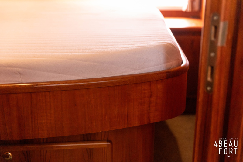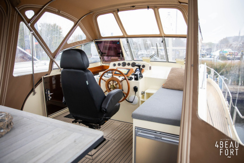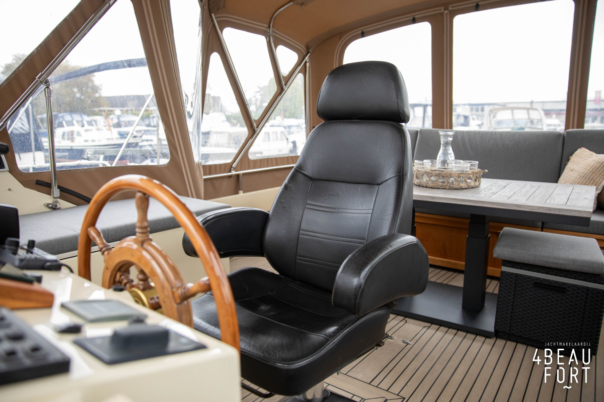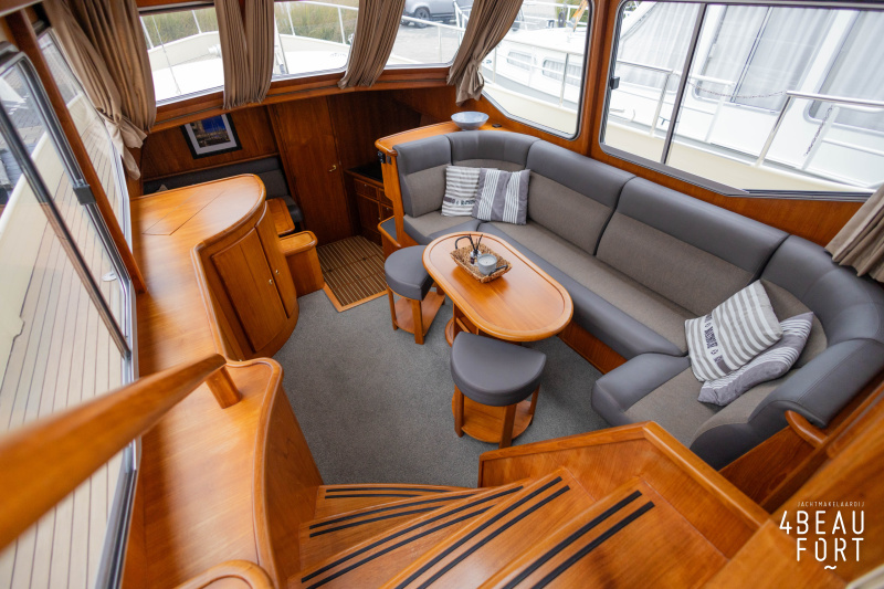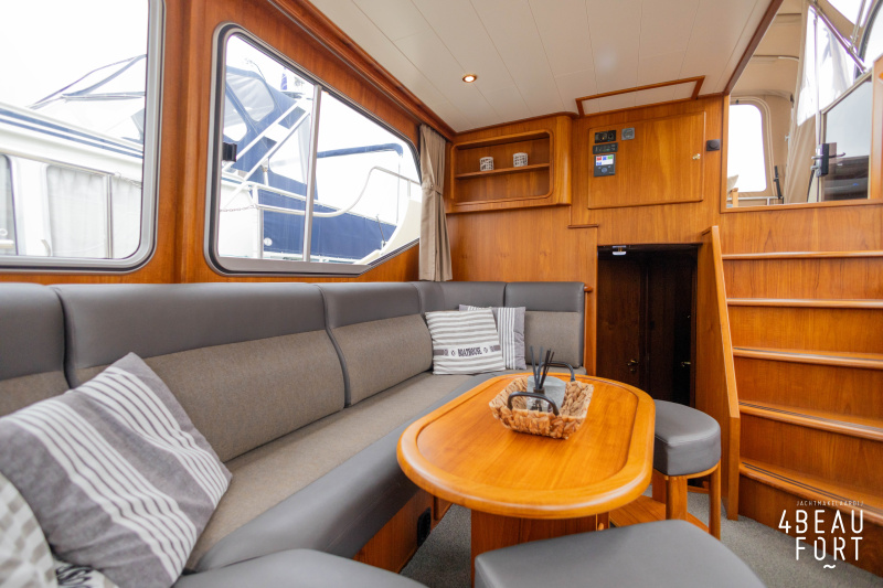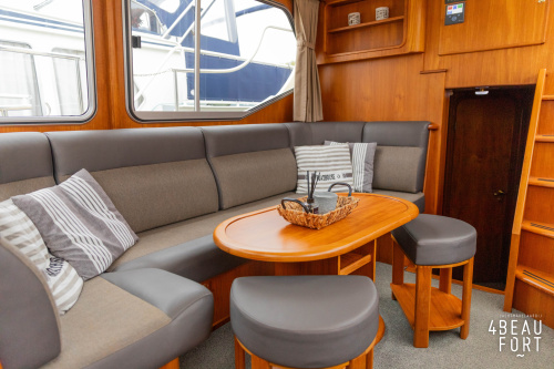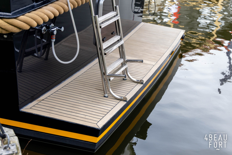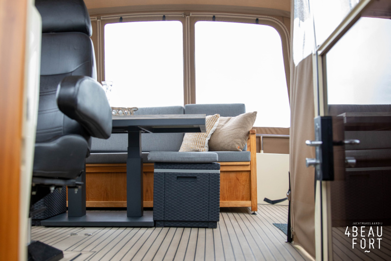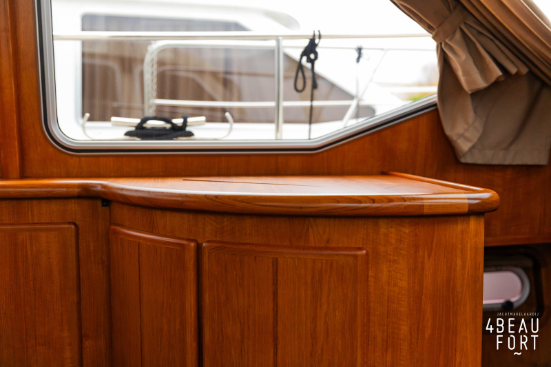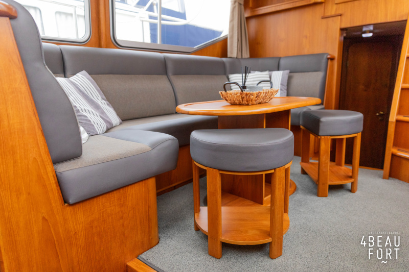 When you step on board, you will immediately notice the neat finish and comfort: both the gangway and the aft deck were covered with Flexiteak in 2015, which enhances the appearance of the ship and requires little maintenance. The spacious aft deck is a perfect place to relax with family and friends; The current owner had a custom-made teak bench installed, part of which can be cleverly sliding, so that access to the rear entry and the swimming platform remains free. From the steering position on the aft deck you have an excellent view of the ship and its surroundings and of the recently replaced navigation and control equipment.