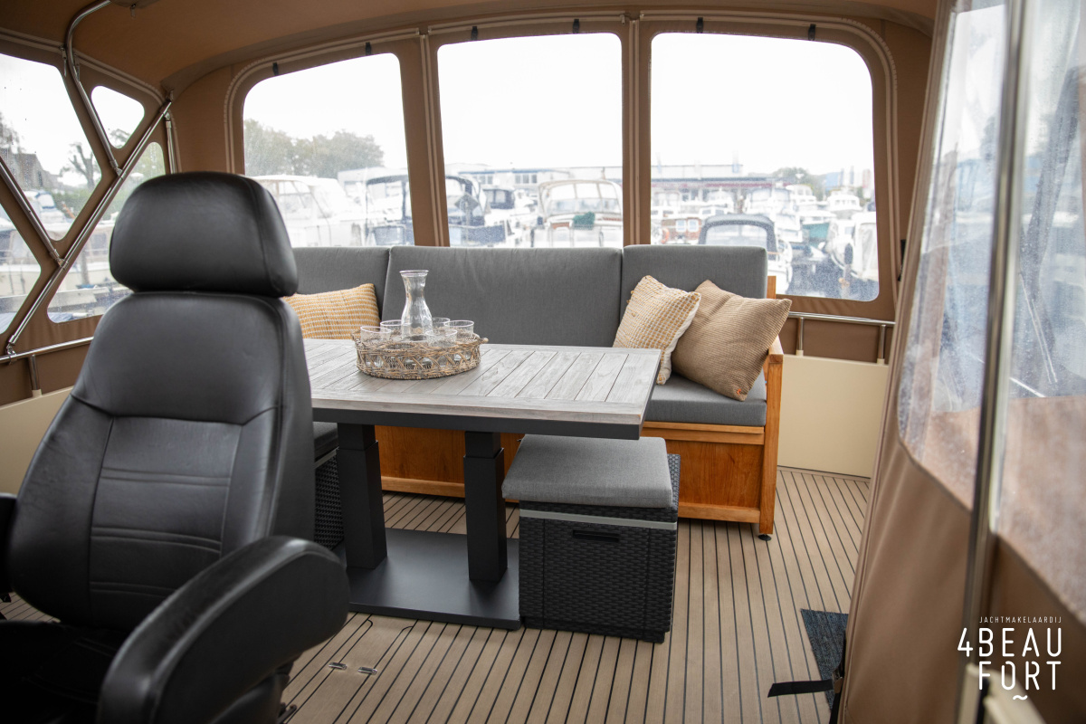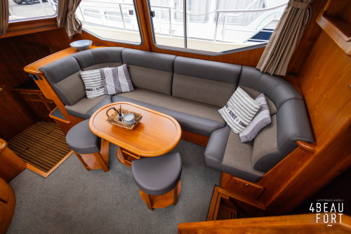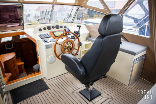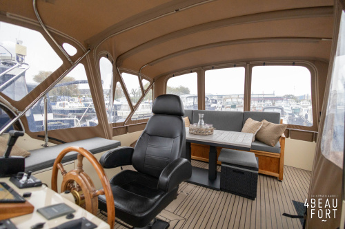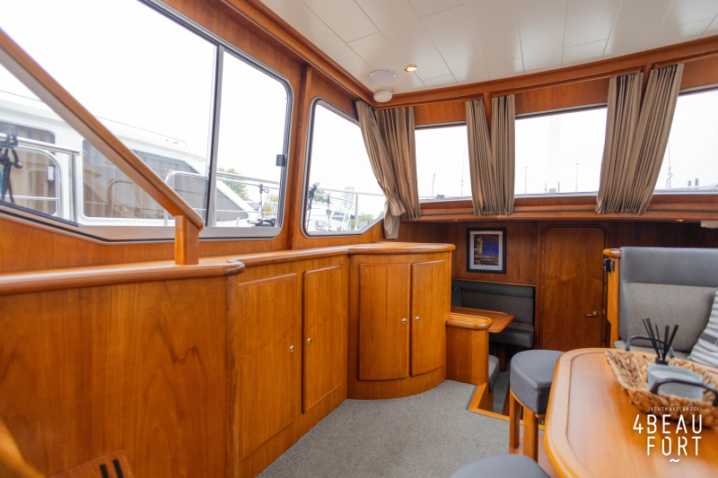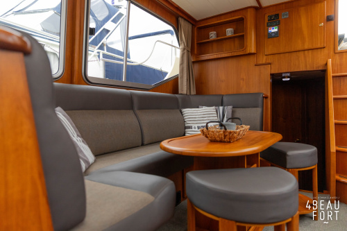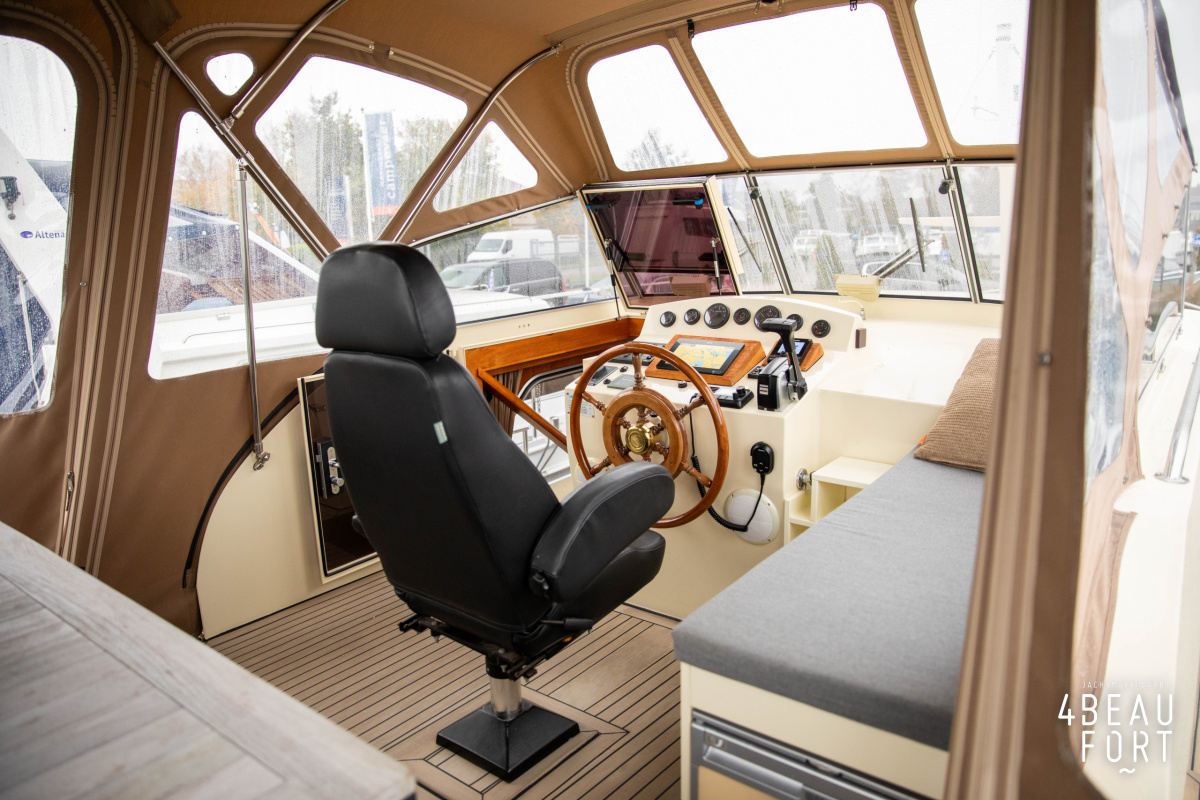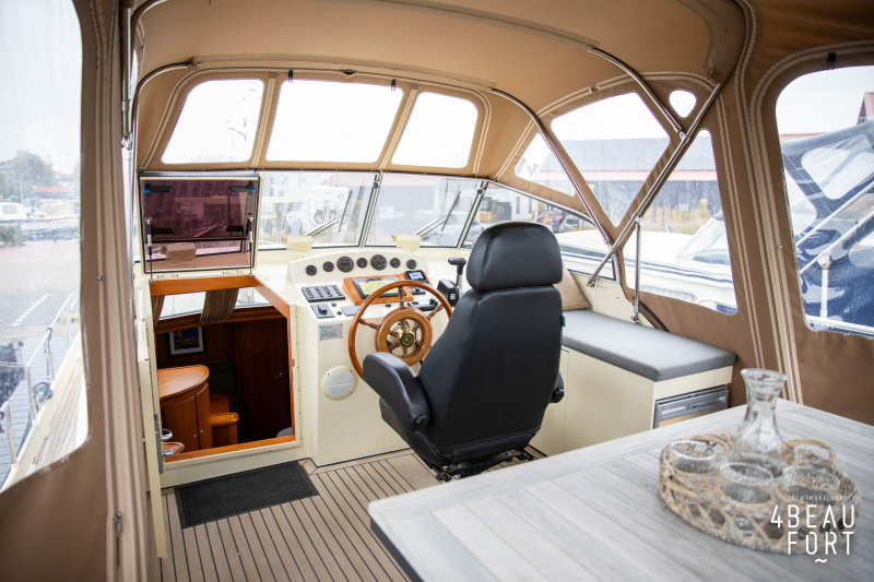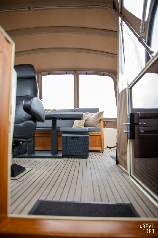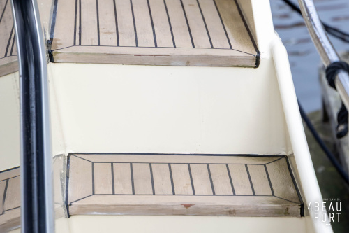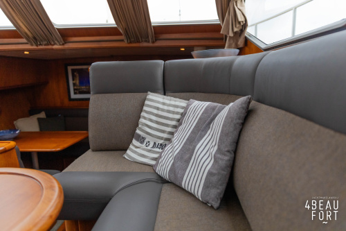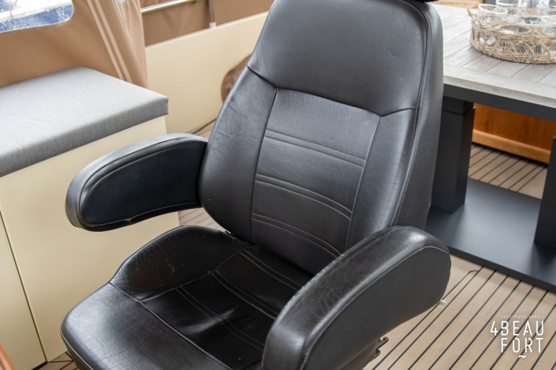 When you step on board, you will immediately notice the neat finish and comfort: both the gangway and the aft deck were covered with Flexiteak in 2015, which enhances the appearance of the ship and requires little maintenance. The spacious aft deck is a perfect place to relax with family and friends; The current owner had a custom-made teak bench installed, part of which can be cleverly sliding, so that access to the rear entry and the swimming platform remains free. From the steering position on the aft deck you have an excellent view of the ship and its surroundings and of the recently replaced navigation and control equipment.