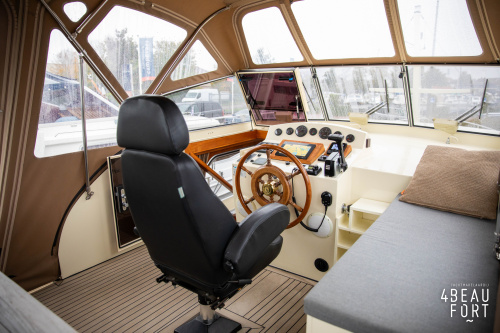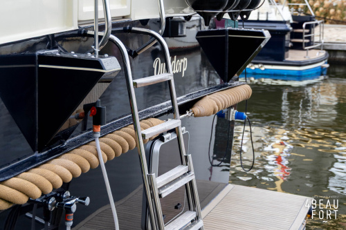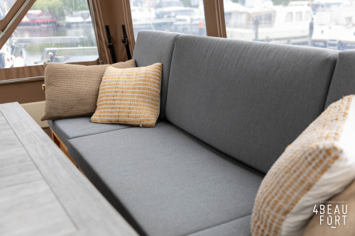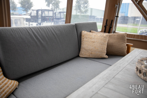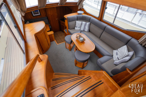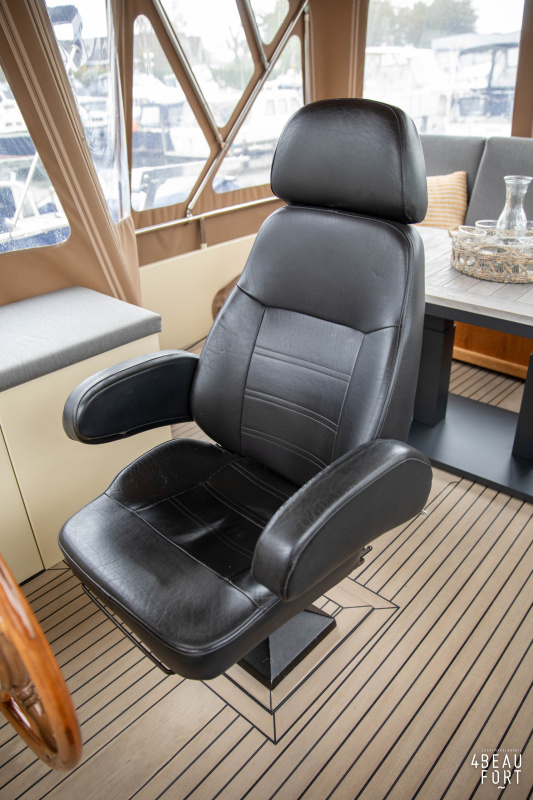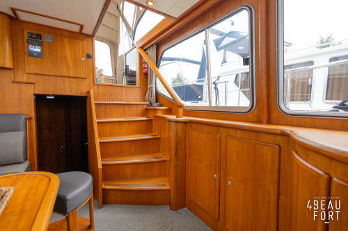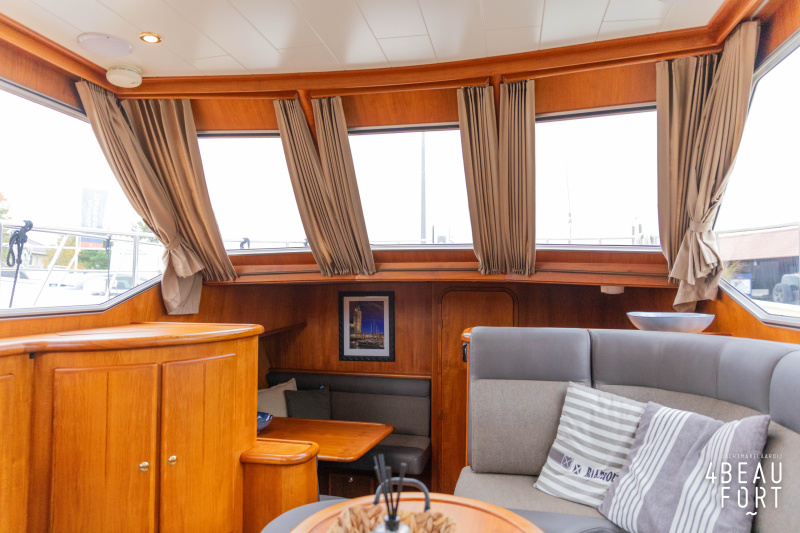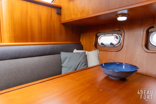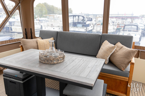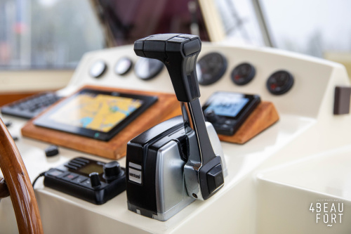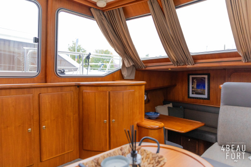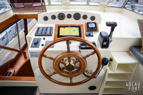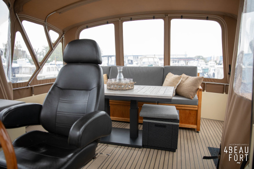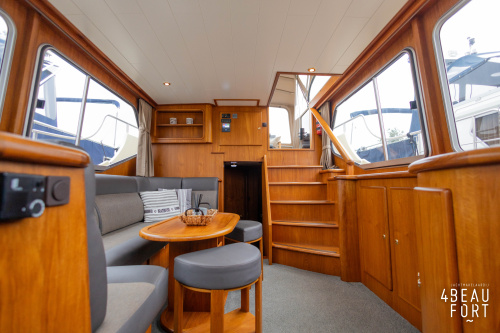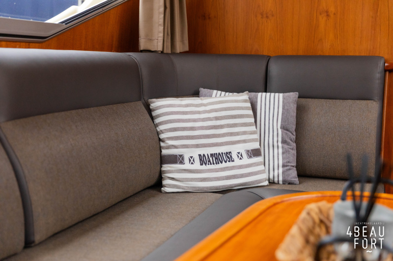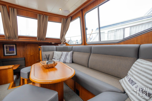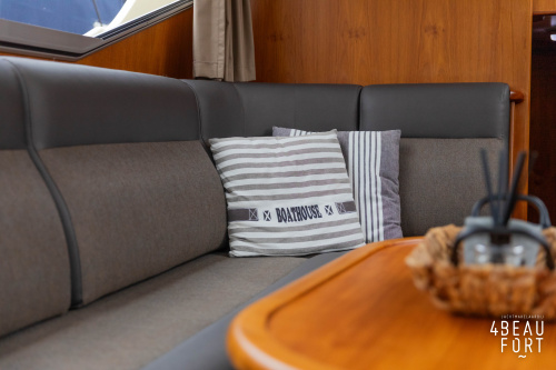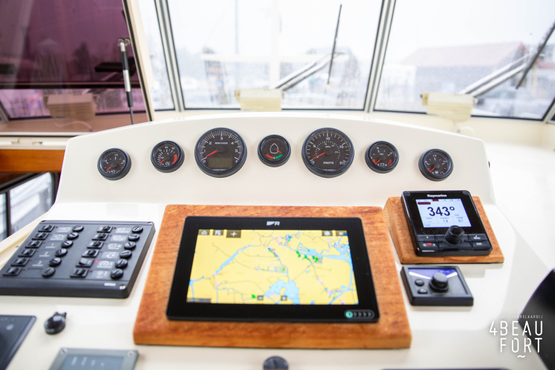 When you step on board, you will immediately notice the neat finish and comfort: both the gangway and the aft deck were covered with Flexiteak in 2015, which enhances the appearance of the ship and requires little maintenance. The spacious aft deck is a perfect place to relax with family and friends; The current owner had a custom-made teak bench installed, part of which can be cleverly sliding, so that access to the rear entry and the swimming platform remains free. From the steering position on the aft deck you have an excellent view of the ship and its surroundings and of the recently replaced navigation and control equipment.