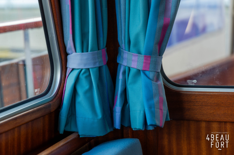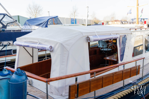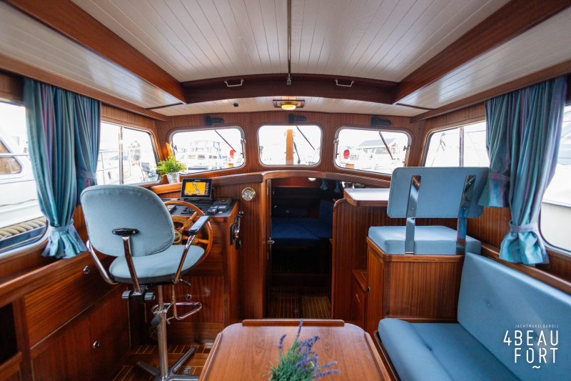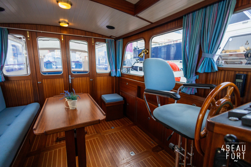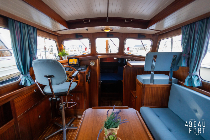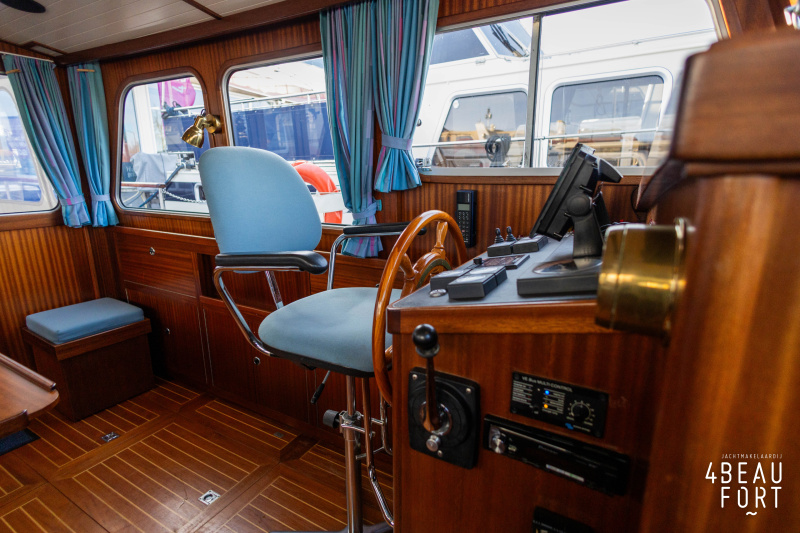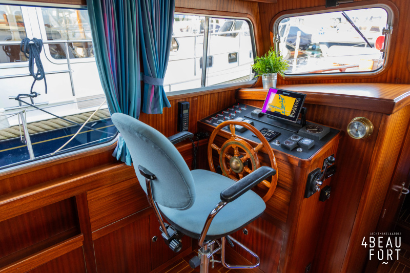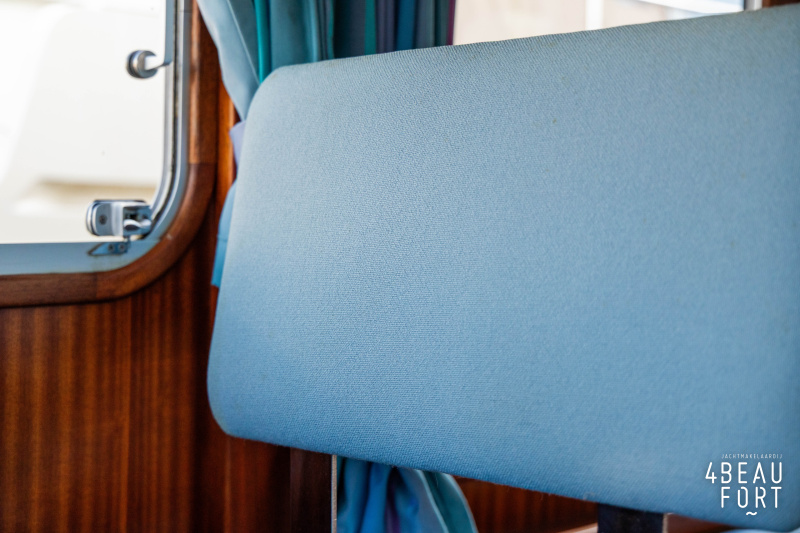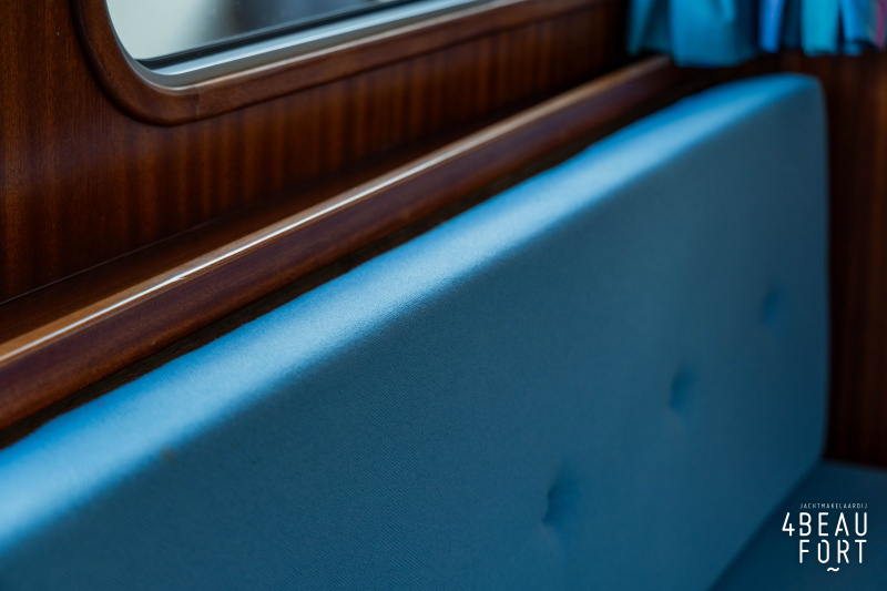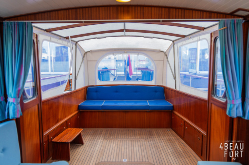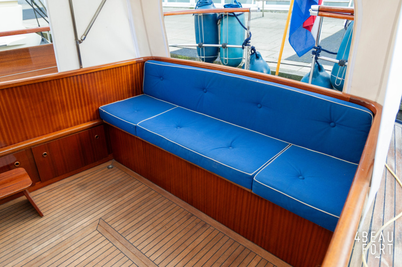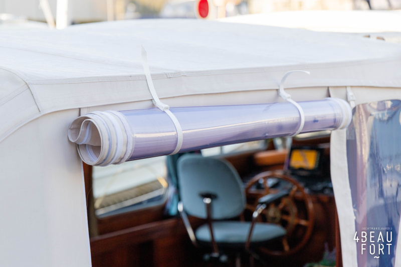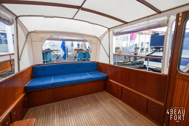 The open cockpit is deliberately spacious: only a bench against the transom leaves a lot of freedom of movement and offers space for (sun) chairs, while the teak finish and self-draining construction add both style and ease of use. Under the cockpit is a large storage space, perfect for lines, cushions and accessories. Important maintenance has recently been carried out: the hull was completely painted in 2021, the superstructure in 2023 and the cockpit tent was completely renewed in 2025.