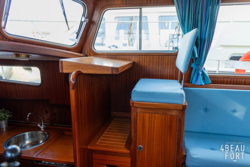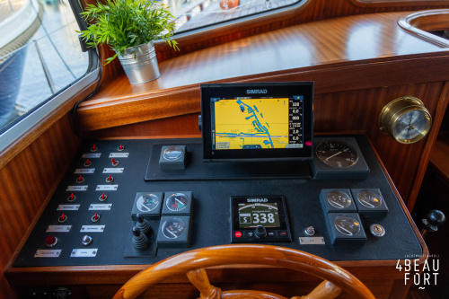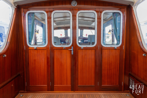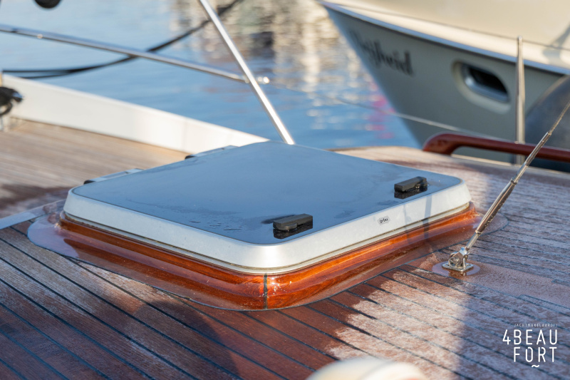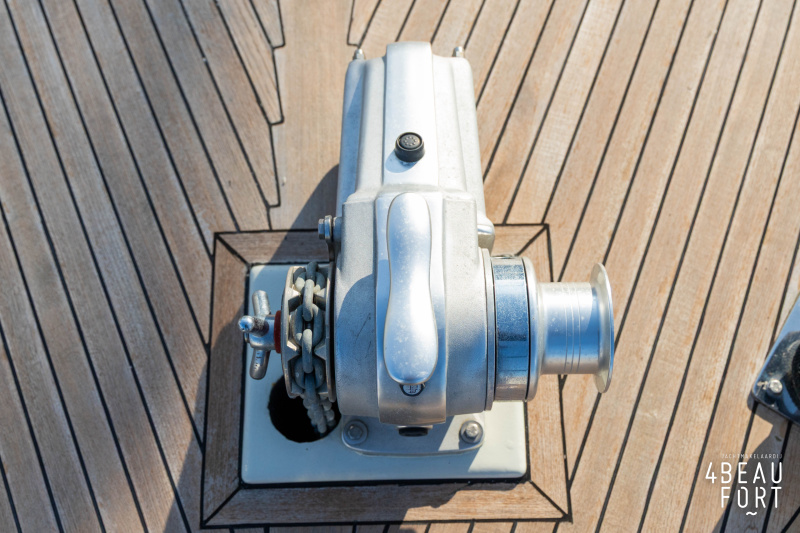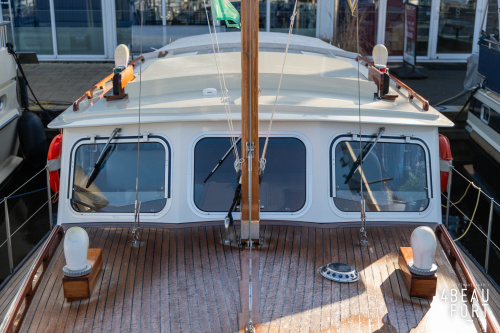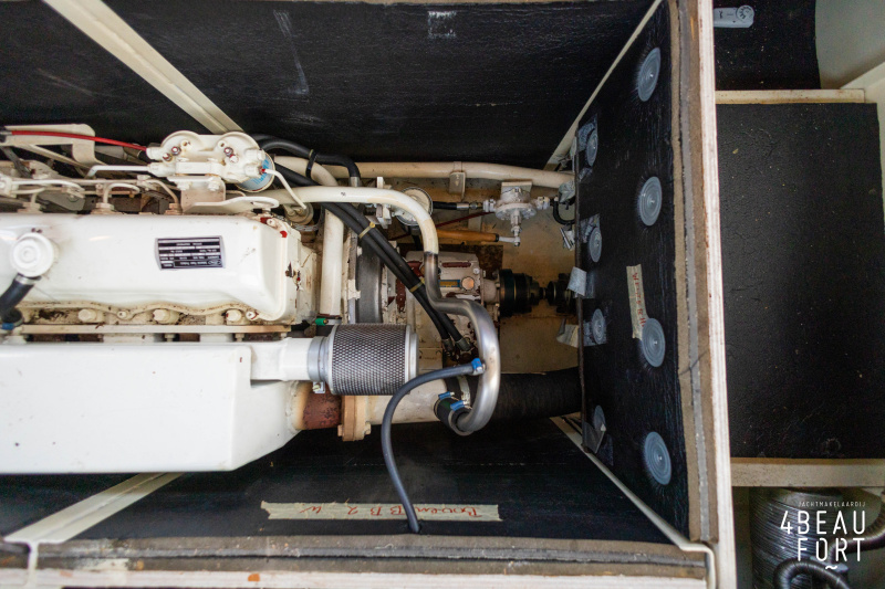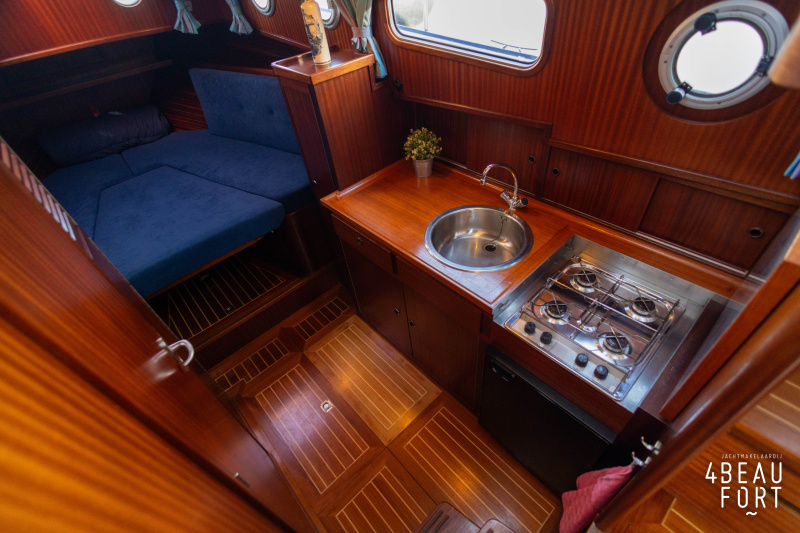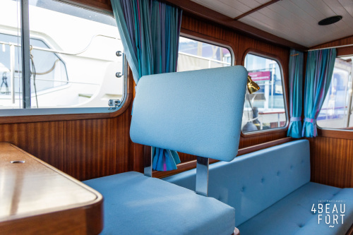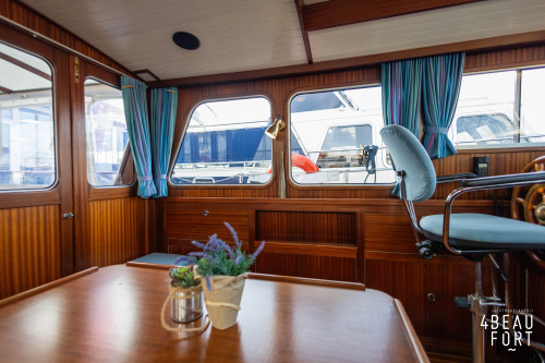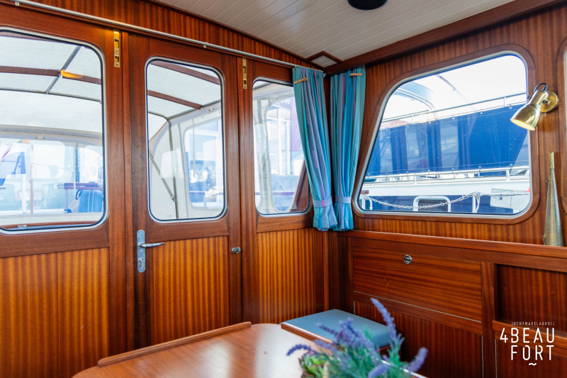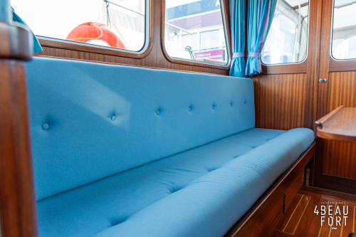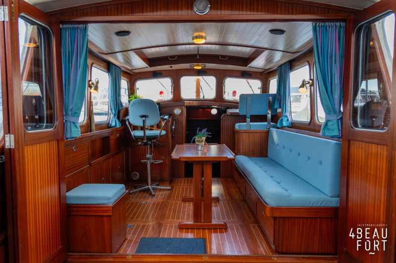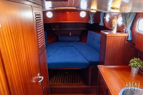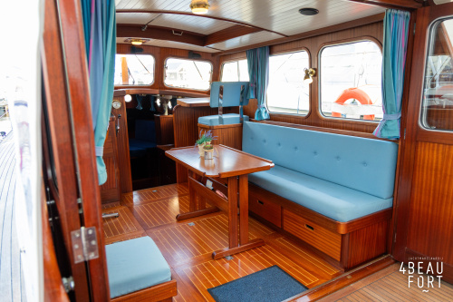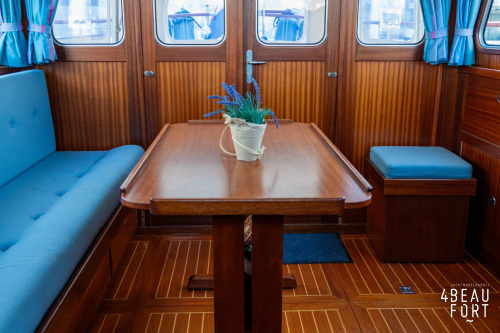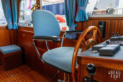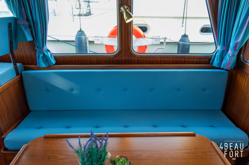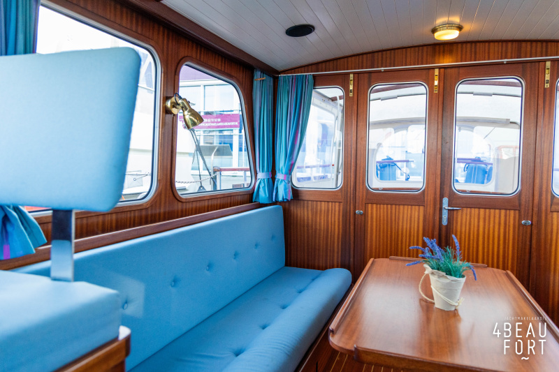 The open cockpit is deliberately spacious: only a bench against the transom leaves a lot of freedom of movement and offers space for (sun) chairs, while the teak finish and self-draining construction add both style and ease of use. Under the cockpit is a large storage space, perfect for lines, cushions and accessories. Important maintenance has recently been carried out: the hull was completely painted in 2021, the superstructure in 2023 and the cockpit tent was completely renewed in 2025.