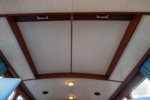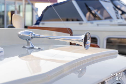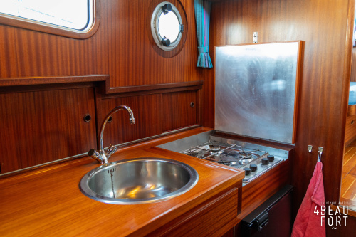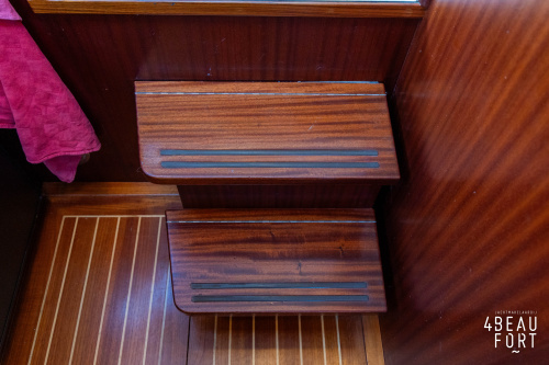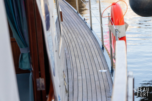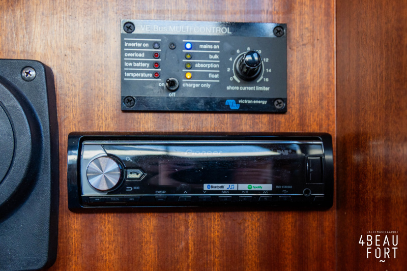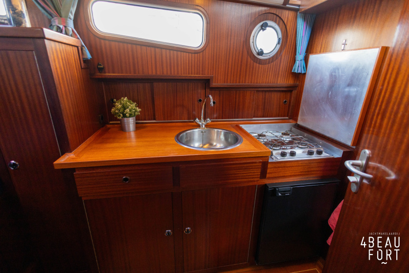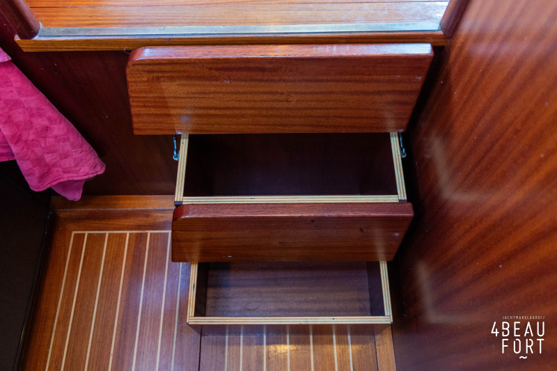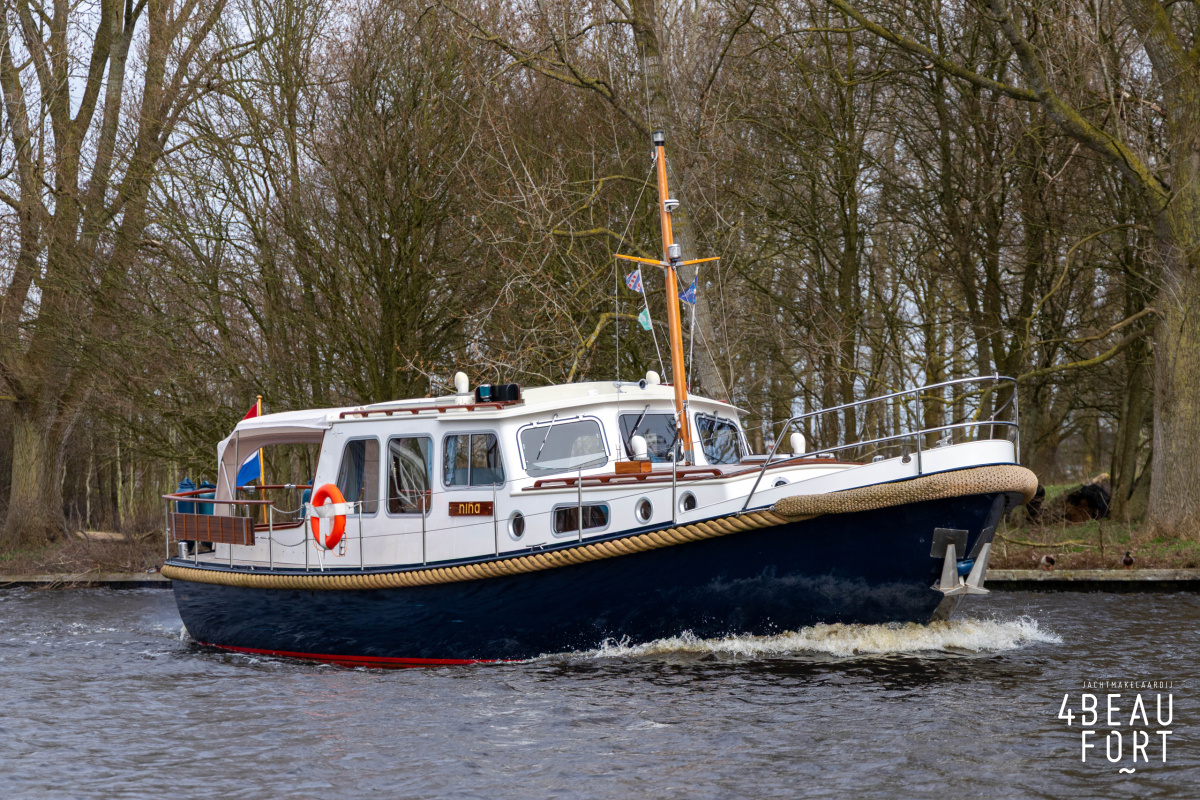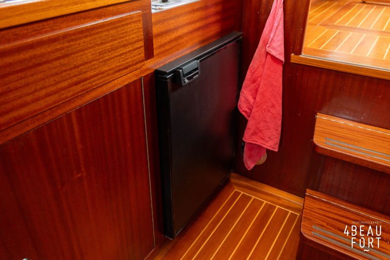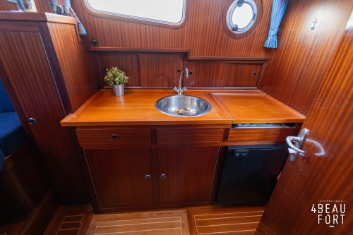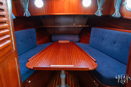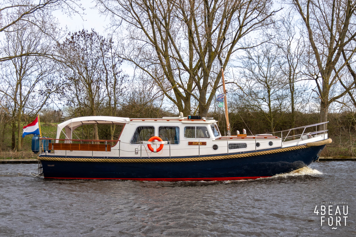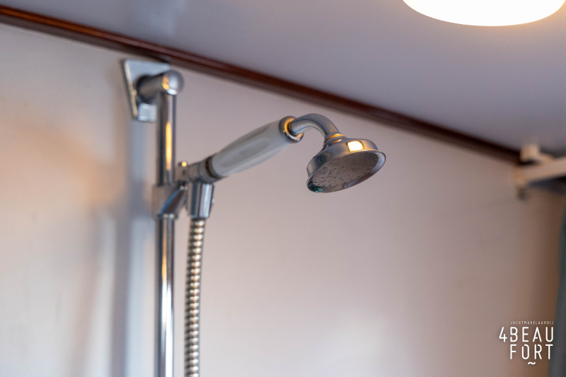 The open cockpit is deliberately spacious: only a bench against the transom leaves a lot of freedom of movement and offers space for (sun) chairs, while the teak finish and self-draining construction add both style and ease of use. Under the cockpit is a large storage space, perfect for lines, cushions and accessories. Important maintenance has recently been carried out: the hull was completely painted in 2021, the superstructure in 2023 and the cockpit tent was completely renewed in 2025.