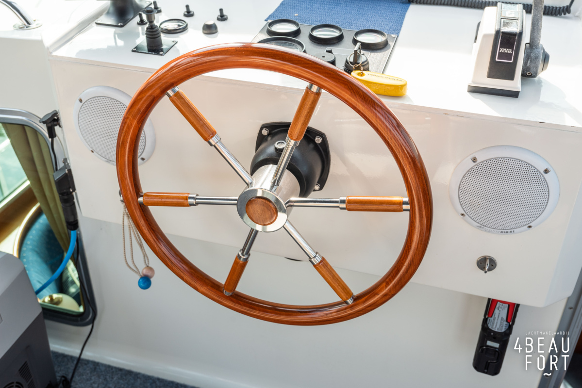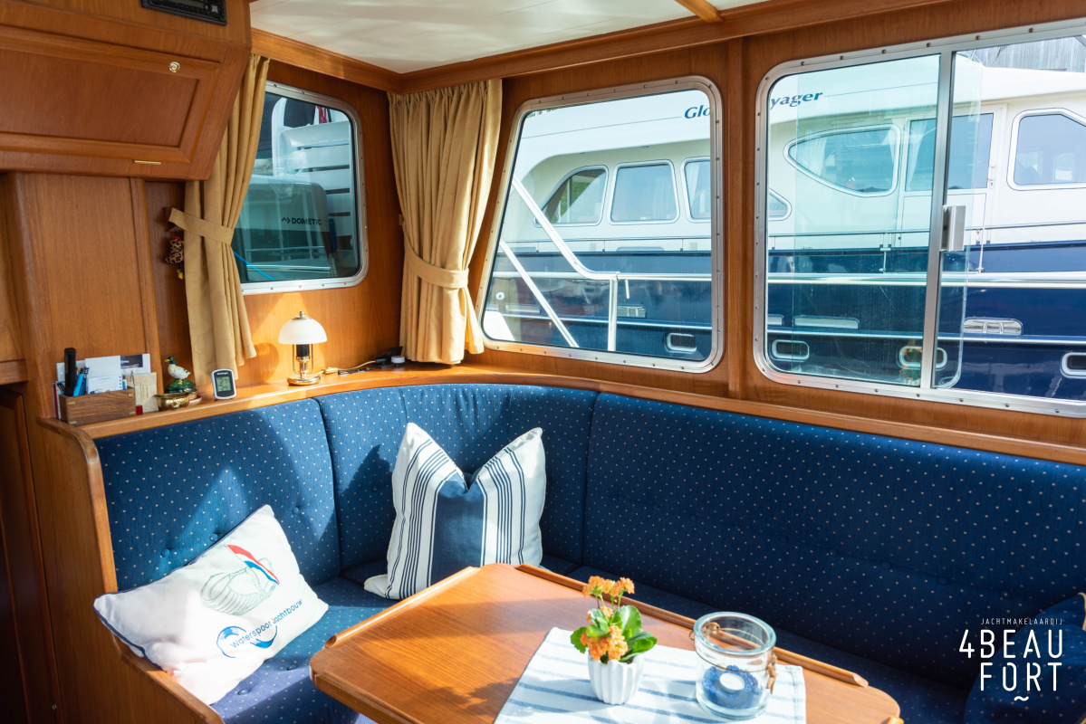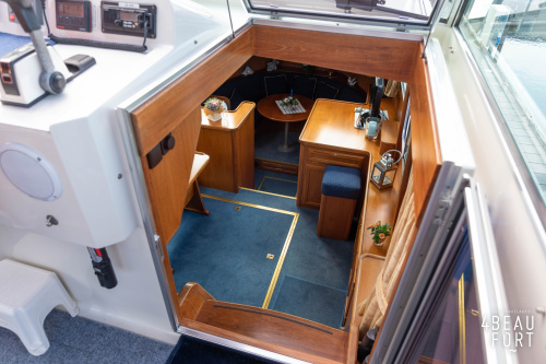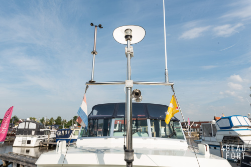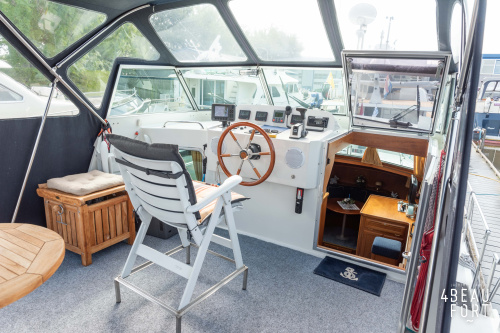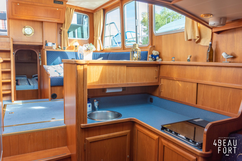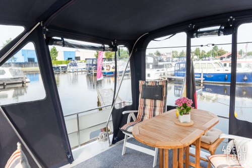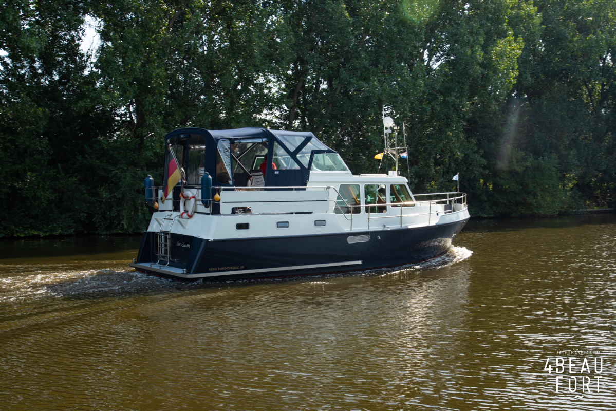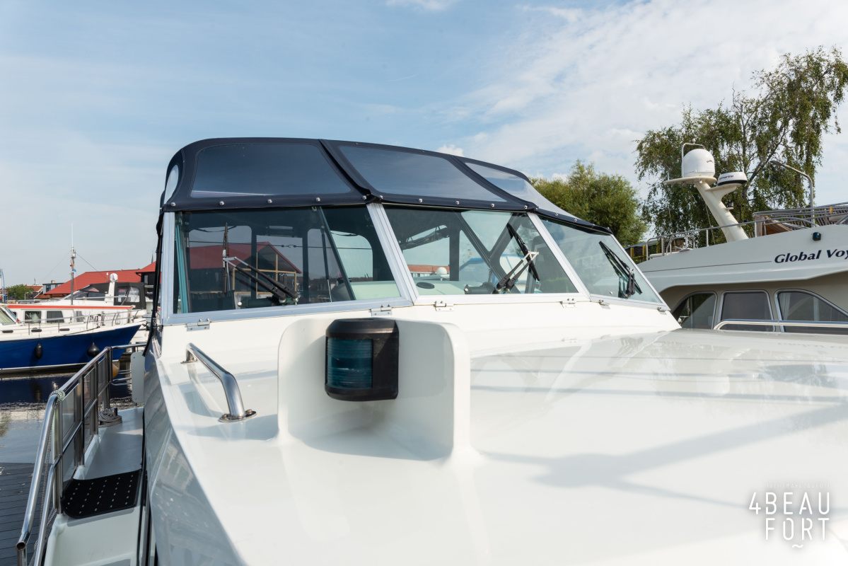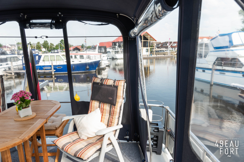 Very neat Veha cruiser Euroclassic 35, owned by its second owner. The “Happiness” is stored in a hall every winter and is professionally maintained by RFU in Irnsum. The cruiser is finished in teak; the fore ship has a spacious round seating area, which also serves as an extra sleeping area, and a spacious galley. The saloon has a comfortable sofa and plenty of cupboard space. In the aft section, there is a spacious toilet, a separate shower room, and an owner's cabin with a spacious freestanding bed.