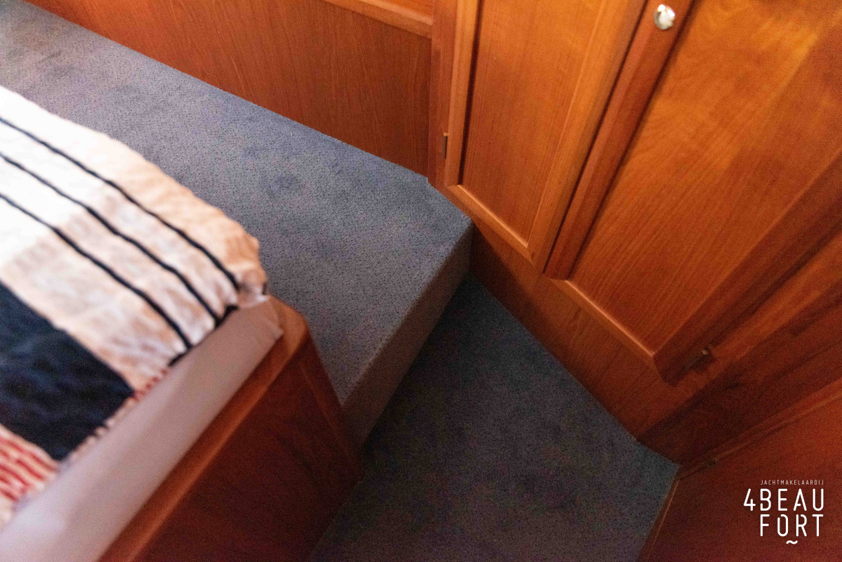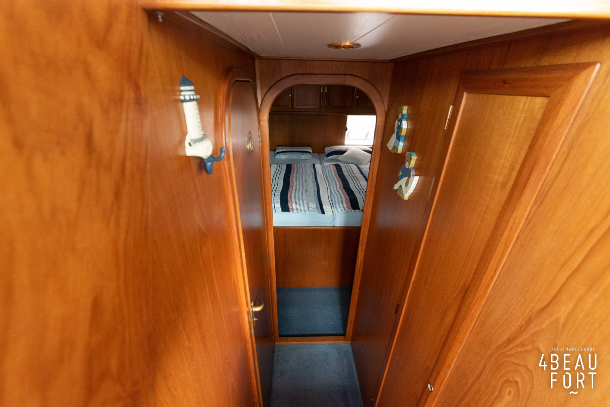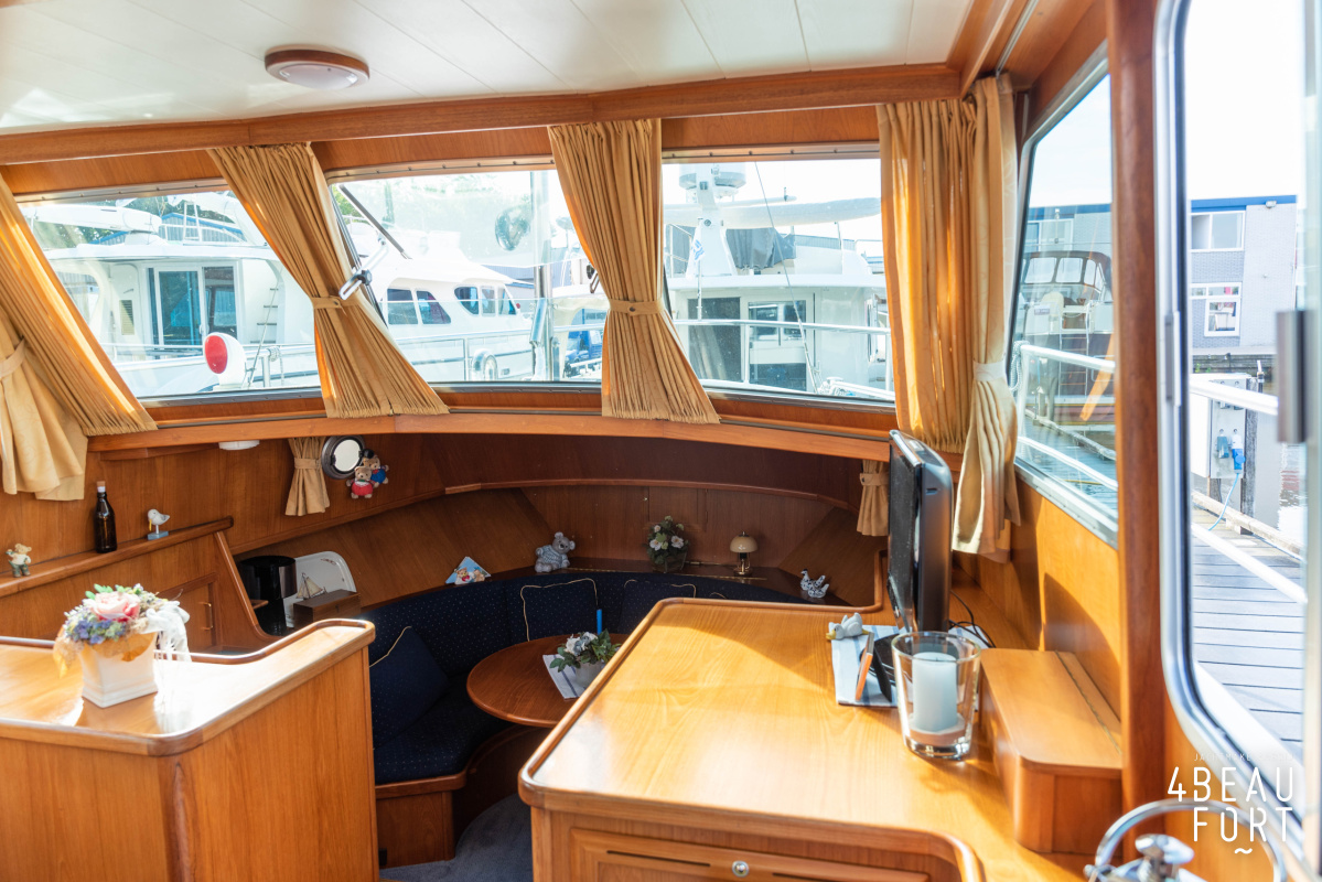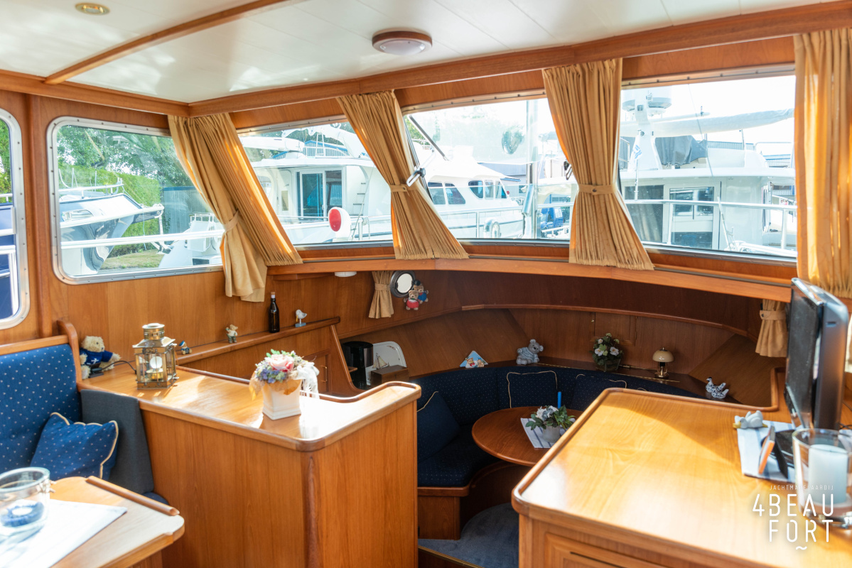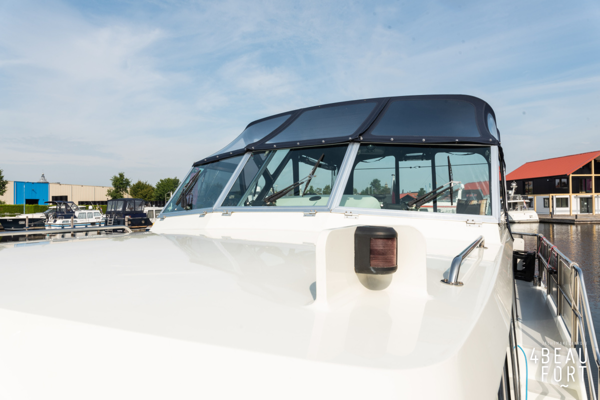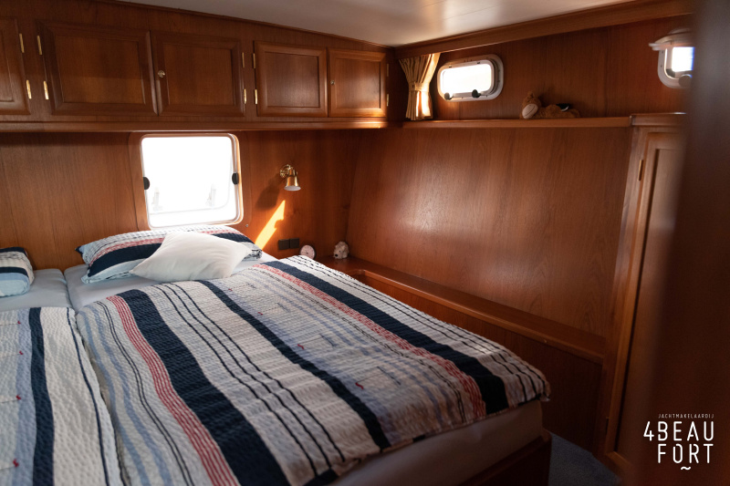 Very neat Veha cruiser Euroclassic 35, owned by its second owner. The “Happiness” is stored in a hall every winter and is professionally maintained by RFU in Irnsum. The cruiser is finished in teak; the fore ship has a spacious round seating area, which also serves as an extra sleeping area, and a spacious galley. The saloon has a comfortable sofa and plenty of cupboard space. In the aft section, there is a spacious toilet, a separate shower room, and an owner's cabin with a spacious freestanding bed.
