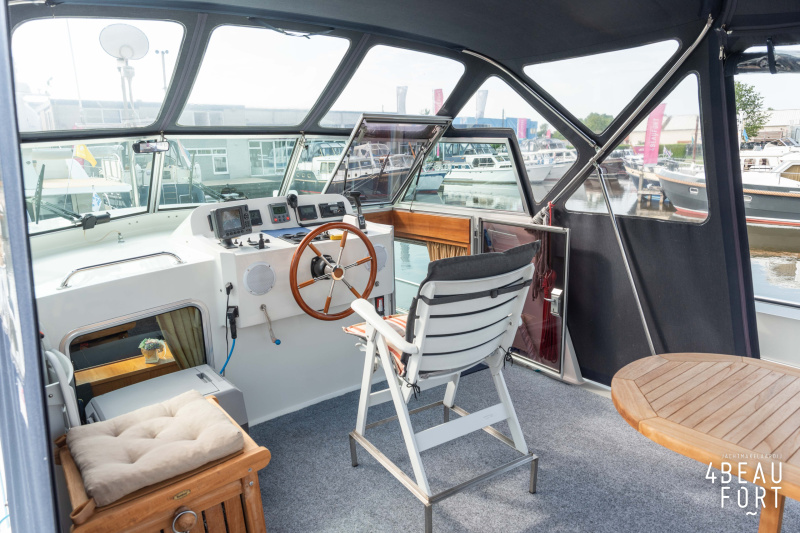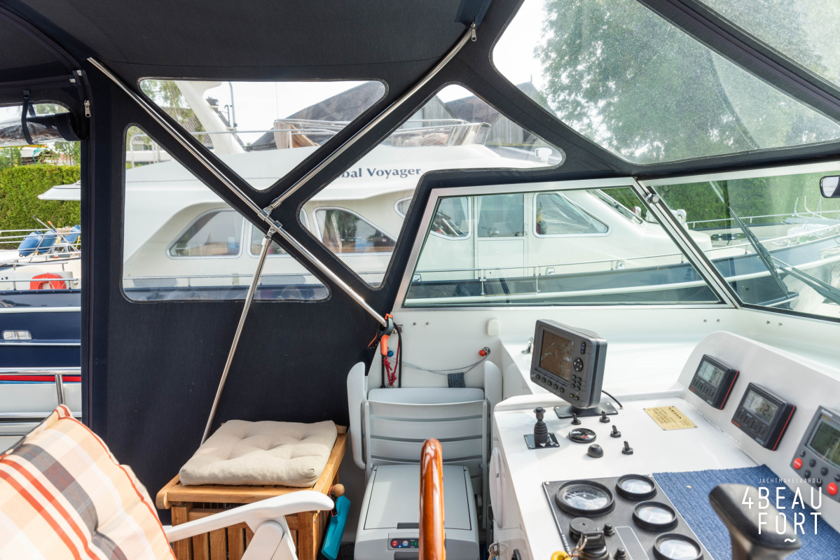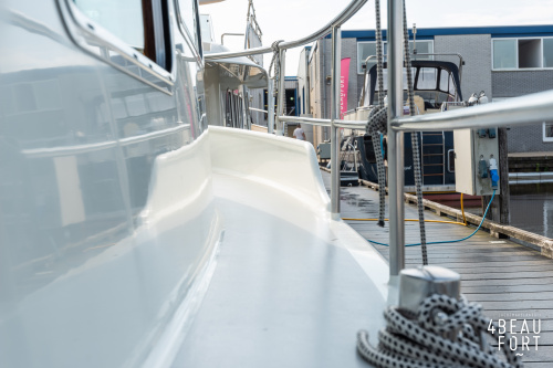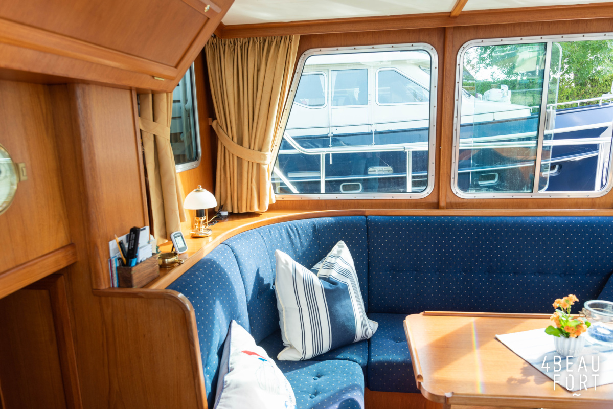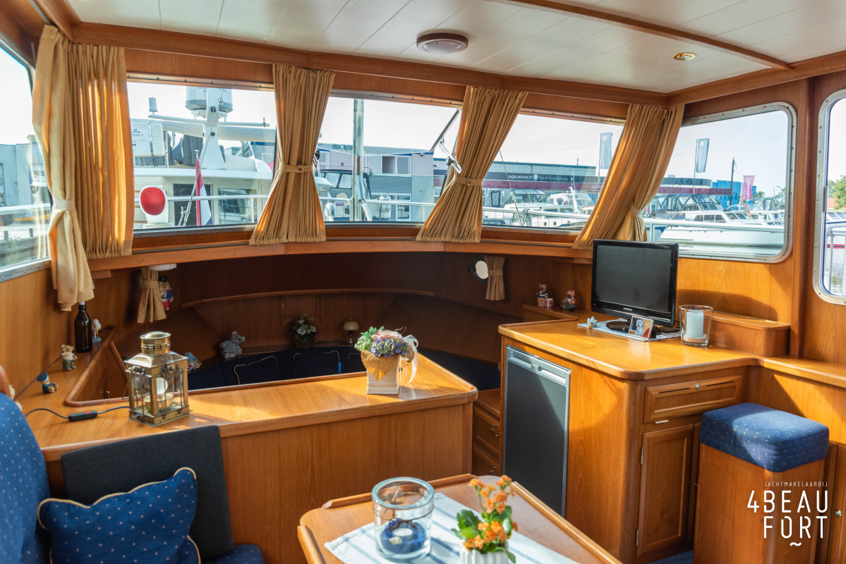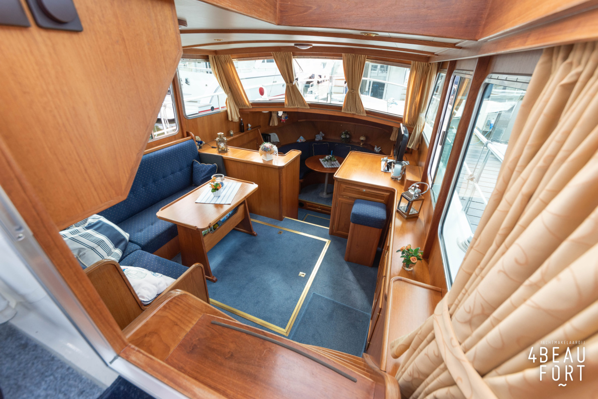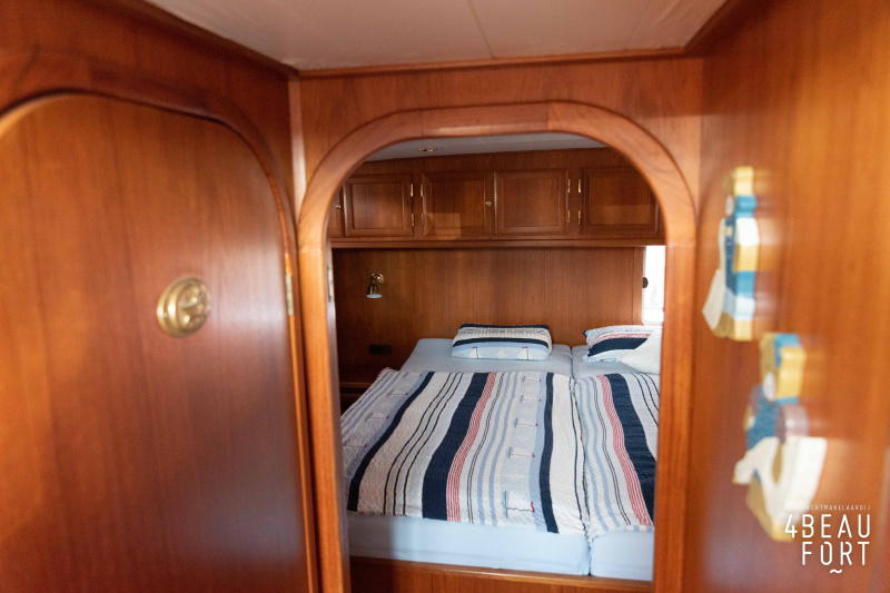 Very neat Veha cruiser Euroclassic 35, owned by its second owner. The “Happiness” is stored in a hall every winter and is professionally maintained by RFU in Irnsum. The cruiser is finished in teak; the fore ship has a spacious round seating area, which also serves as an extra sleeping area, and a spacious galley. The saloon has a comfortable sofa and plenty of cupboard space. In the aft section, there is a spacious toilet, a separate shower room, and an owner's cabin with a spacious freestanding bed.