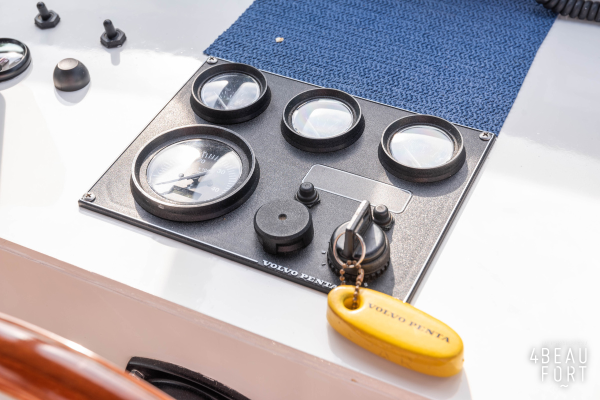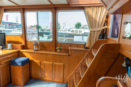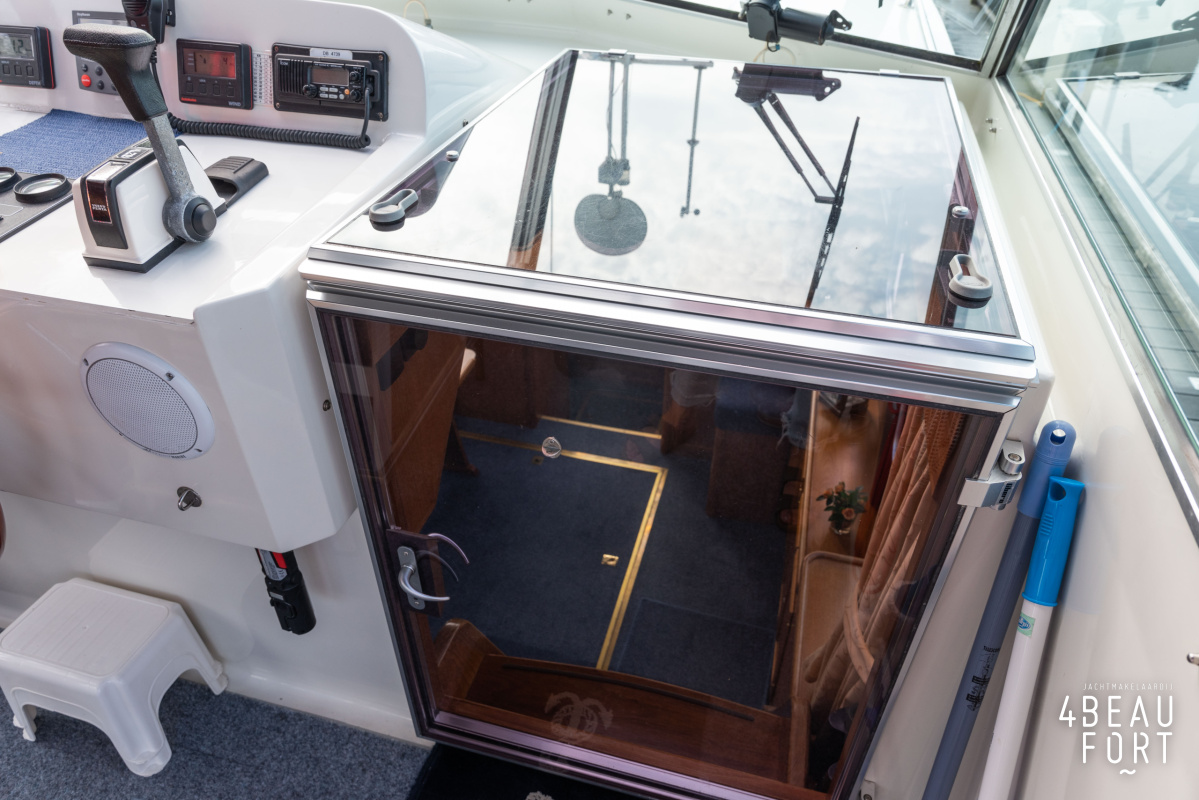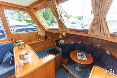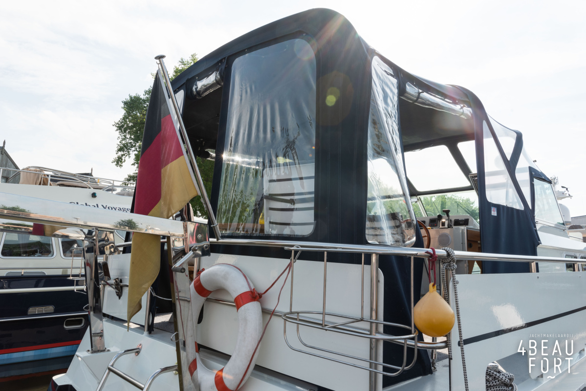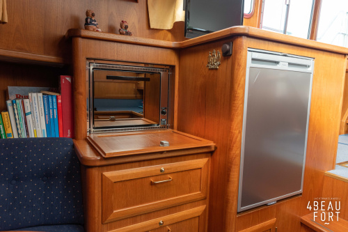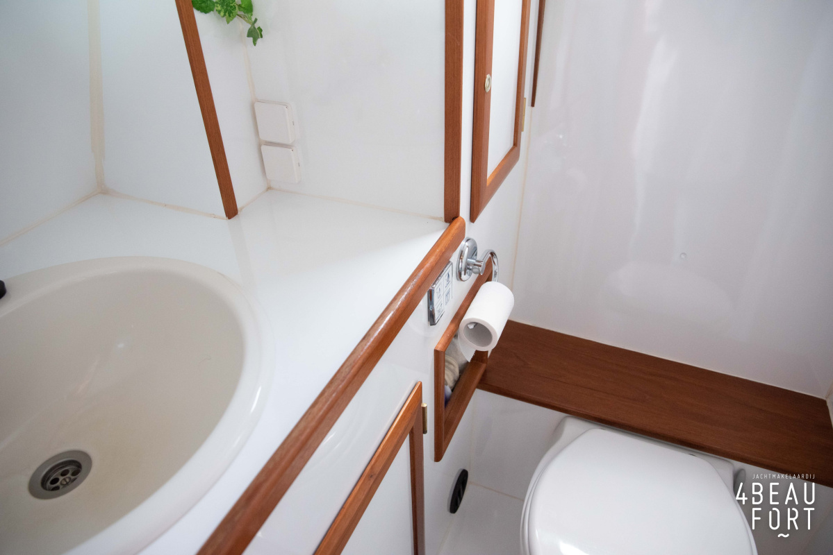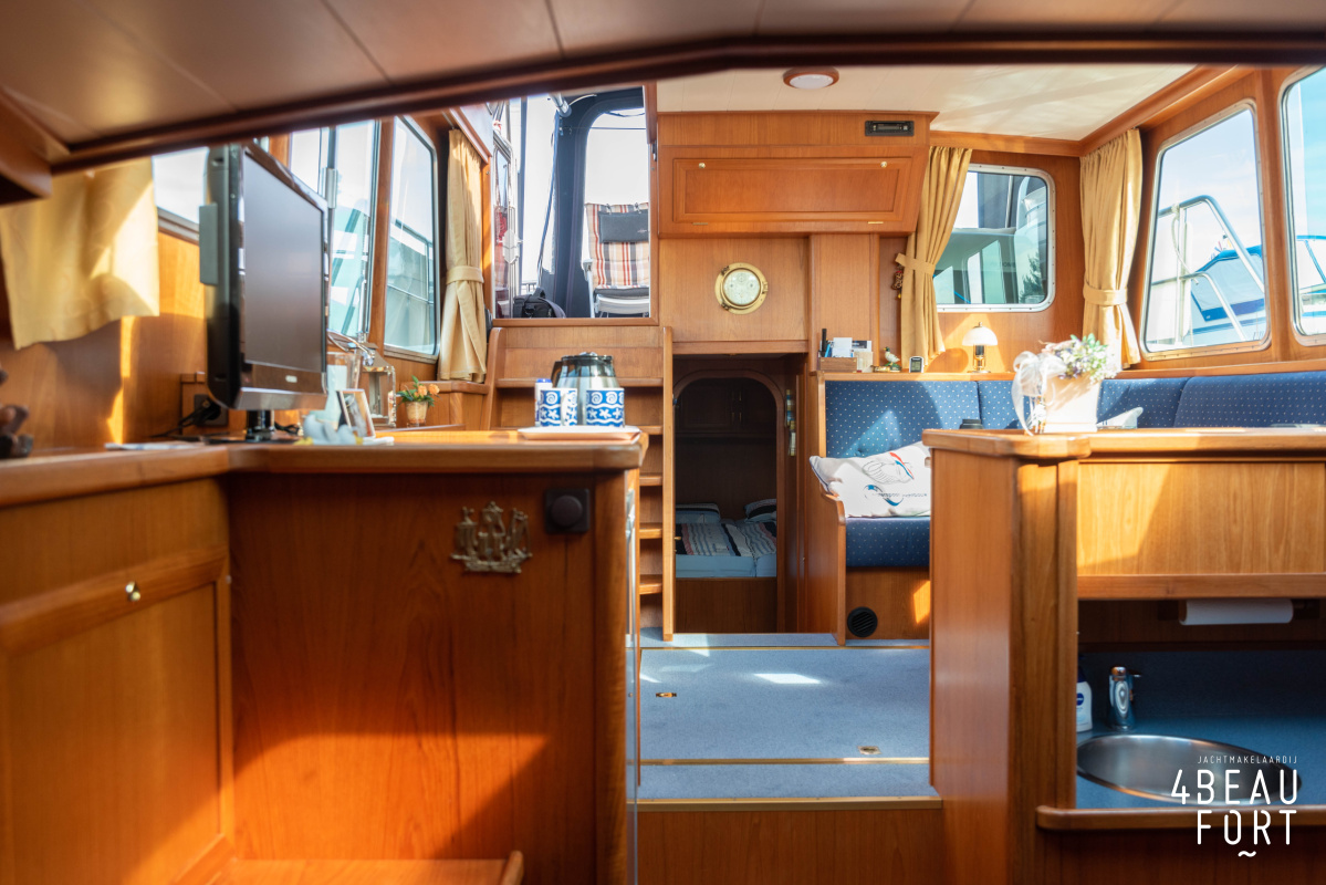 Very neat Veha cruiser Euroclassic 35, owned by its second owner. The “Happiness” is stored in a hall every winter and is professionally maintained by RFU in Irnsum. The cruiser is finished in teak; the fore ship has a spacious round seating area, which also serves as an extra sleeping area, and a spacious galley. The saloon has a comfortable sofa and plenty of cupboard space. In the aft section, there is a spacious toilet, a separate shower room, and an owner's cabin with a spacious freestanding bed.