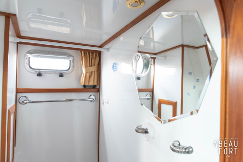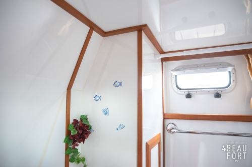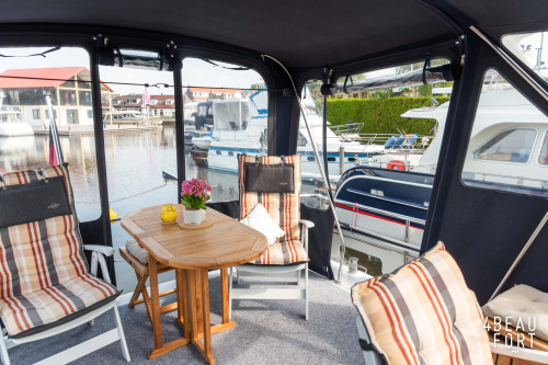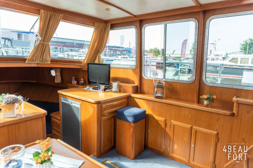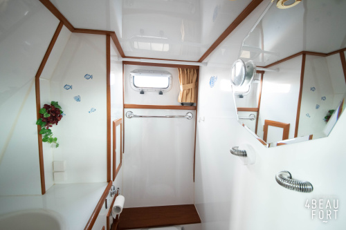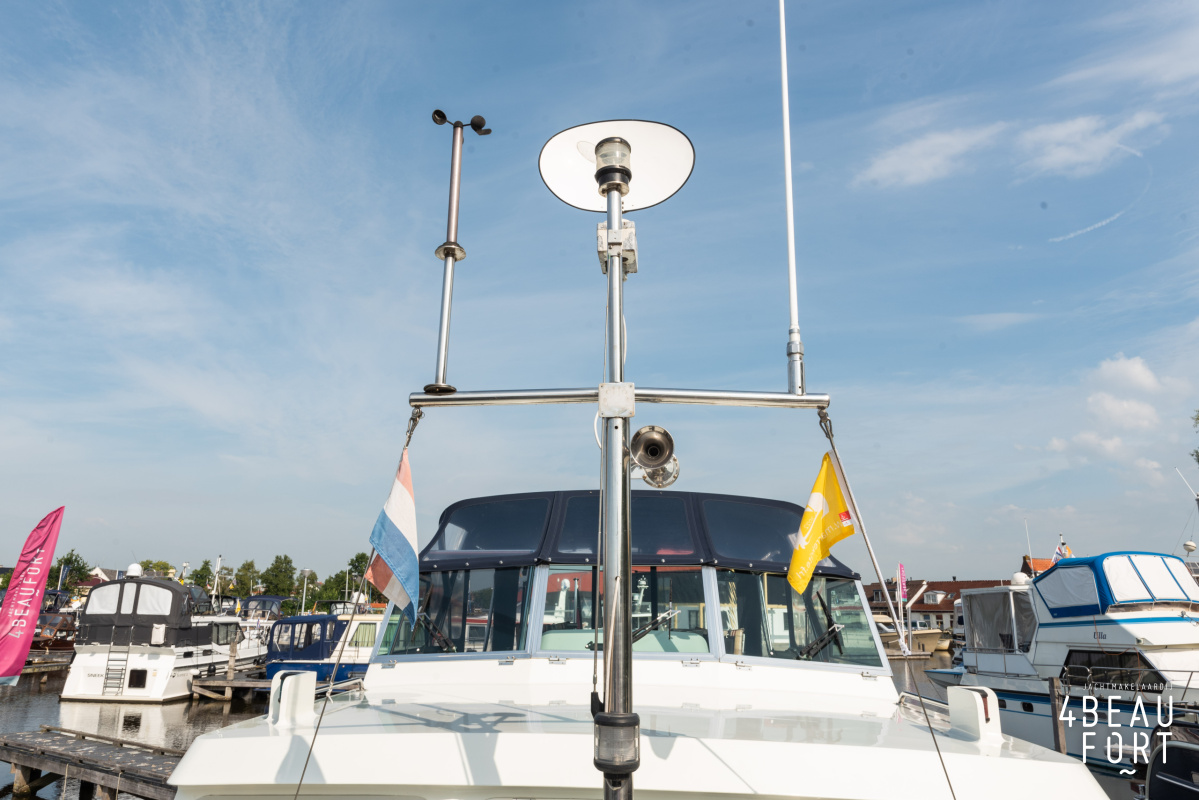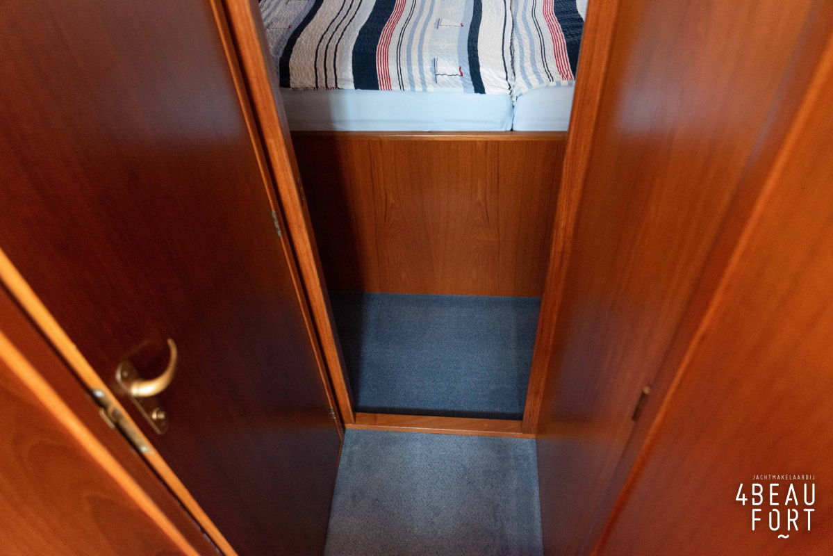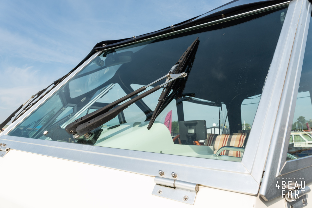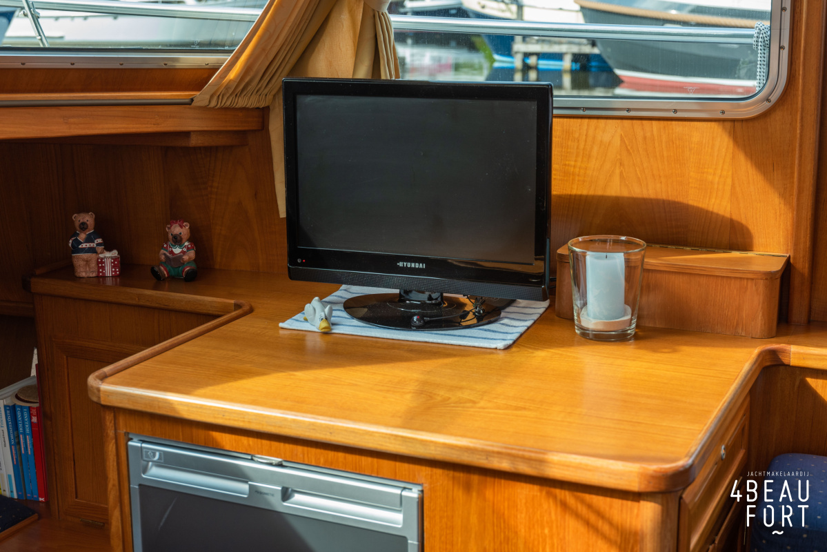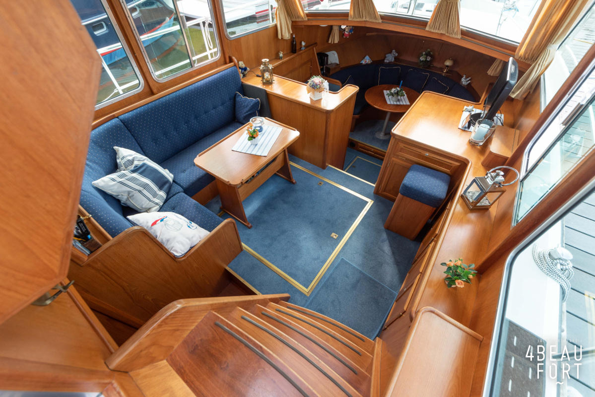 Very neat Veha cruiser Euroclassic 35, owned by its second owner. The “Happiness” is stored in a hall every winter and is professionally maintained by RFU in Irnsum. The cruiser is finished in teak; the fore ship has a spacious round seating area, which also serves as an extra sleeping area, and a spacious galley. The saloon has a comfortable sofa and plenty of cupboard space. In the aft section, there is a spacious toilet, a separate shower room, and an owner's cabin with a spacious freestanding bed.