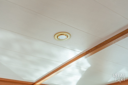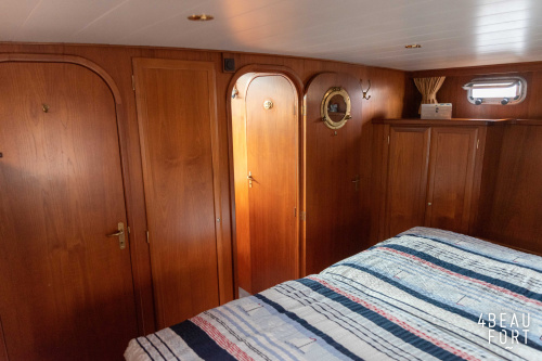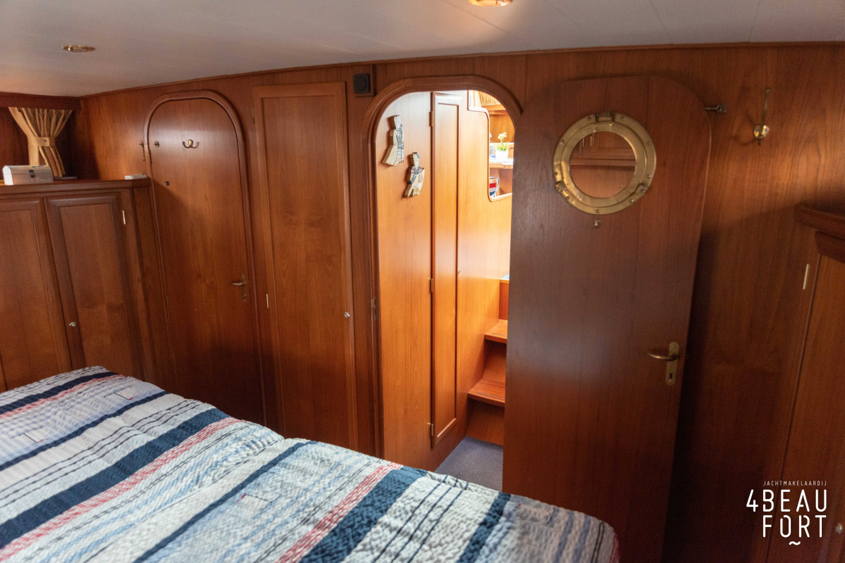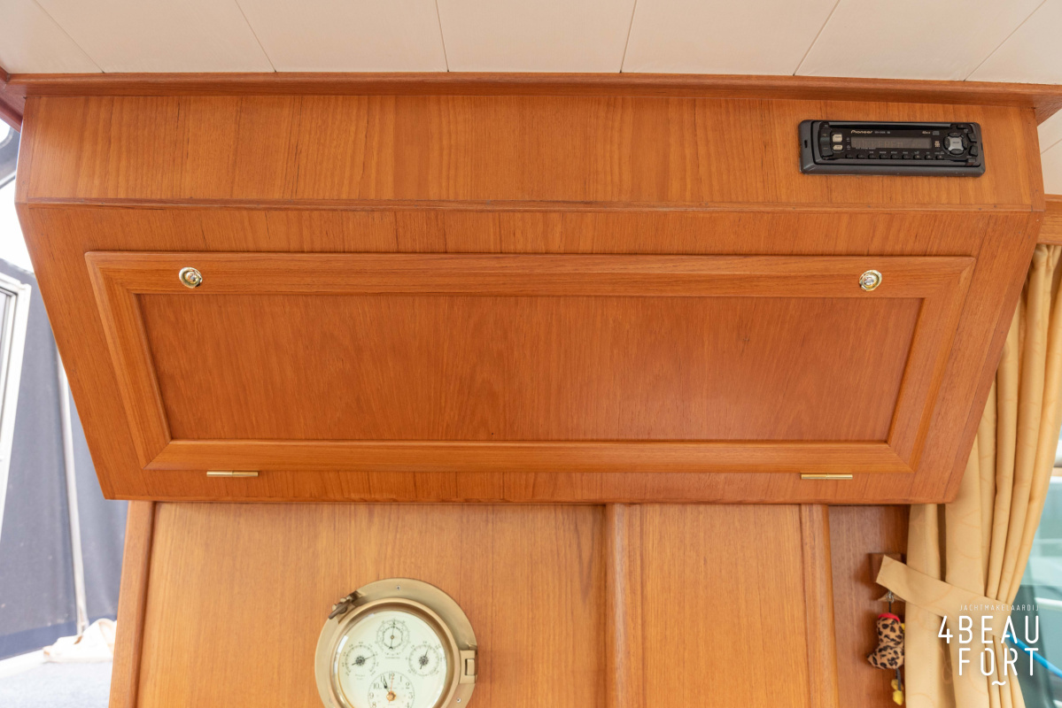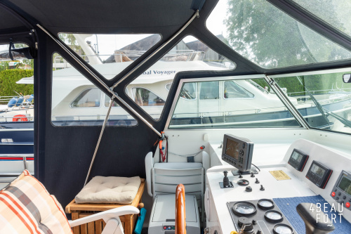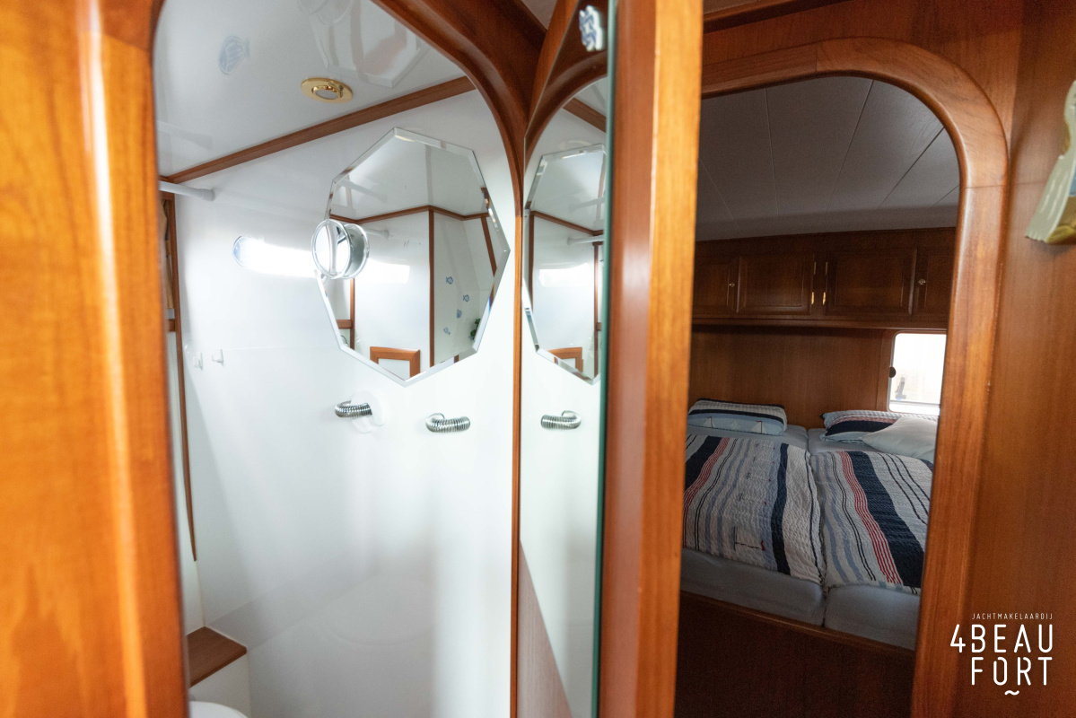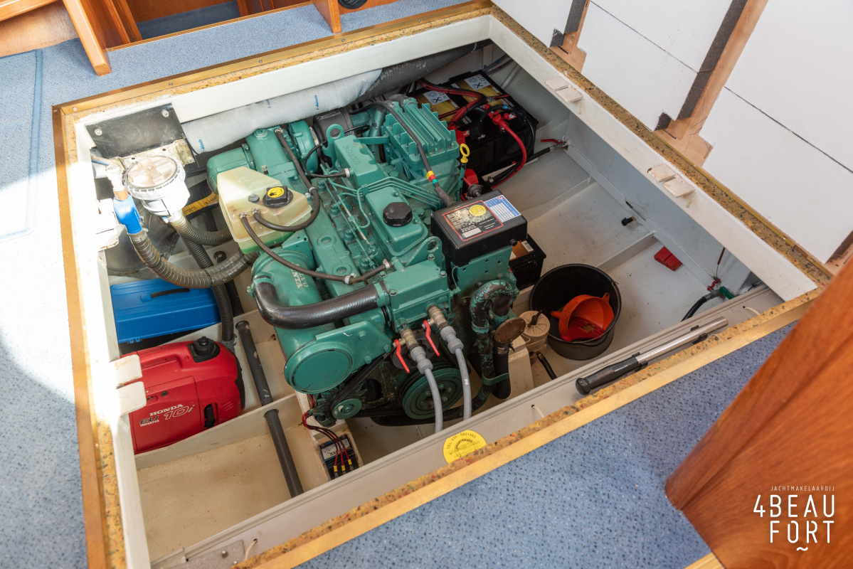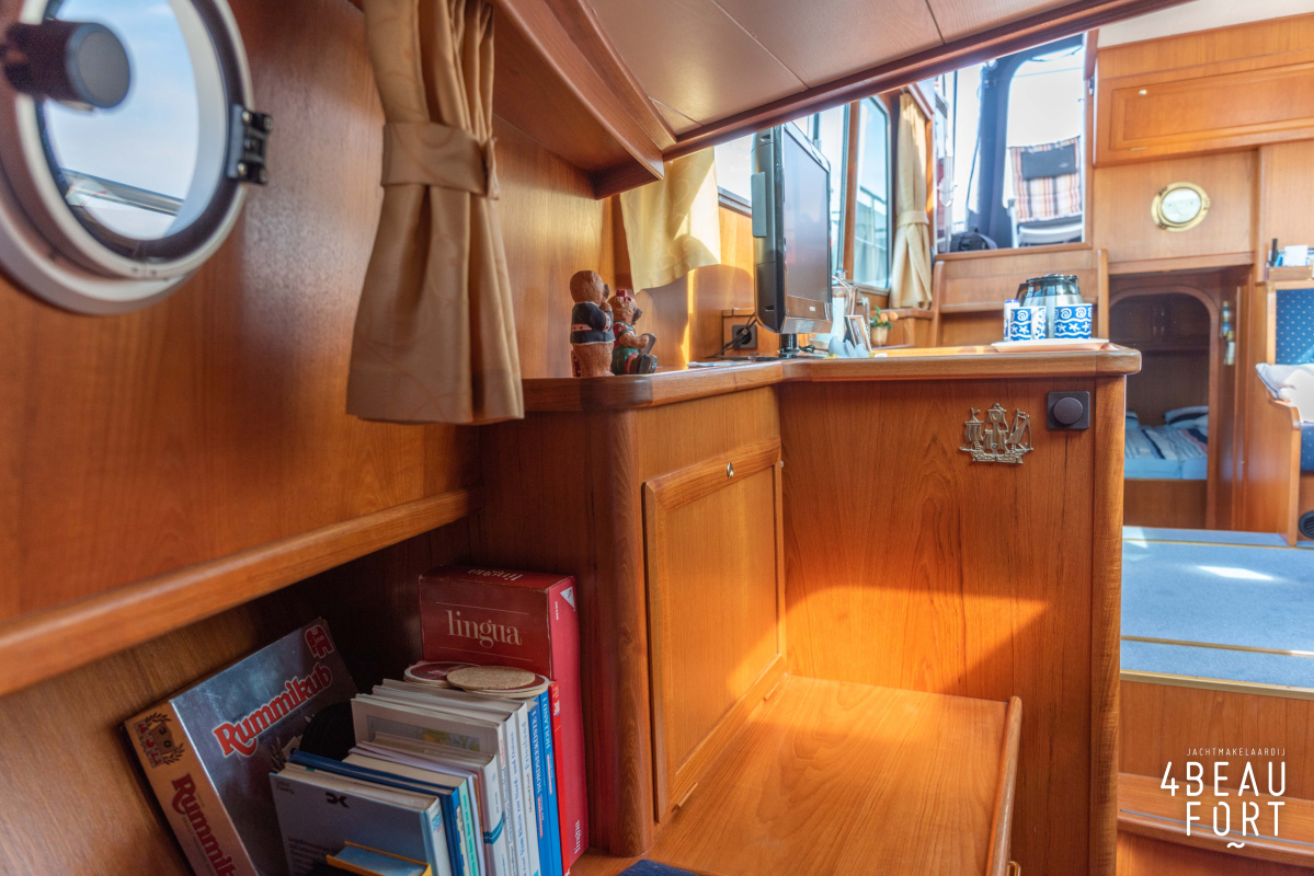 Very neat Veha cruiser Euroclassic 35, owned by its second owner. The “Happiness” is stored in a hall every winter and is professionally maintained by RFU in Irnsum. The cruiser is finished in teak; the fore ship has a spacious round seating area, which also serves as an extra sleeping area, and a spacious galley. The saloon has a comfortable sofa and plenty of cupboard space. In the aft section, there is a spacious toilet, a separate shower room, and an owner's cabin with a spacious freestanding bed.