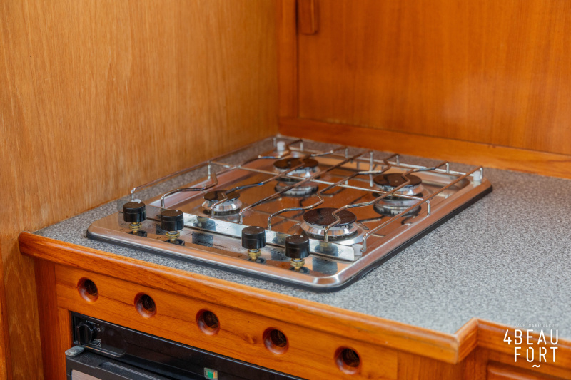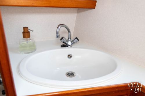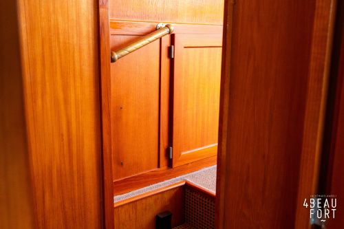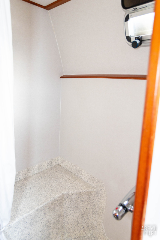 Aan boord van Leomare II vindt u in het voorschip een open indeling met V-bed, dinette en kombuis. De sfeervolle salon heeft een binnenstuurstand en een comfortabele L-vormige bank. Dankzij de zij- en achteringang stapt u gemakkelijk aan en van boord, wat ook praktisch is bij het aan boord brengen van boodschappen. In het achterschip bevindt zich een ruime achterkajuit met tweepersoonsbed, een aparte toiletruimte met pomptoilet en een separate badkamer met wastafelmeubel en douchecabine. In het gehele schip is veel bergruimte aanwezig.