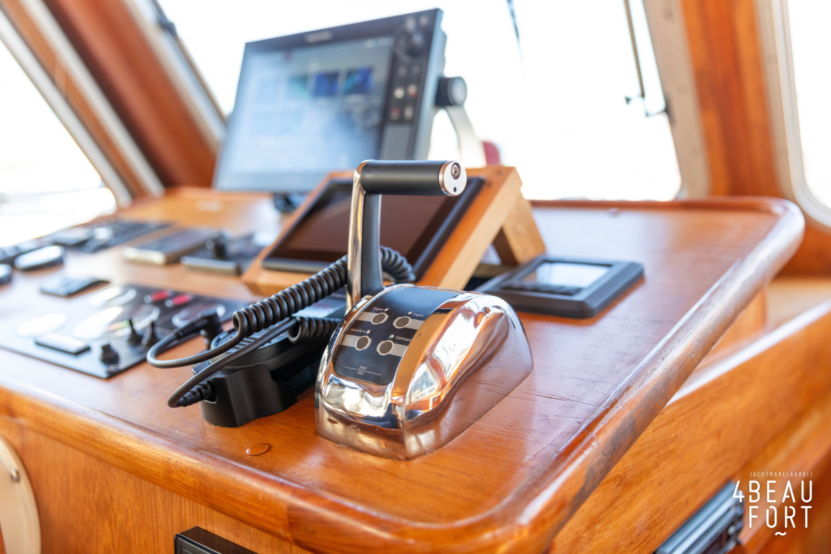 In de ruime stuurhut heeft u goed zicht rondom en goed zicht op de navigatie apparatuur. Via de zijdeur staat u in één stap in het gangboord om eventueel een lijntje om een bolder te doen. Uw gezelschap "vaart" gezellig in de stuurhut met u mee op de ruime zitgroep met goed uitzicht naar buiten.