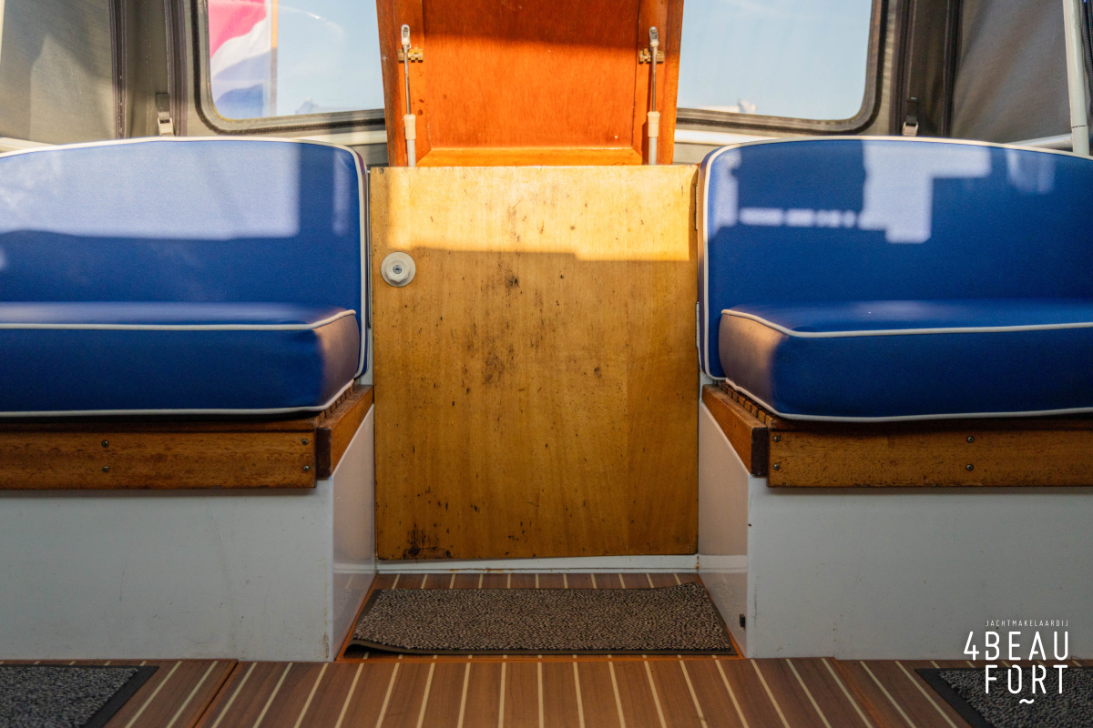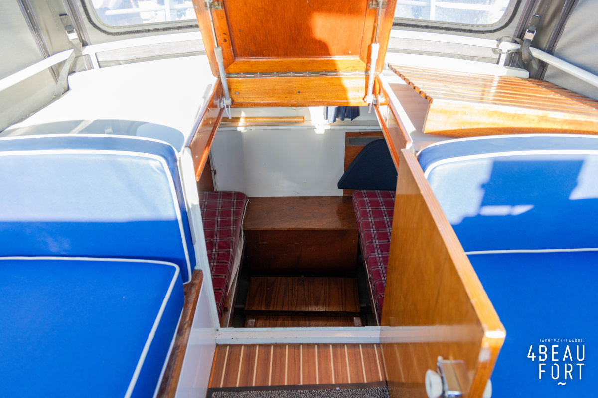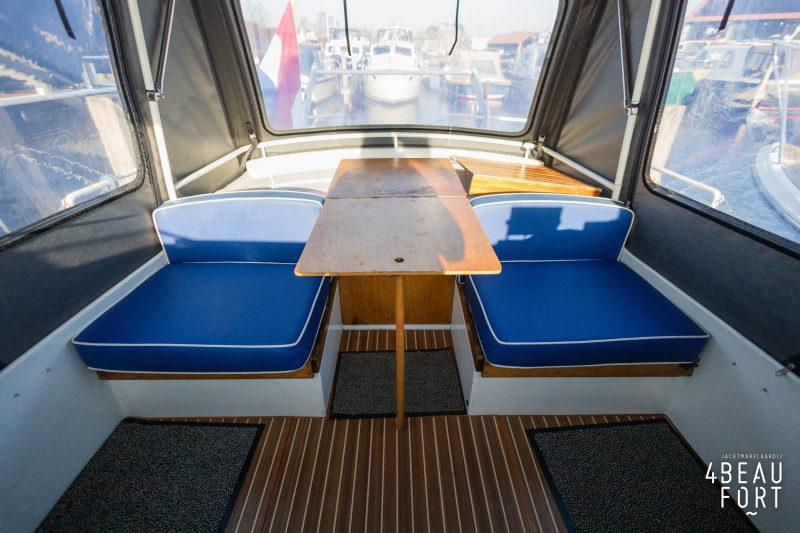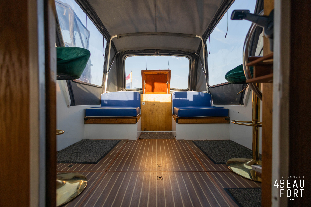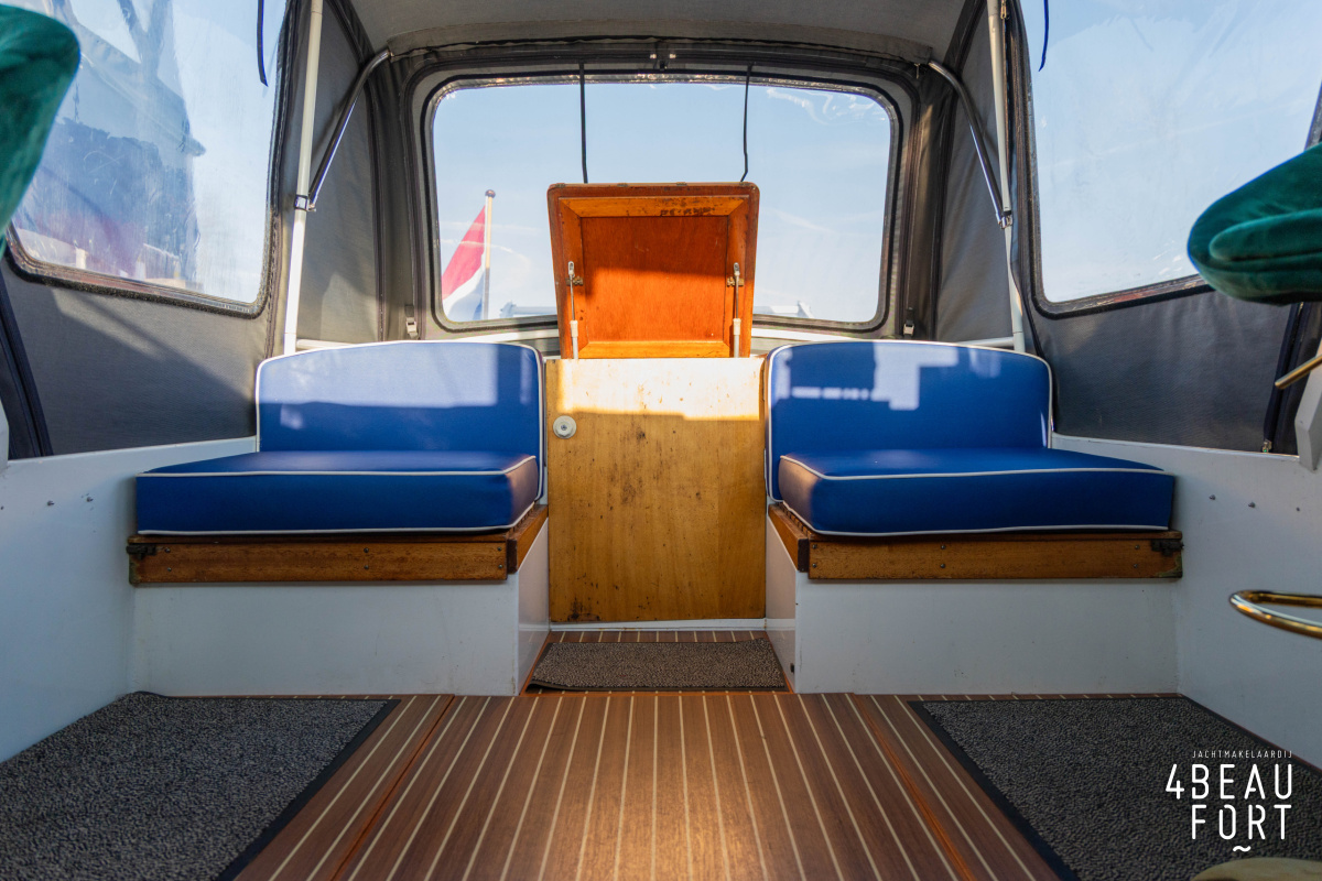 De open kuip is royaal en voorzien van een afneembare cabriokap; met de ramen weggeklapt heeft de Doerak een doorvaarthoogte van slechts 1,85 m, ideaal voor lage bruggen. Aan bakboord vindt u de stuurinrichting en aan stuurboord een losse meevaardersstoel; tegen de achterzijde van de kuip zijn twee banken geplaatst, met daarachter de toegangsdeur naar de achterkajuit. In die achterkajuit liggen twee brede eenpersoonsbedden en ook hier is veel bergruimte aanwezig. Door het gehele schip ligt een mooie vloer met scheepsparket looks.