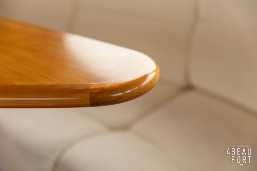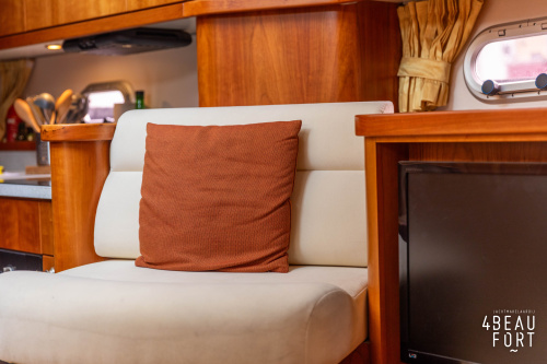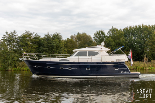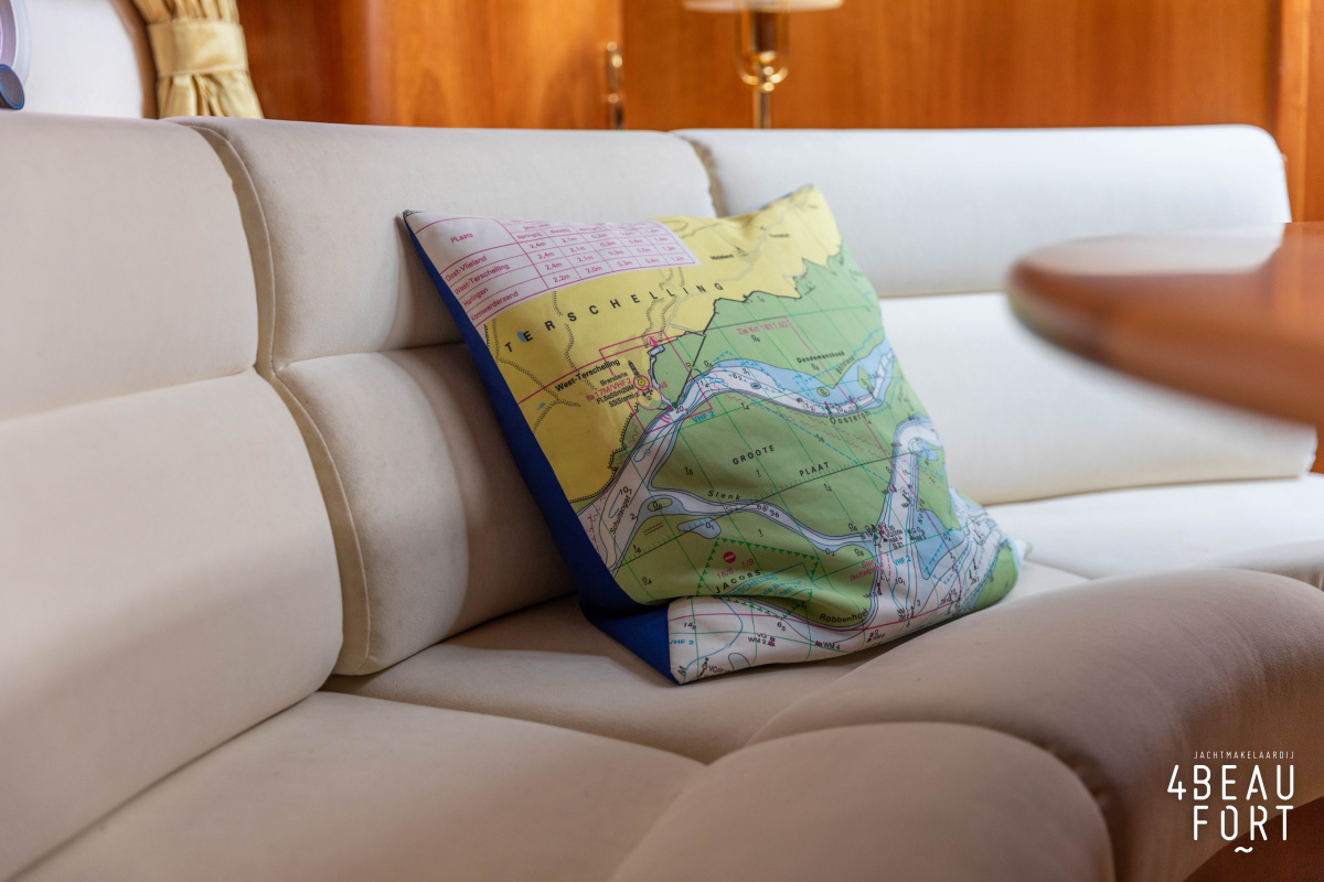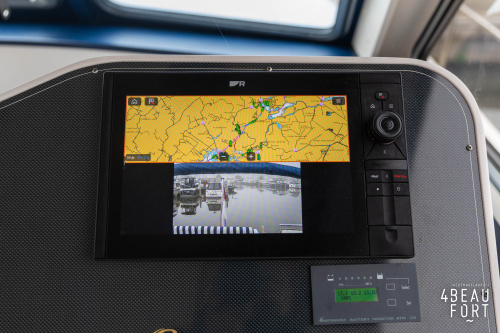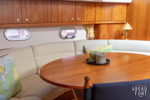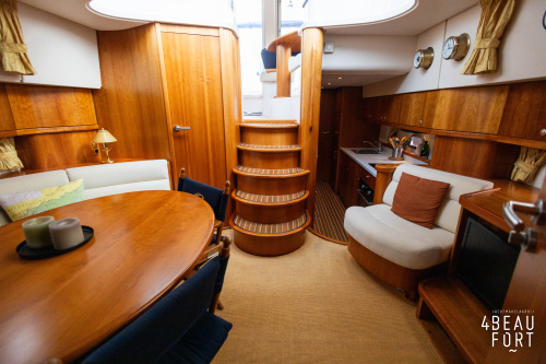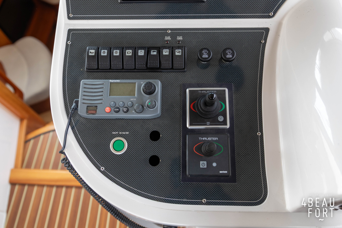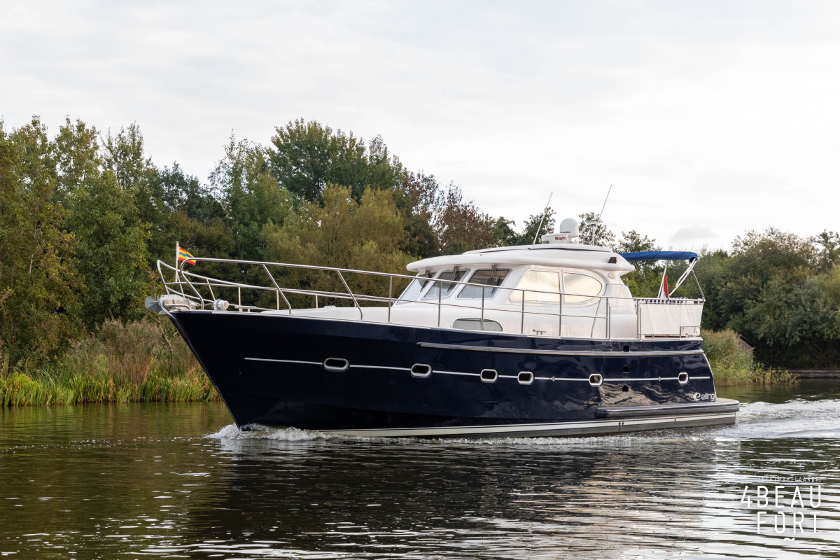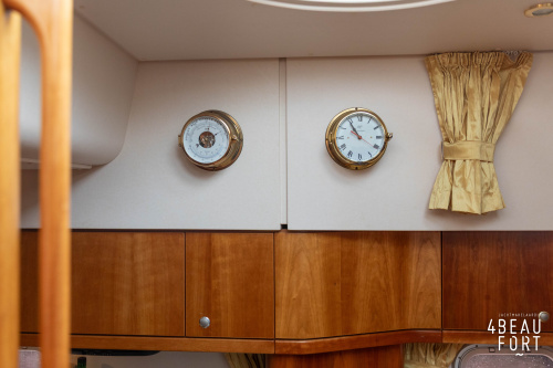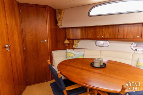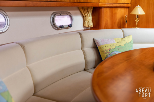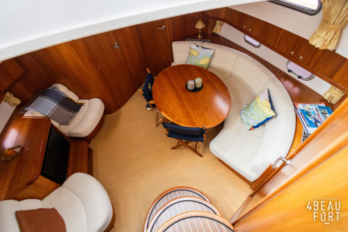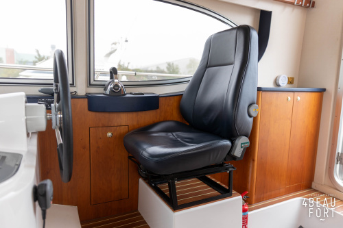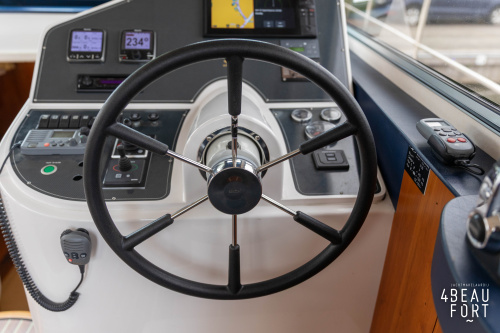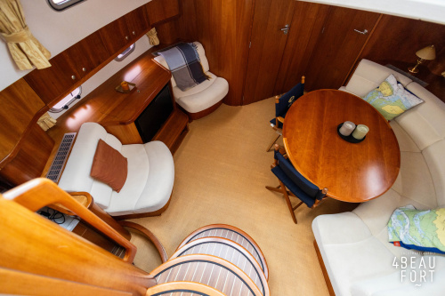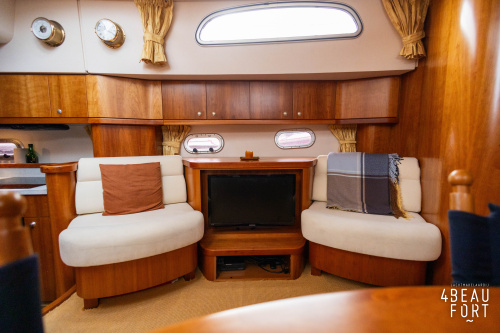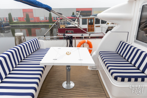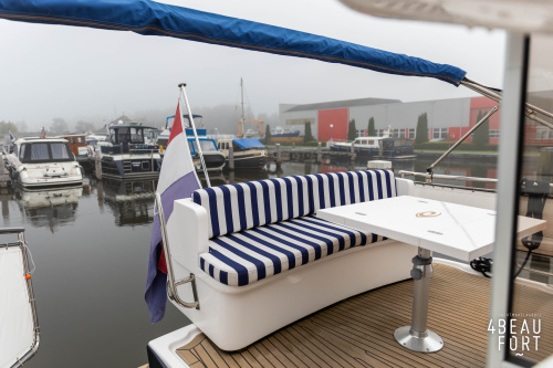 Het interieur is modern met een duidelijk scheepskarakter. De stuurhut is praktisch ingedeeld; de overzichtelijke stuurstand is voorzien van uitgebreide navigatieapparatuur en een comfortabele L‑vormige zitbank. Grote raampartijen zorgen voor een panoramisch uitzicht en veel daglicht, terwijl het elektrisch te openen schuifdak en het frontraam voor aangename ventilatie zorgen.