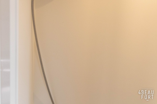 Enkele treden lager ligt de salon, waar gezelligheid en comfort samenkomen. De halfronde zitbank nodigt uit tot lange avonden aan tafel, twee tegenover elkaar geplaatste fauteuils vormen een intieme zithoek en een stijlvol meubel verbergt een tv op lift die met één druk op de knop verschijnt.