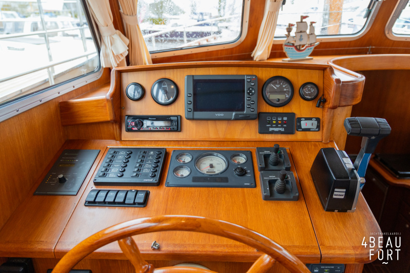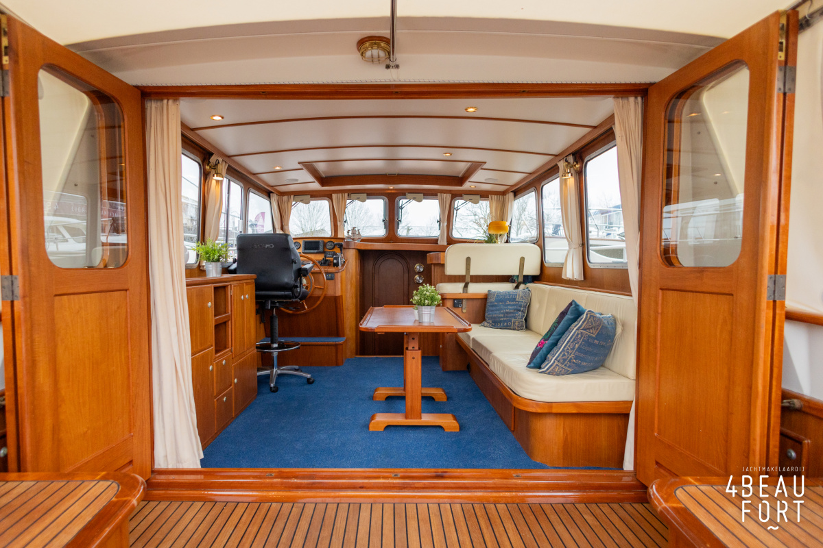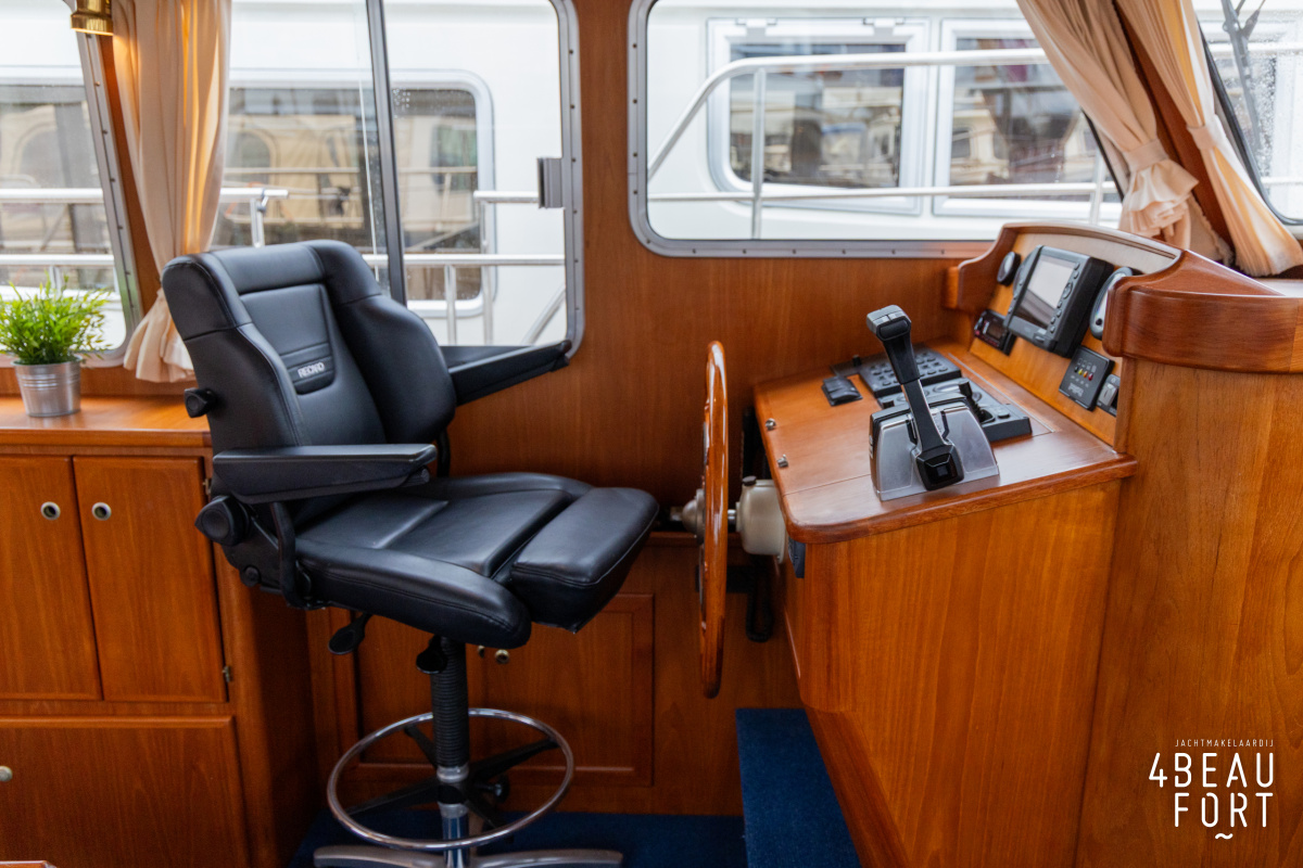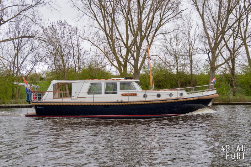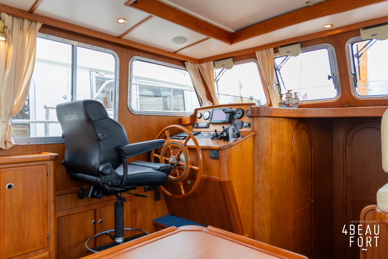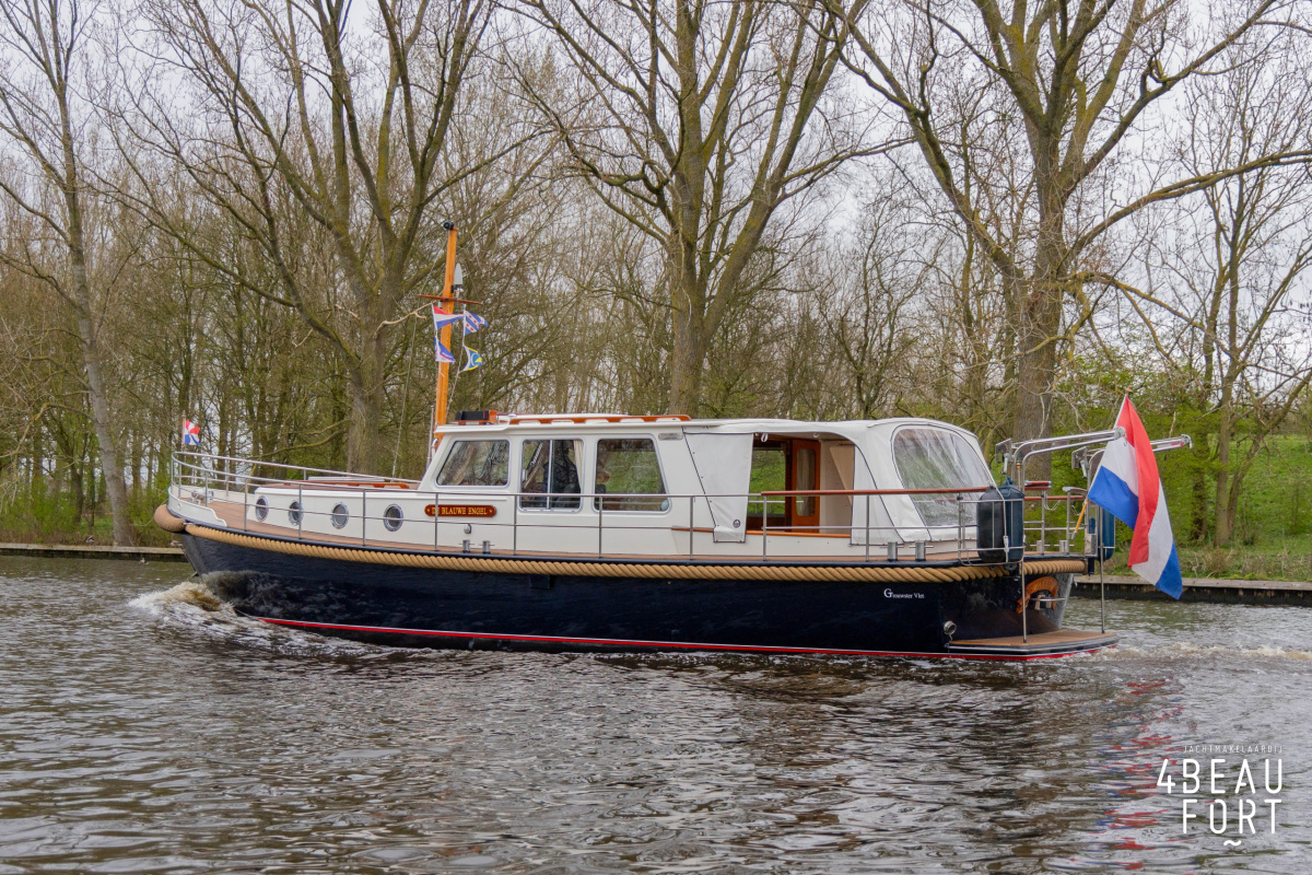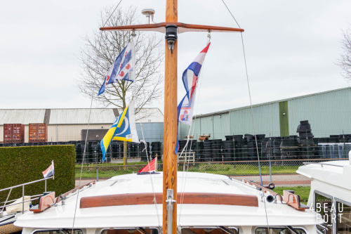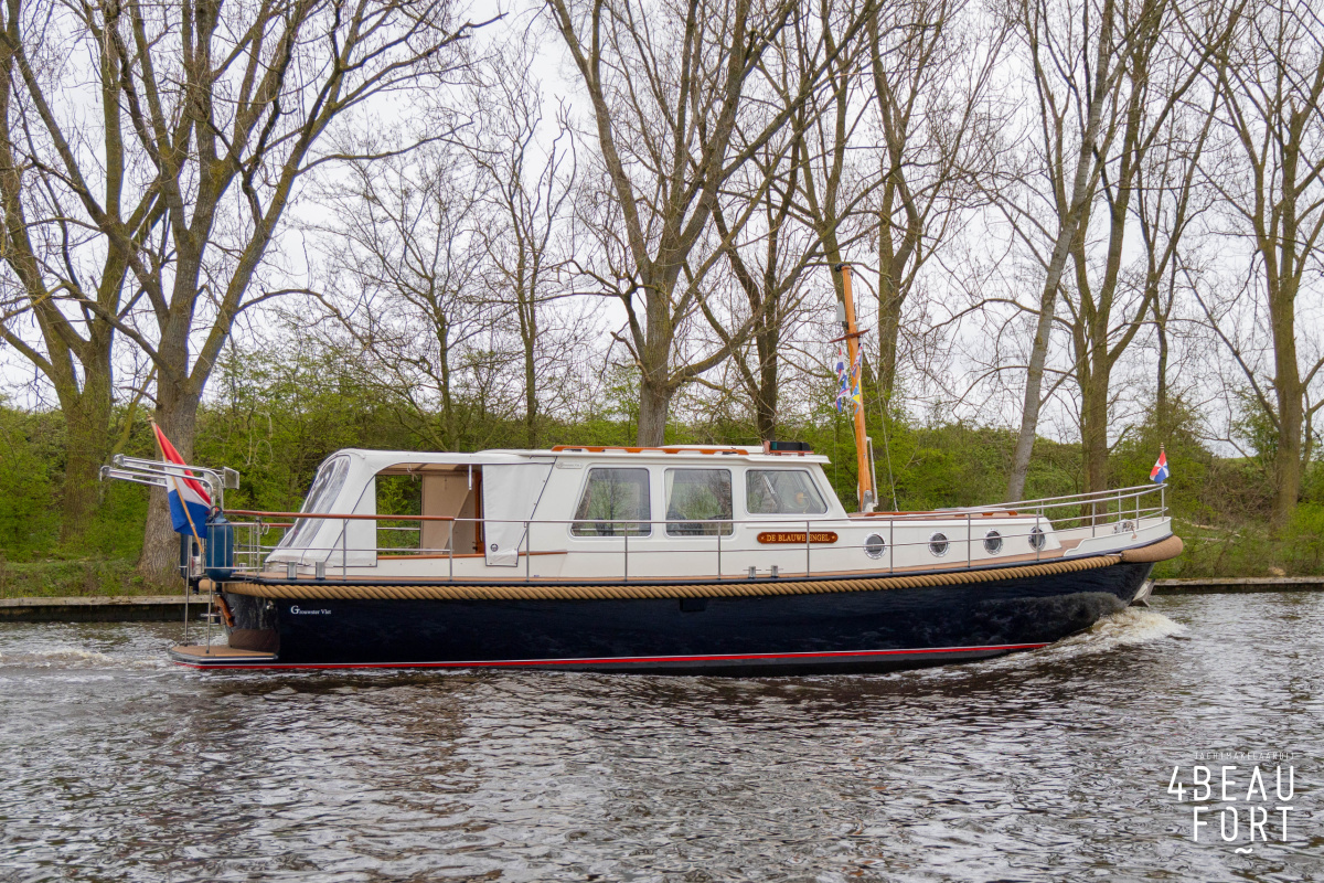 De Grouwstervlet 1200 OK straalt luxe uit en is uitgerust met een krachtige 128 pk Vetus Deutz-motor, boeg- en hekschroef voor moeiteloos manoeuvreren en een elektrisch stijkbare mast die het varen nog comfortabeler maakt en is zeer stabiel.