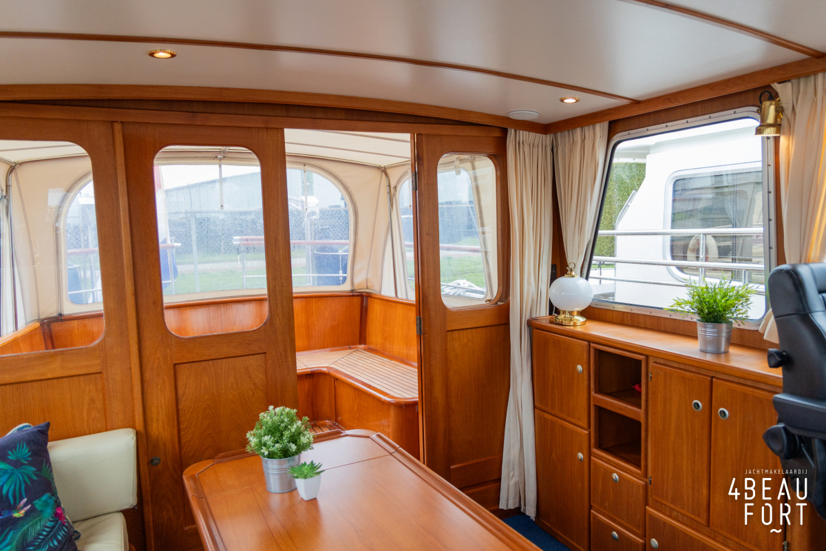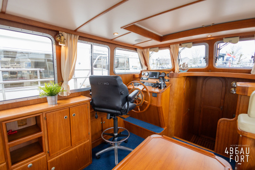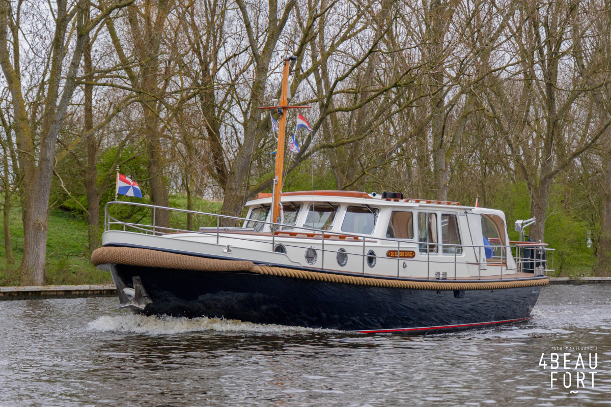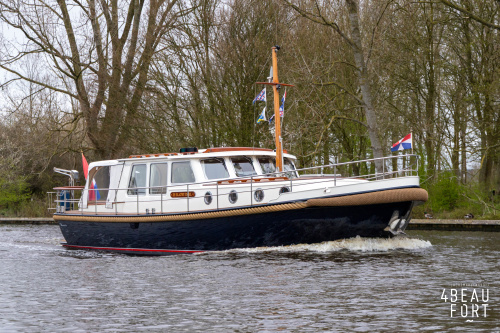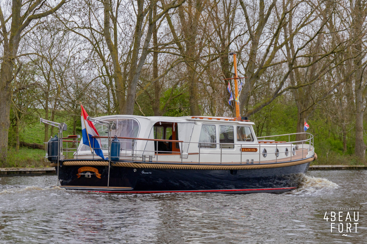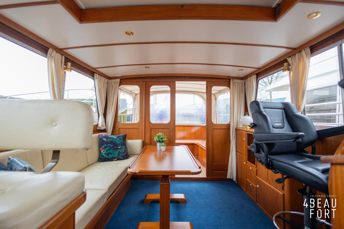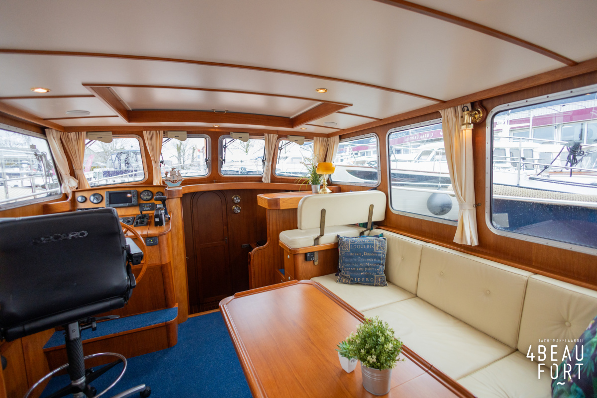 De Grouwstervlet 1200 OK straalt luxe uit en is uitgerust met een krachtige 128 pk Vetus Deutz-motor, boeg- en hekschroef voor moeiteloos manoeuvreren en een elektrisch stijkbare mast die het varen nog comfortabeler maakt en is zeer stabiel.