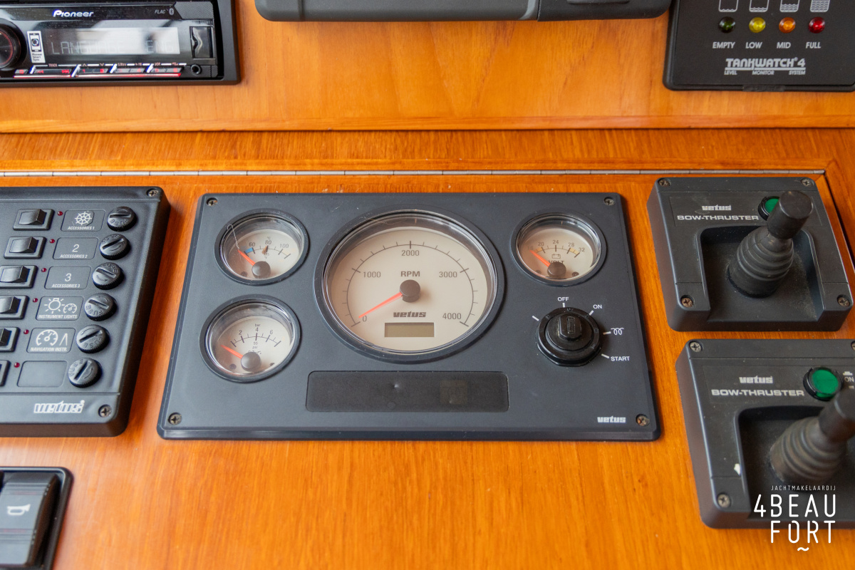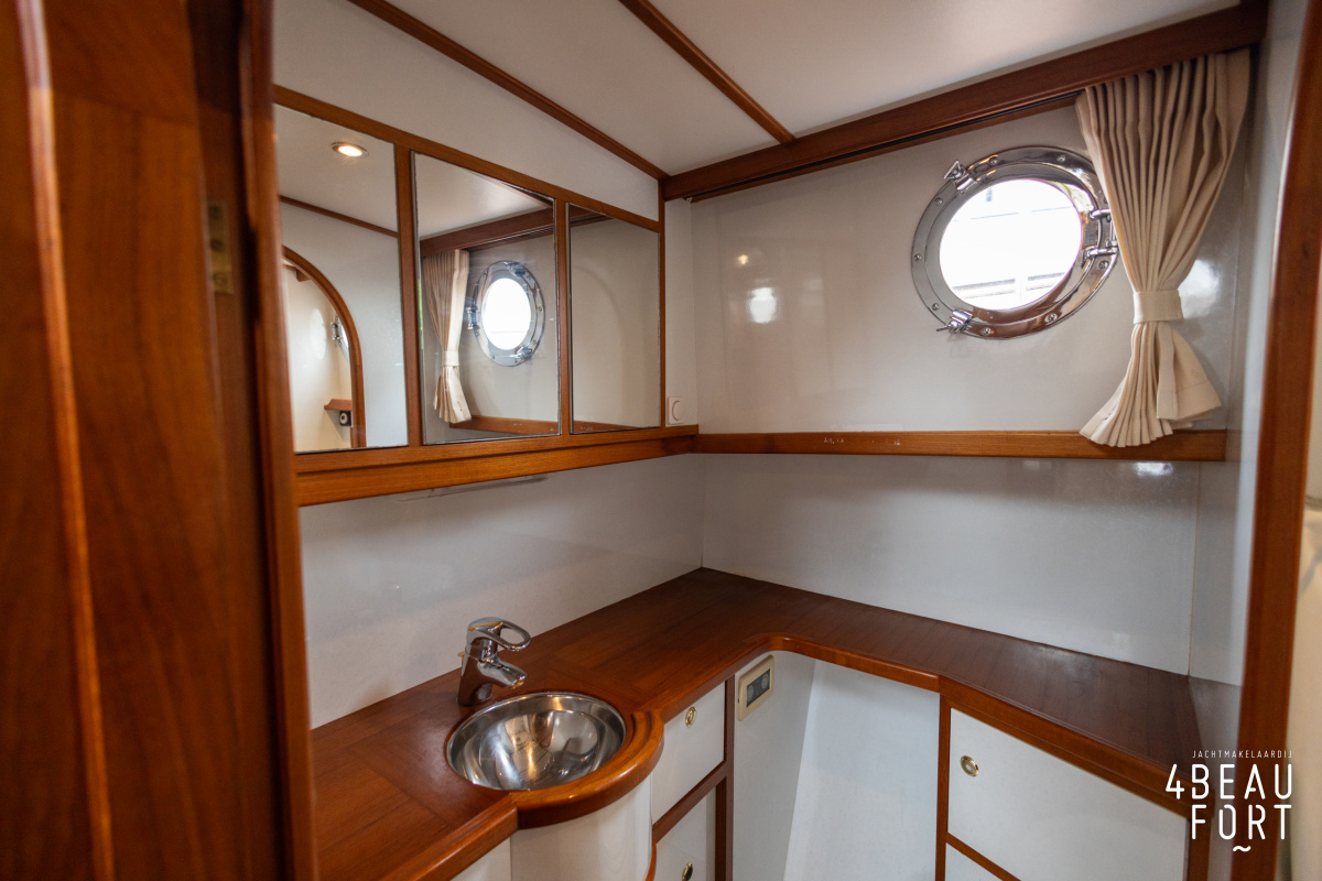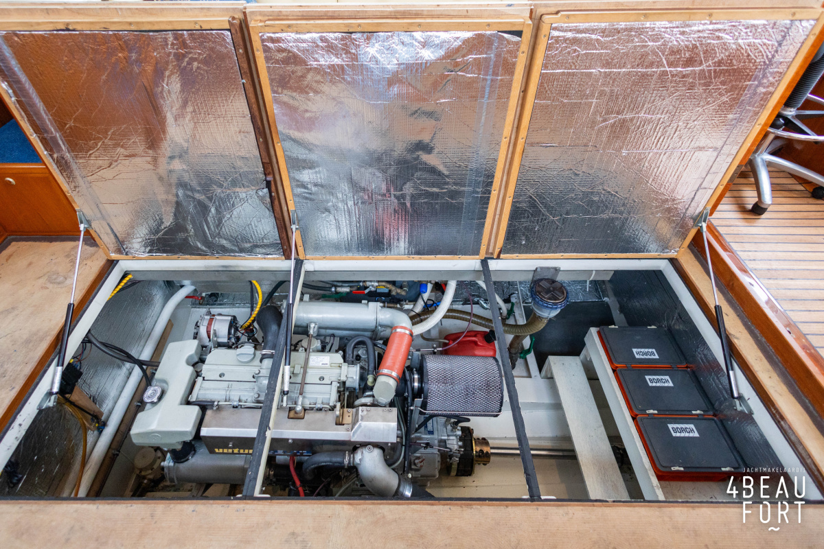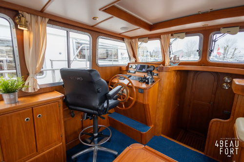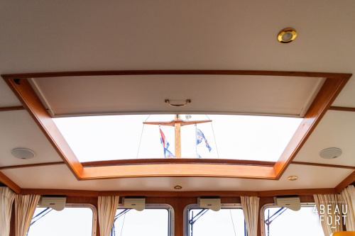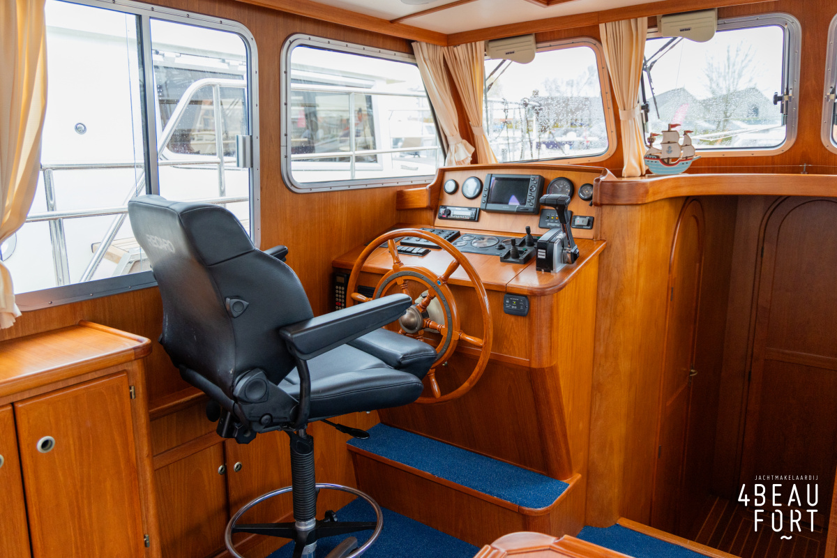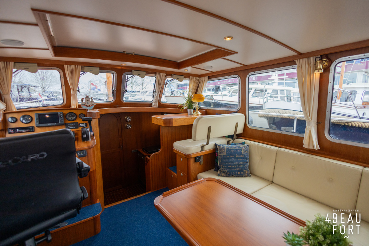 De Grouwstervlet 1200 OK straalt luxe uit en is uitgerust met een krachtige 128 pk Vetus Deutz-motor, boeg- en hekschroef voor moeiteloos manoeuvreren en een elektrisch stijkbare mast die het varen nog comfortabeler maakt en is zeer stabiel.
