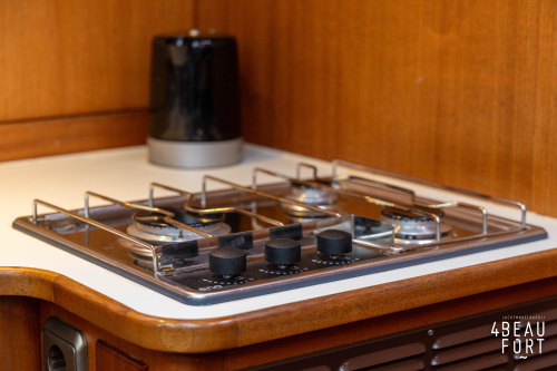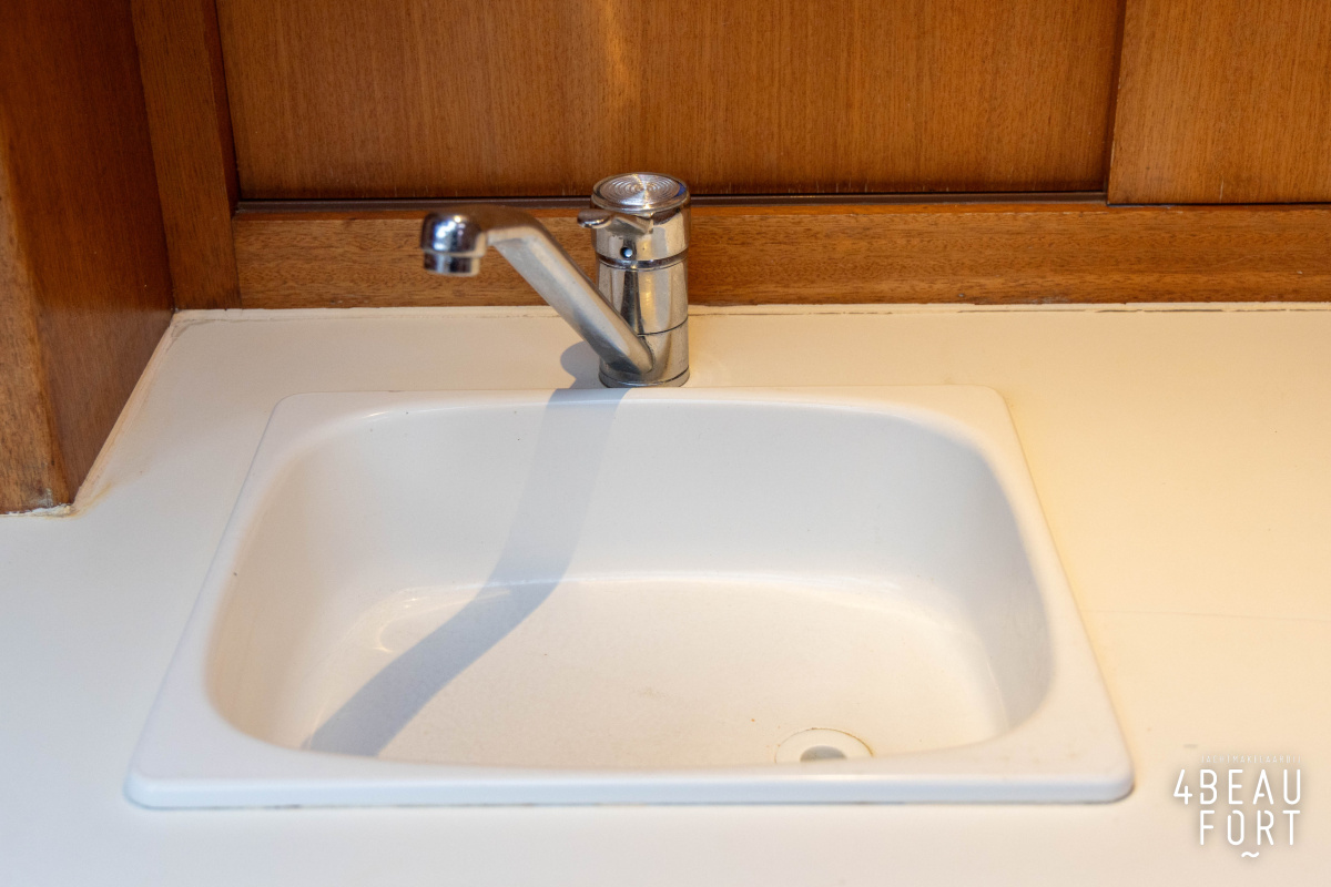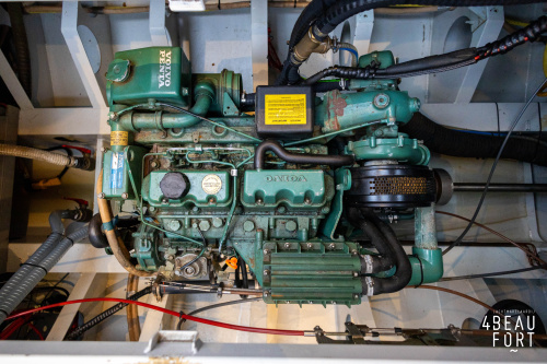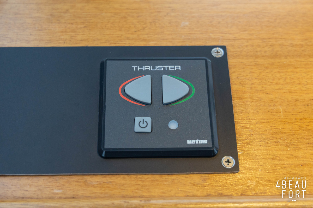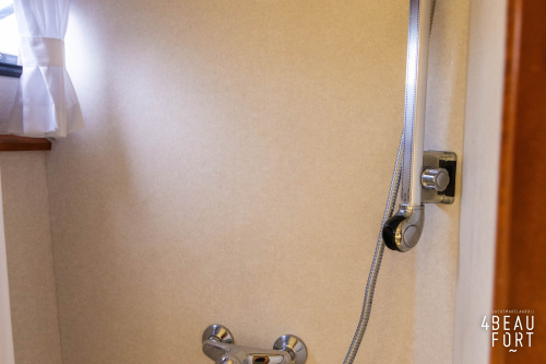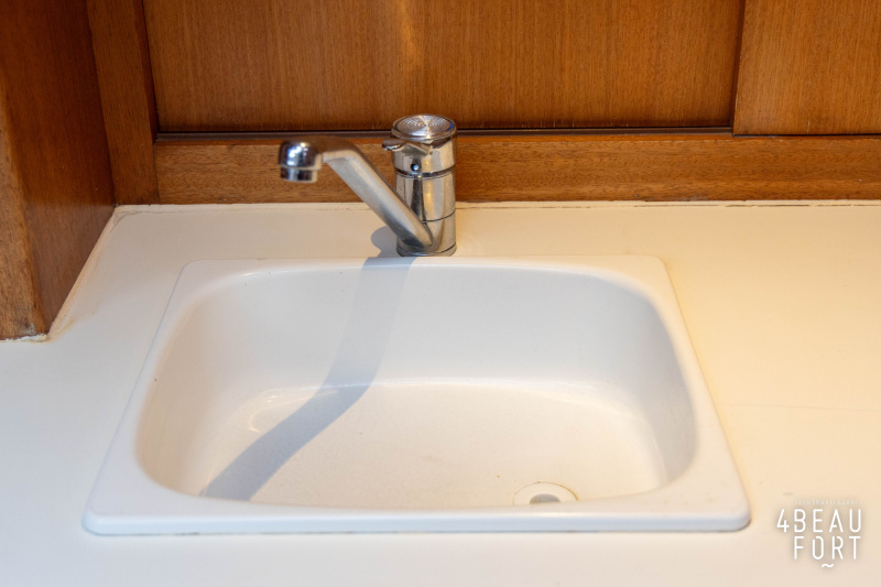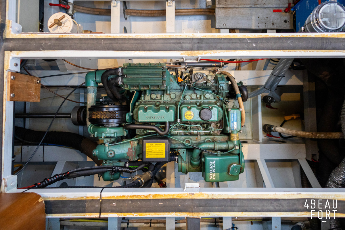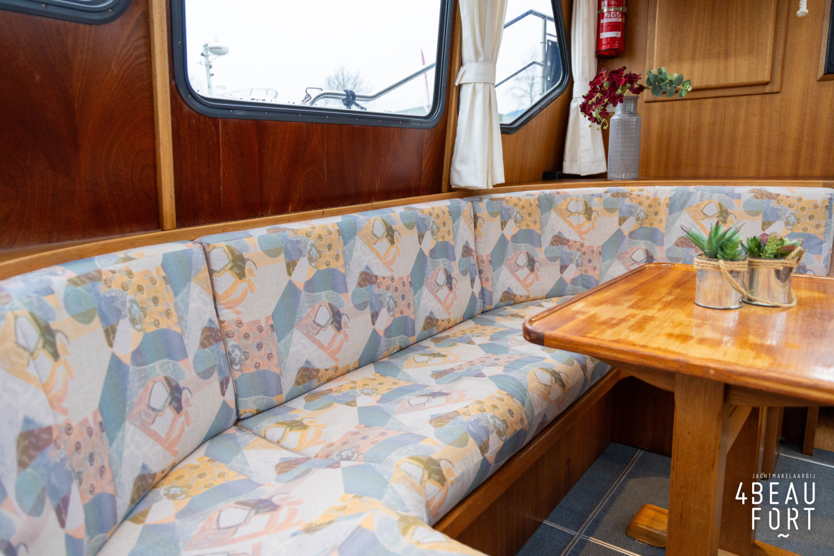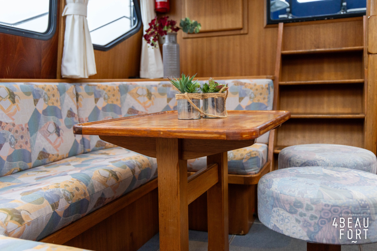 In het voorschip bevindt zich een ruime cabine met een ruim, comfortabel stapelbed en een aparte toiletruimte met wastafel en elektrisch toilet. De kombuis is voorzien van een werkblad met spoelbak, een 3‑pits gaskooktoestel, koelkast en veel kastruimte, tegenover de kombuis is de dinette die tevens als extra slaapplaats kan dienen. De salon heeft een U‑bank met bergruimte, een kastenwand en de binnenstuurstand. In het achterschip ligt de eigenaarscabine met een semivrijstaand bed en een badkamer met wastafelmeubel, elektrisch toilet en douchecabine. De buitenstuurstand is uitgerust met recente navigatieapparatuur en is volledig overdekt door een zeer recente tent die aan alle zijden geopend kan worden. Voor eenvoudig manoeuvreren is het jacht uitgerust met een krachtige Volvo Penta van 150 pk en een boegschroef.