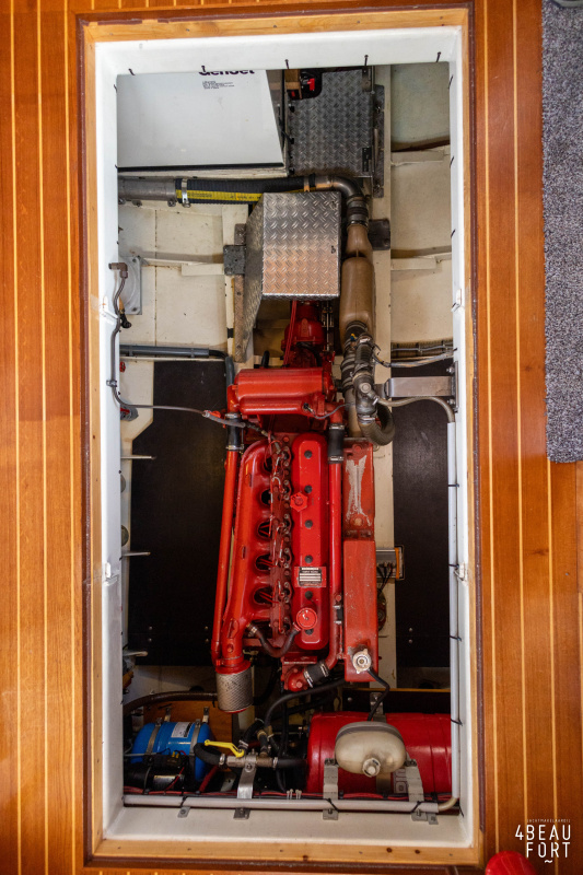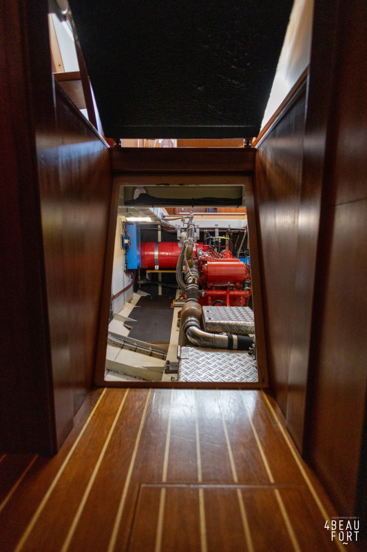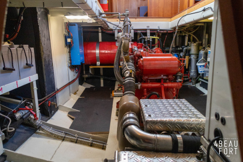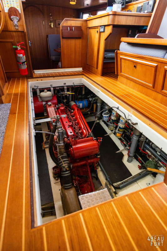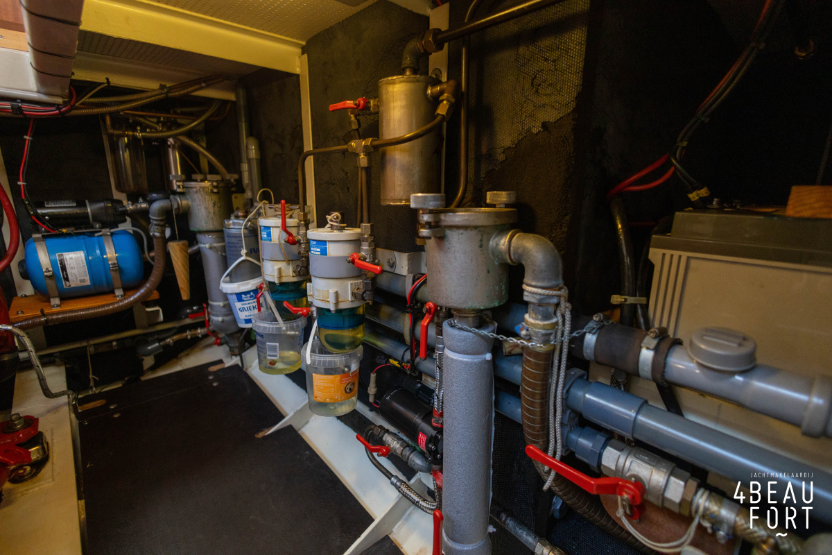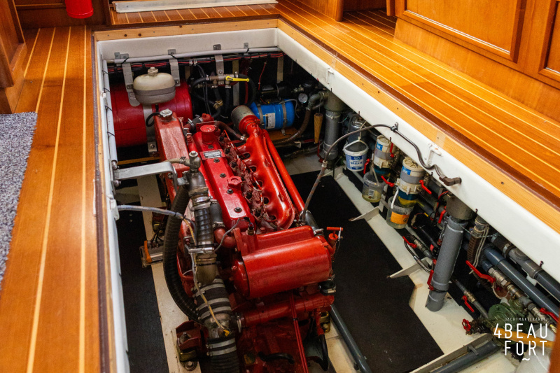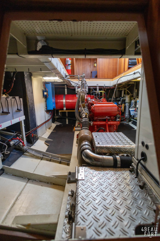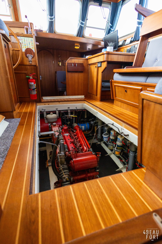 De directe toegang tot de motorruimte is via een luik onder de salontrap of via vloerluiken in de salonvloer. De technische installaties zijn ruim en overzichtelijk geplaatst, met onder andere een 120 pk sterke Iveco-motor, een generator en afzonderlijke diesel- en watertanks van elk circa 1000 liter.