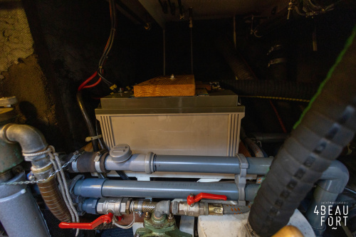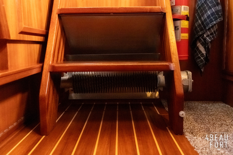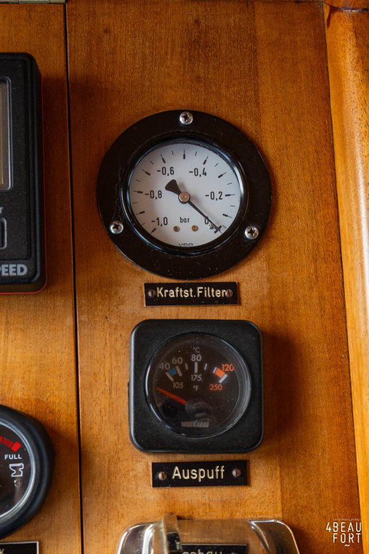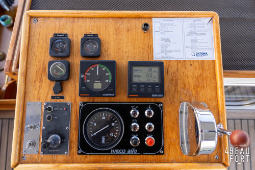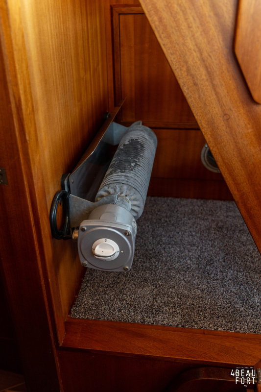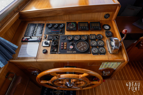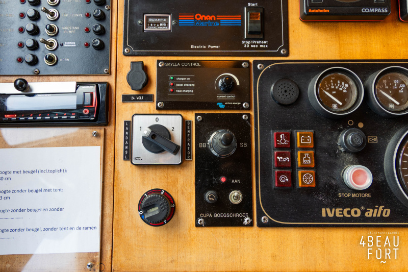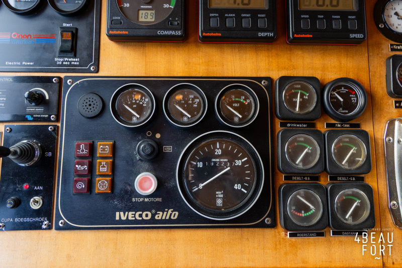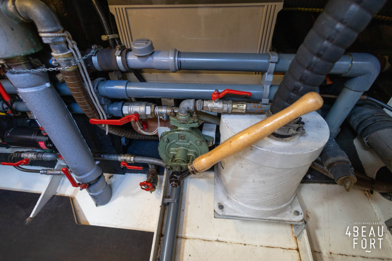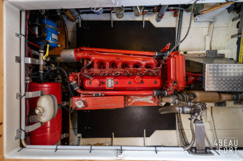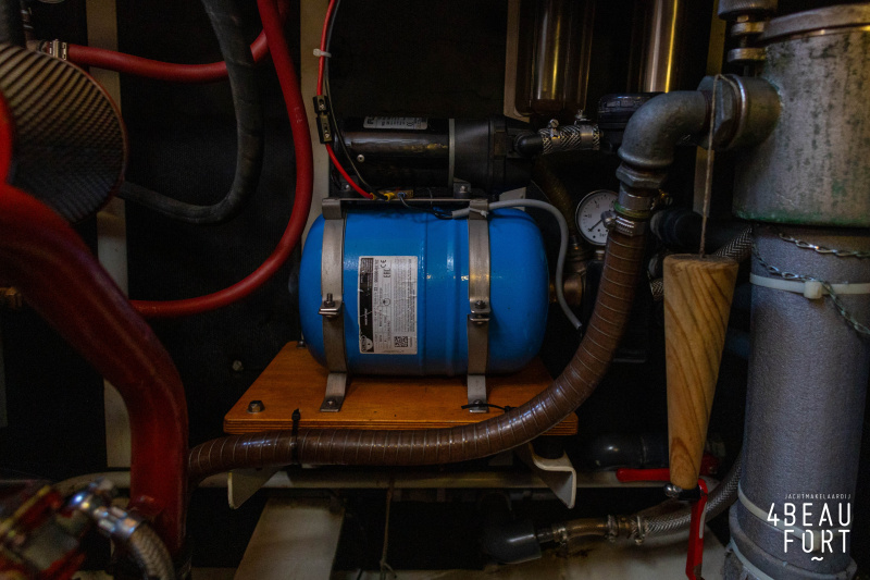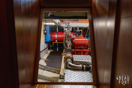 De directe toegang tot de motorruimte is via een luik onder de salontrap of via vloerluiken in de salonvloer. De technische installaties zijn ruim en overzichtelijk geplaatst, met onder andere een 120 pk sterke Iveco-motor, een generator en afzonderlijke diesel- en watertanks van elk circa 1000 liter.
