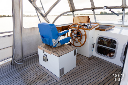 Kortom, de Super Lauwersmeer kotter 1250 “Freonskip” combineert tijdloze, elegante lijnen met een doordachte indeling en royale bergruimte. Ideaal voor lange tochten over zowel binnen- als buitenwater.