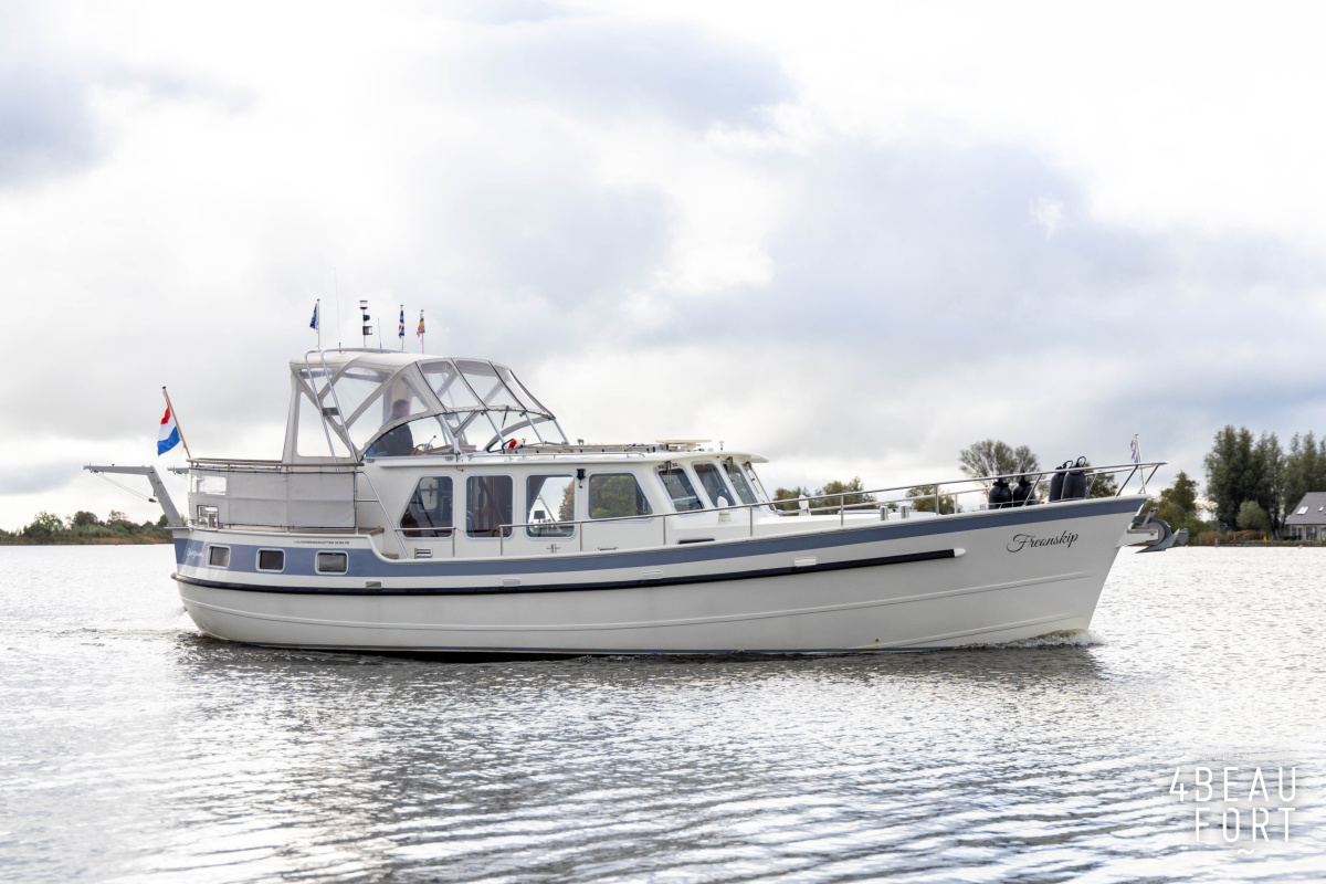 Deze Super Lauwersmeer kotter 1250 “Freonskip” straalt kwaliteit en degelijkheid uit. Het zwaargebouwde, gejoggelde rondspant met slingerkielen en een mooie waaiersteven voelt zich net zo thuis op open water als op binnenwateren. Of u nu binnendoor via Frankrijk naar de Middellandse Zee vaart of buitenom richting Scandinavië, het Sneekermeer of de Westeinderplassen, deze kotter draait haar hand er niet voor om. Met zijn 12,50 meter biedt zij niet alleen uitstekende vaareigenschappen, maar ook royaal comfort en bewegingsruimte.